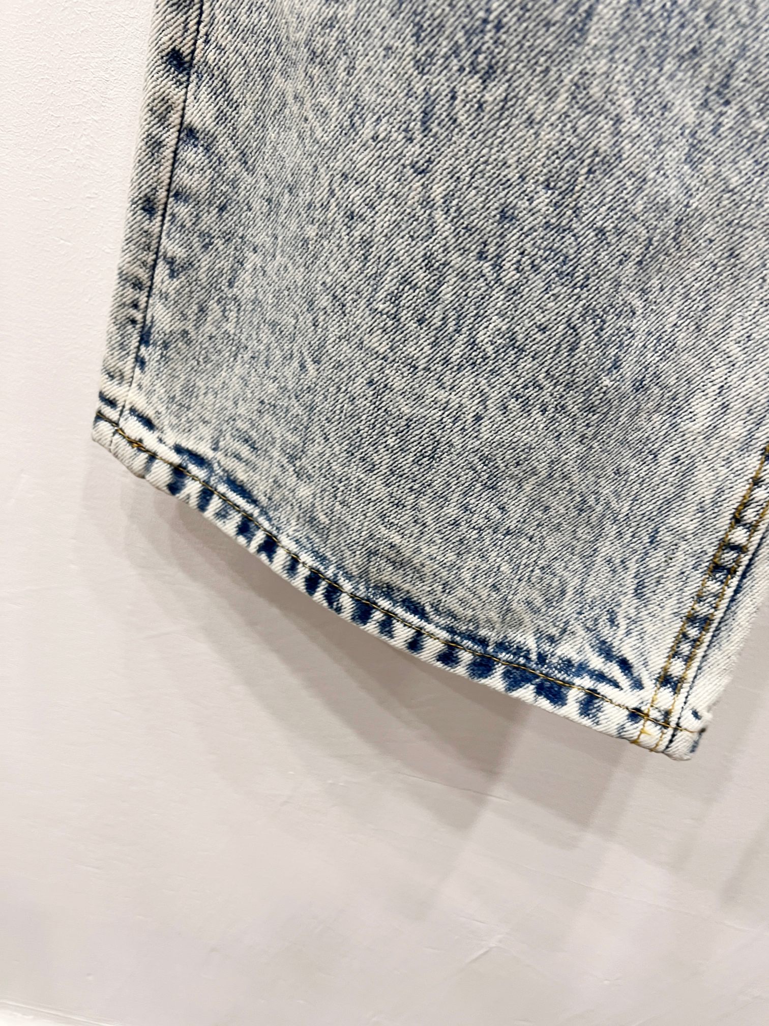 巴黎世家2025新款浅蓝洗水做旧竹节情侣款水洗宽松微喇牛仔裤
