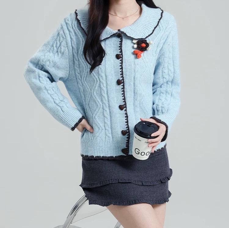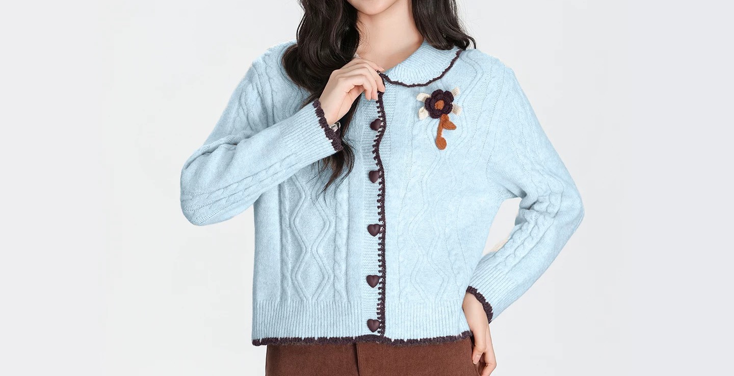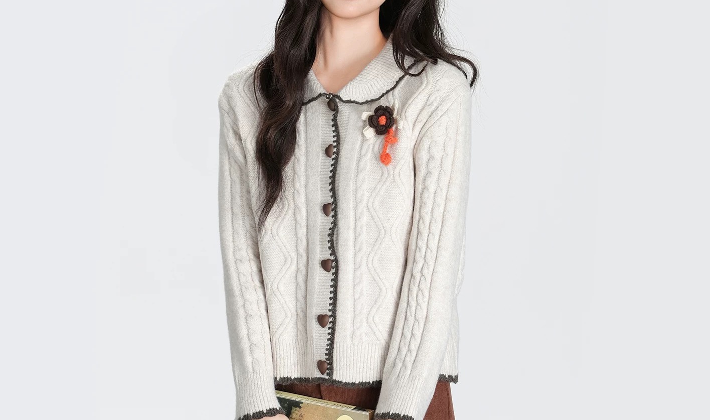立体绞花纹理 花朵胸针装饰 精致得像公主私服