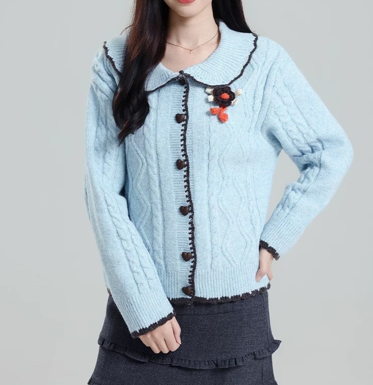 温柔奶蓝 复古绞花 软乎乎像把云朵穿身上
