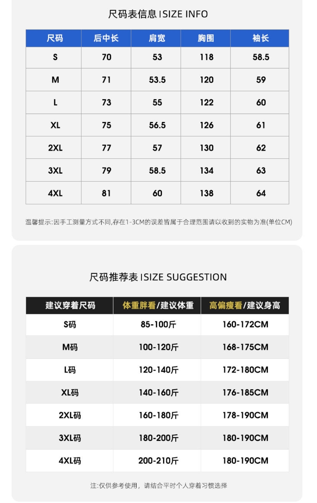 尺码 S 4XL