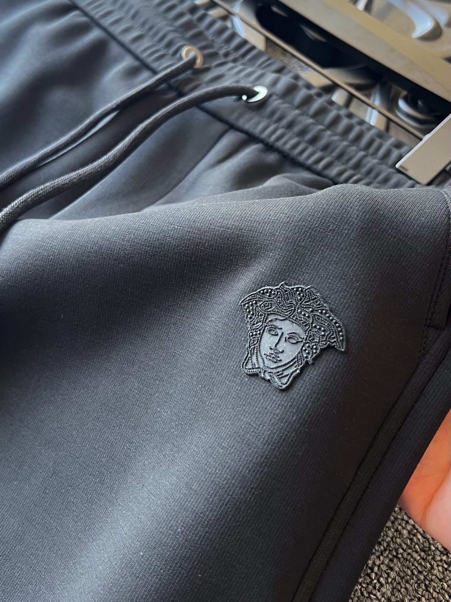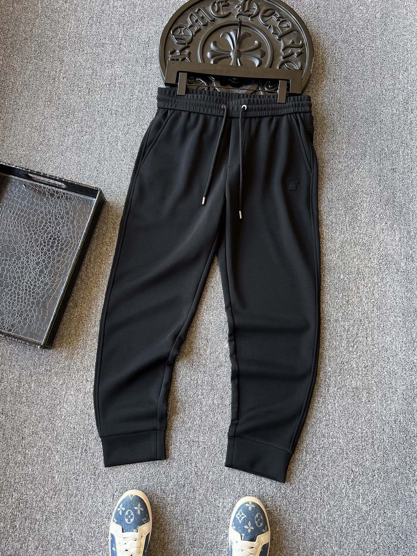 细节细节再细节 Versace家商场新款加厚莫代尔松紧束脚裤 裤前浮立体浮雕美杜莎标识硅胶小标 立体细节都雕刻的十分精致 裤后做了高频凹凸工艺配合刺绣缝线 精湛一绝 YKK代工烤漆金属件 内里全包边双包条精湛做工 业界天花板