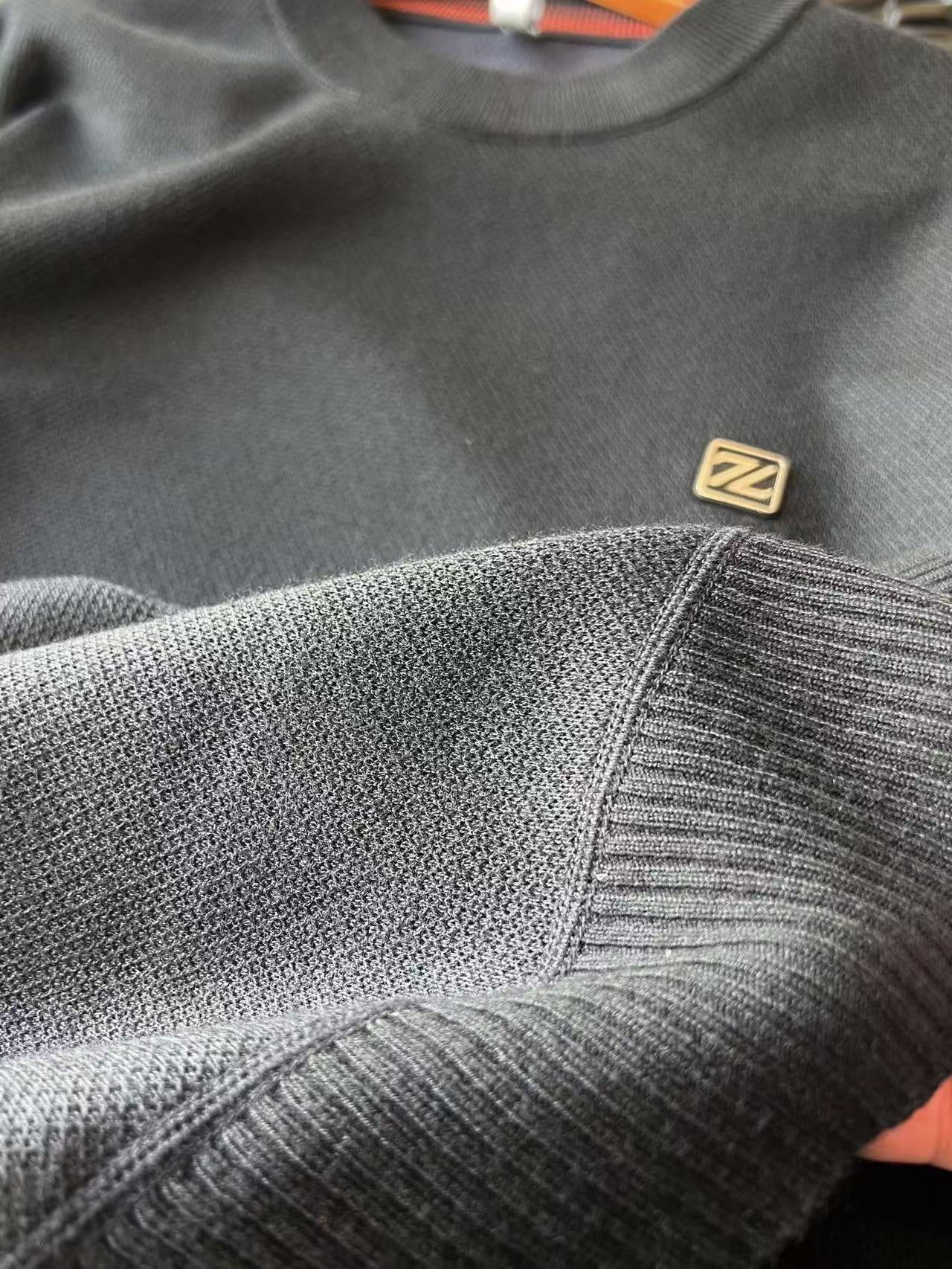 细节细节再细节 Zegna家商场新品轻奢绵羊毛加绒加厚毛衣 胸前钨钢浮雕杰尼亚ZZ金属标 进口软硅胶为基底 轮廓正方形金属环绕设计 细品十分精致 从双肩双袖到下摆全部采用6针24线缝制工艺 高级感拉满
