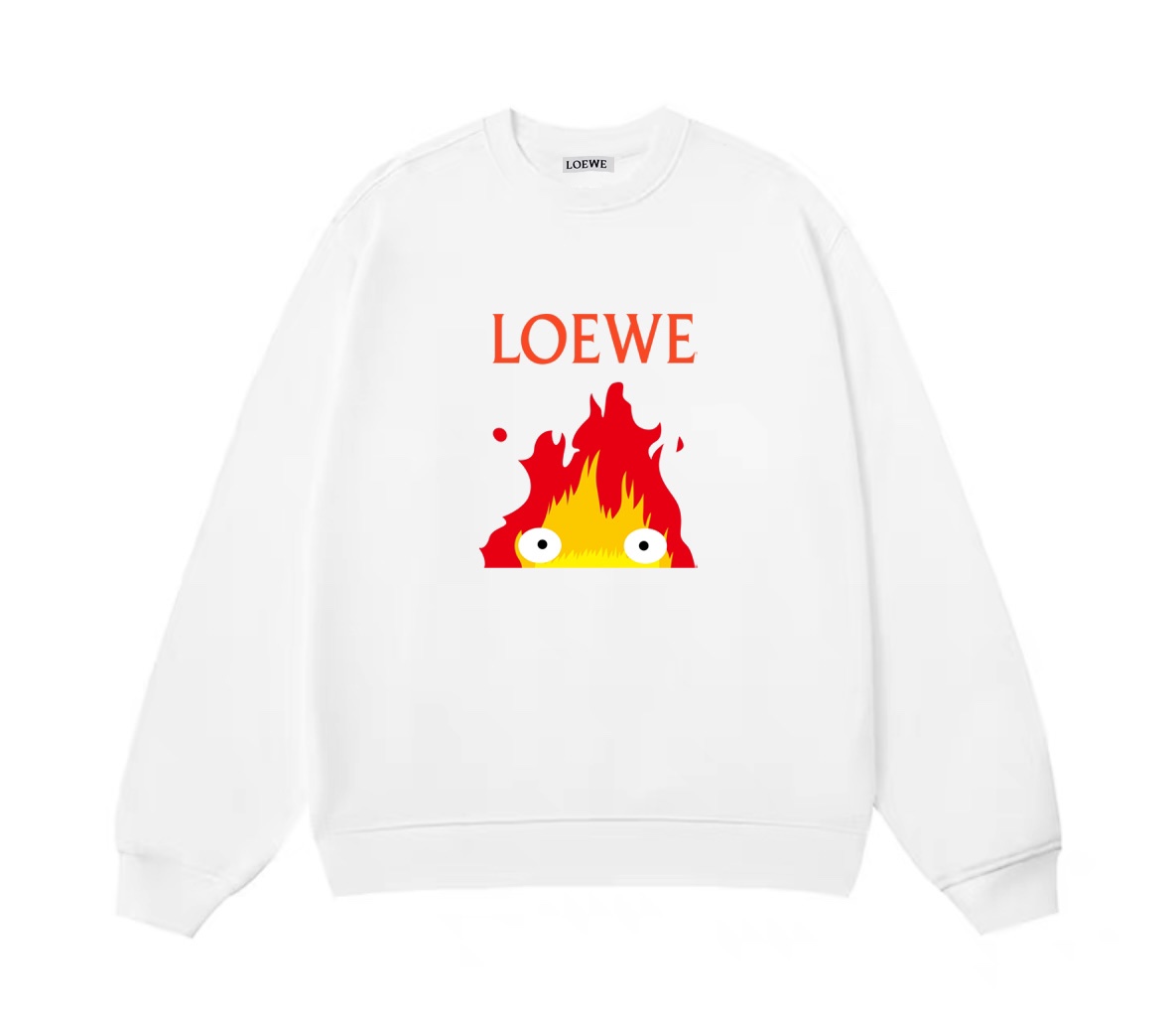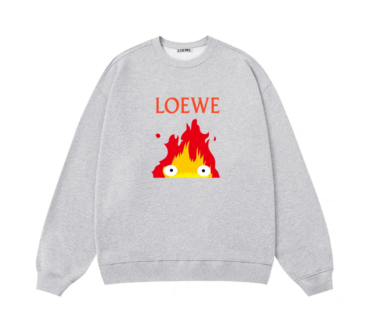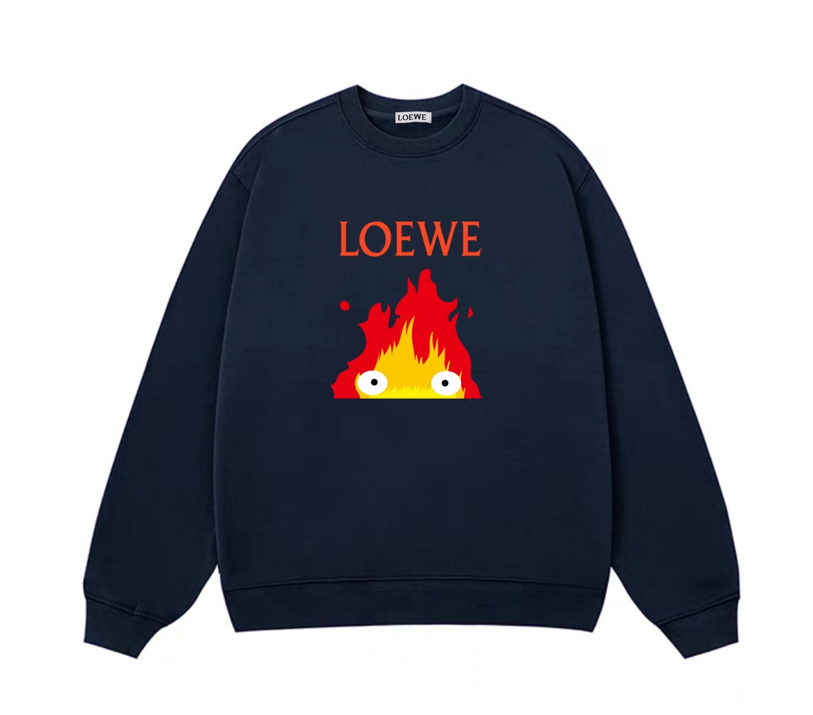 LOEWE 罗意威联名宫崎骏卡西法火苗图案冬季加绒加厚圆领卫衣