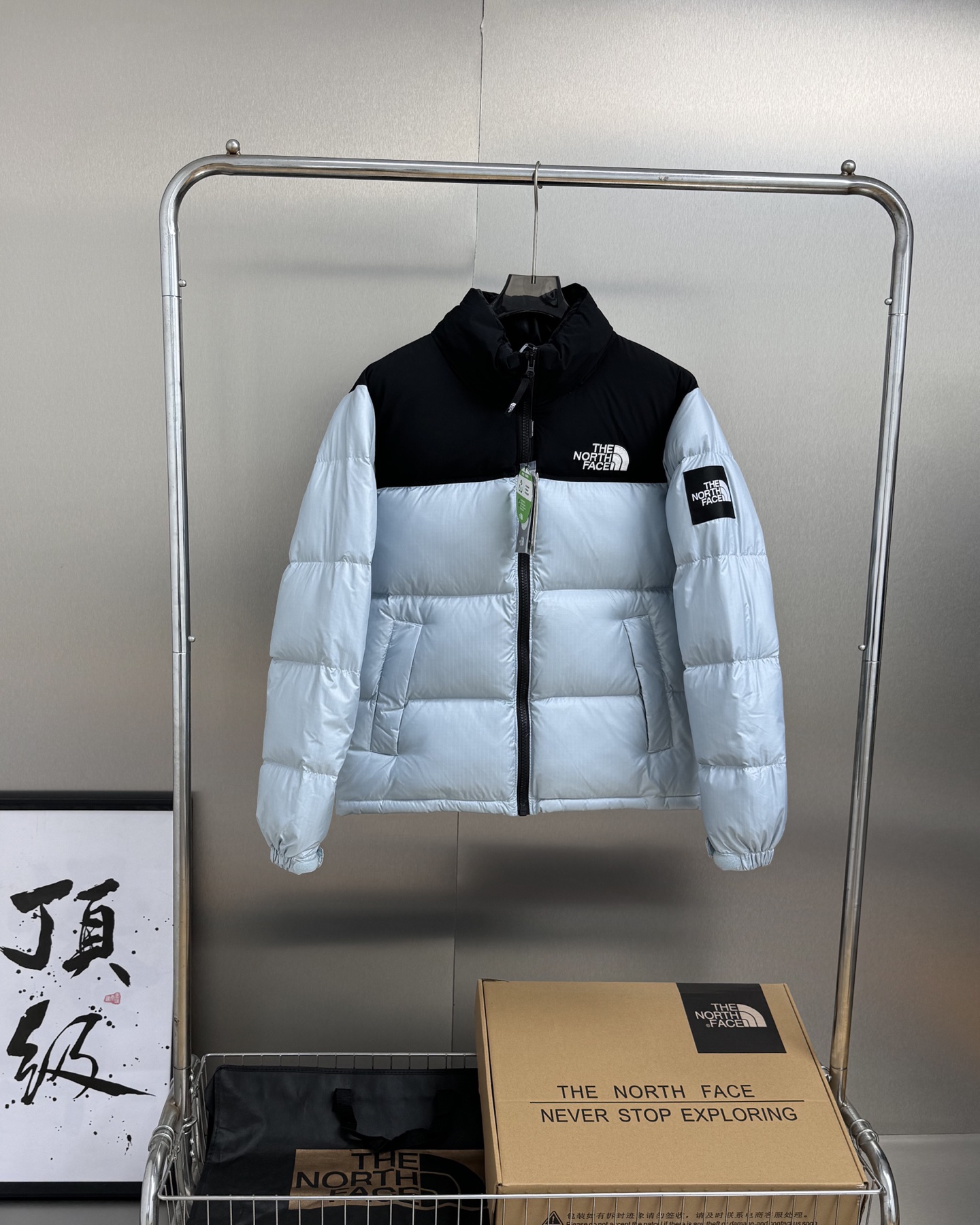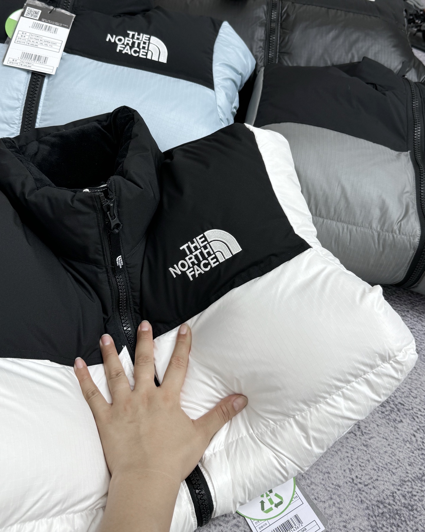 厂家直销 顶级版本带芯片随意对比 𝗧𝗵𝗲 𝗡𝗼𝗿𝘁𝗵 𝗙𝗮𝗰𝗲 北面1996 韩版申敏儿同款大格子袖章限定防风防水羽绒服 标配专柜同款帆布手提袋 退货遗失默认 可配礼盒