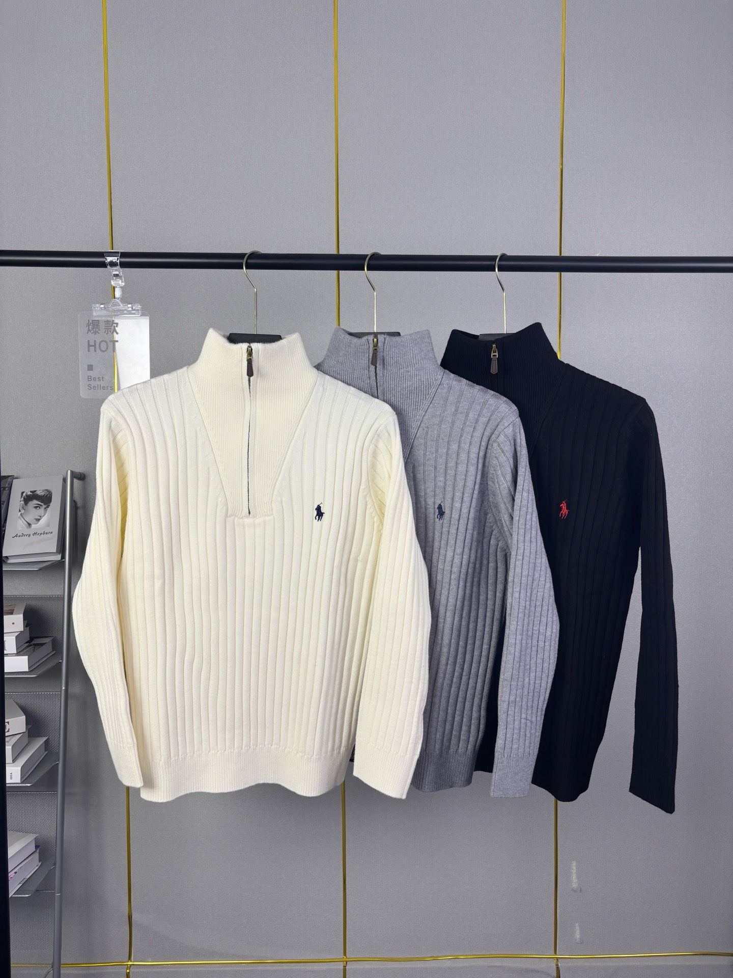 Ralph Lauren 拉夫劳伦 经典刺绣半拉链针织毛衣 男女同款