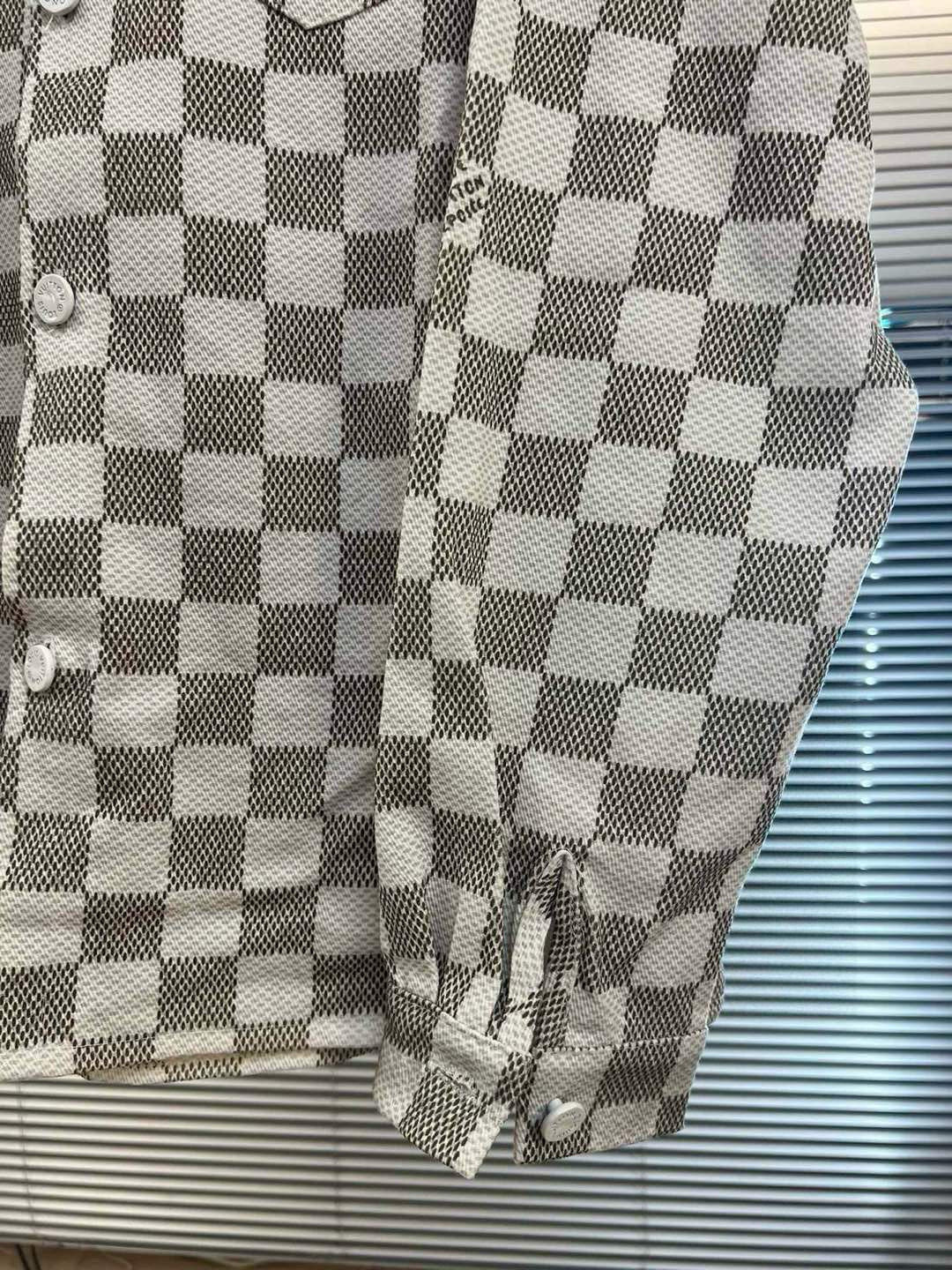 品名 Lv 24ss菲董系列棋盘格方块印花长袖衬衫夹克外套 版型 宽松 面料 提花面料 颜色 图片色 尺码M L XL 胸围 衣长 肩宽 M 126 82 54 L 130 84 55 XL 134 85 56 手工測量存在1 2cm誤差 僅供參考