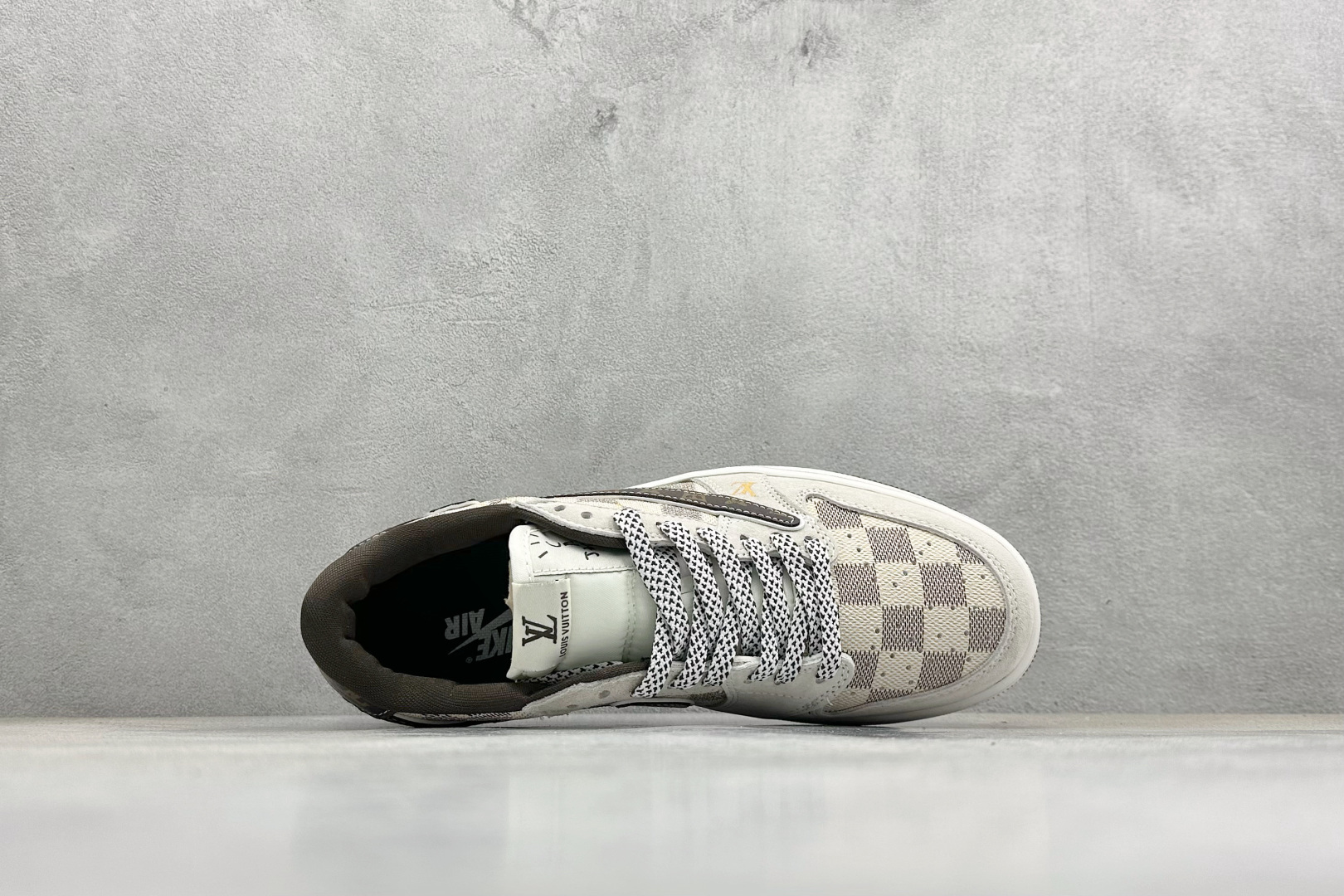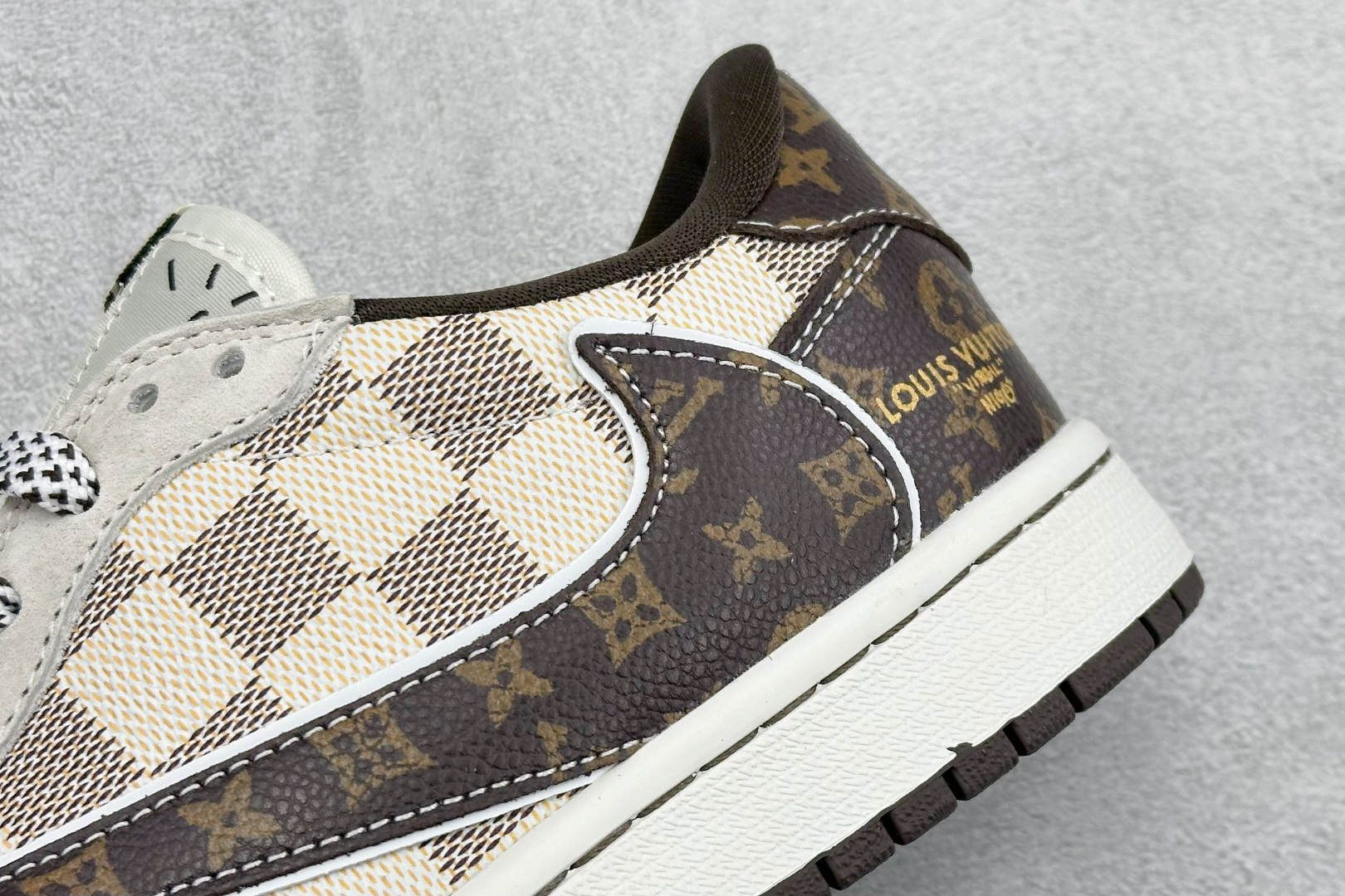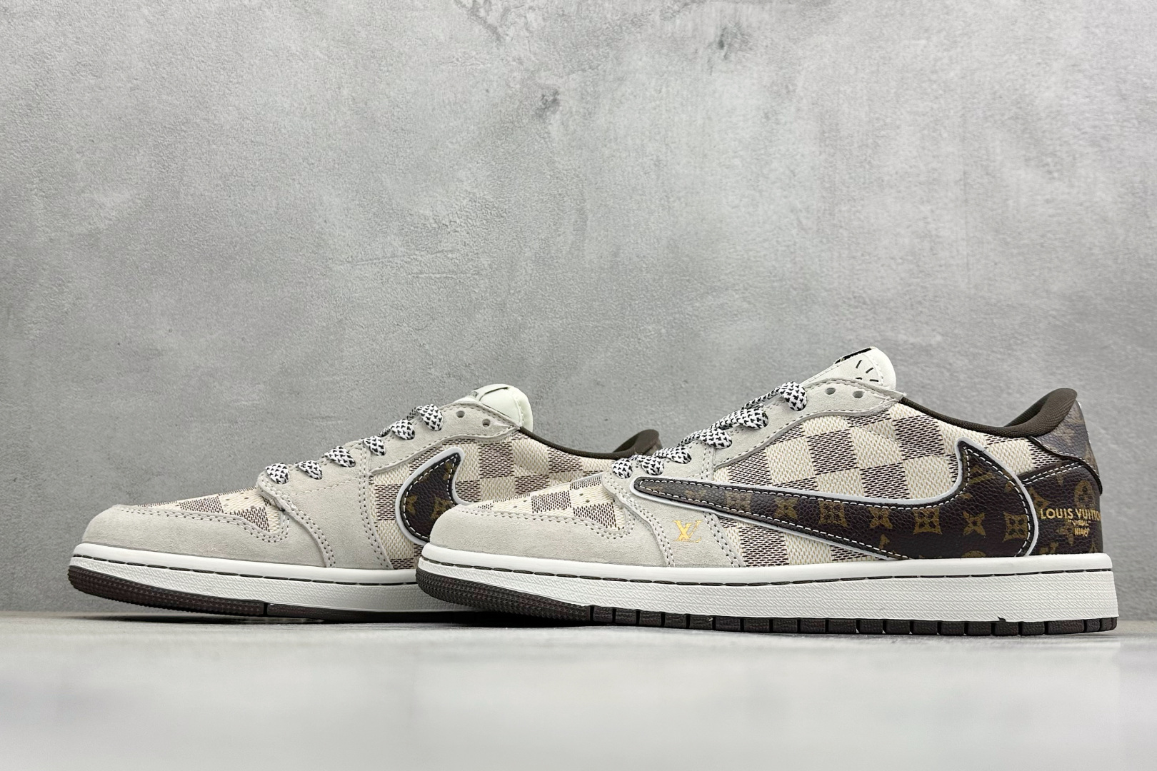 XC版Travis Scott x Fragment Design x Jordan Air Jordan 1 Low OG SP LV联名 方格米棕 多方联名合作融合了Travi翻毛蓝勾s Scott 独特的音乐风格 藤原浩个性的设计风格以及Jordan品牌的经典元素 使其成为一双具有独特身份和价值的鞋子 清新而立体的外观加上联名标识更突出了其独特身份 这种配色方案显示出活力和时尚感 在视觉上引人注目 鞋身的质感和细腻的细节处理使其显得高端而格调十足 这款 倒钩 联名是设计与创意完美结合 融合多方的个性风格是一款备受瞩目的潮流鞋款 低帮休闲板鞋 定制鞋盒 大厂纯原品质出货 超高清洁度 皮料切割干净无任何毛边 细节完美