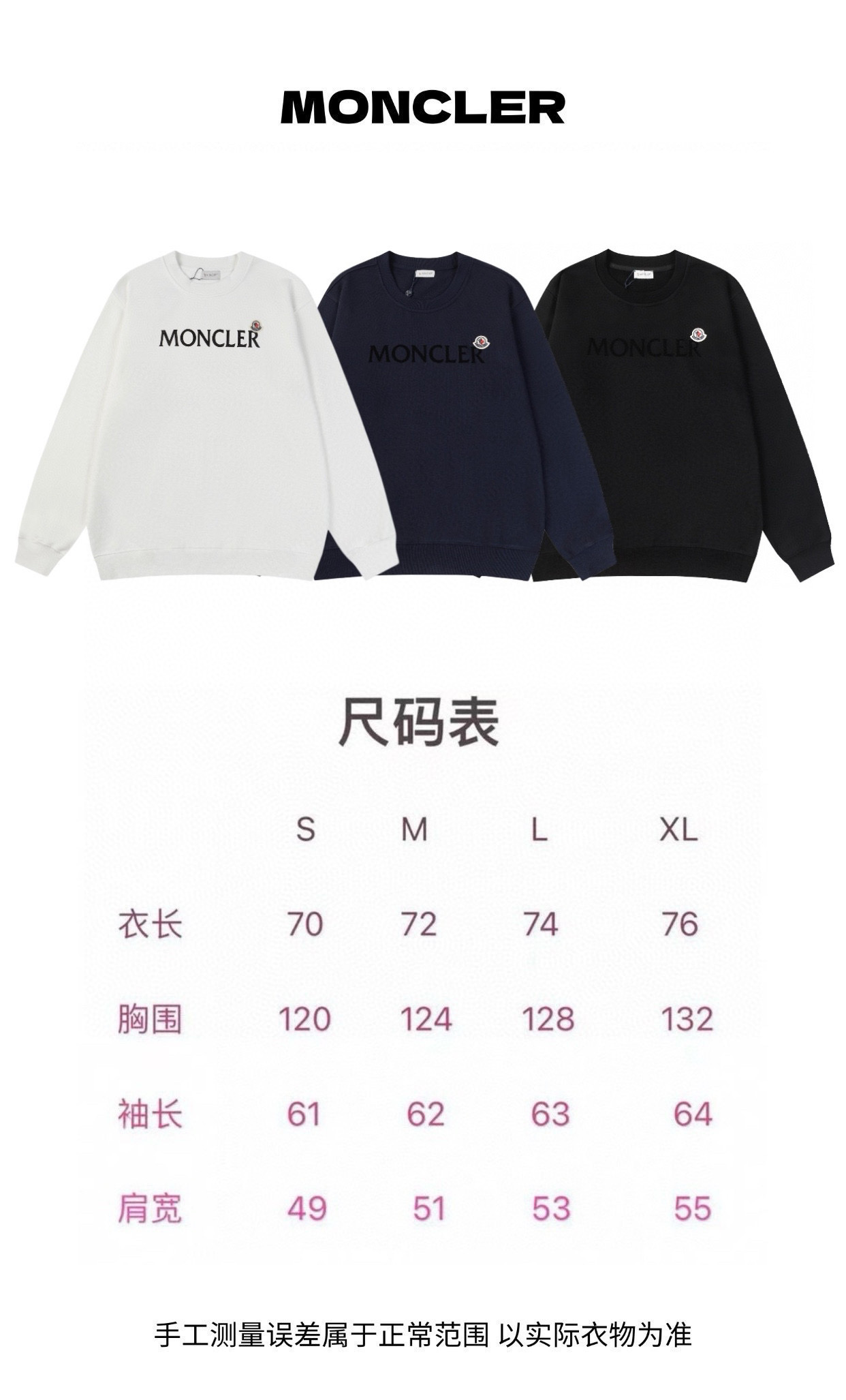 MONCLER 蒙口 经典字母logo印花徽标贴布绣情侣圆领卫衣 代购品质