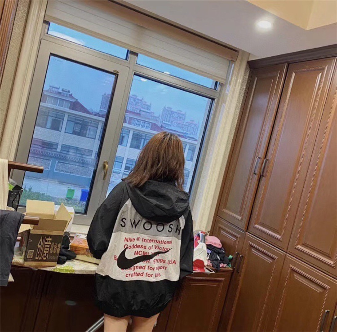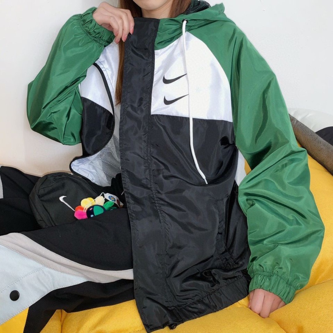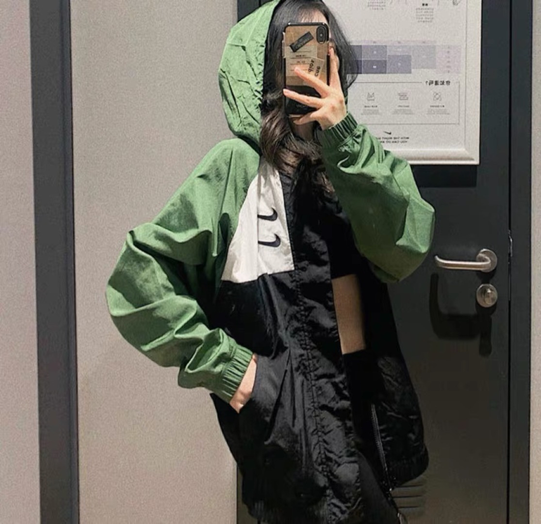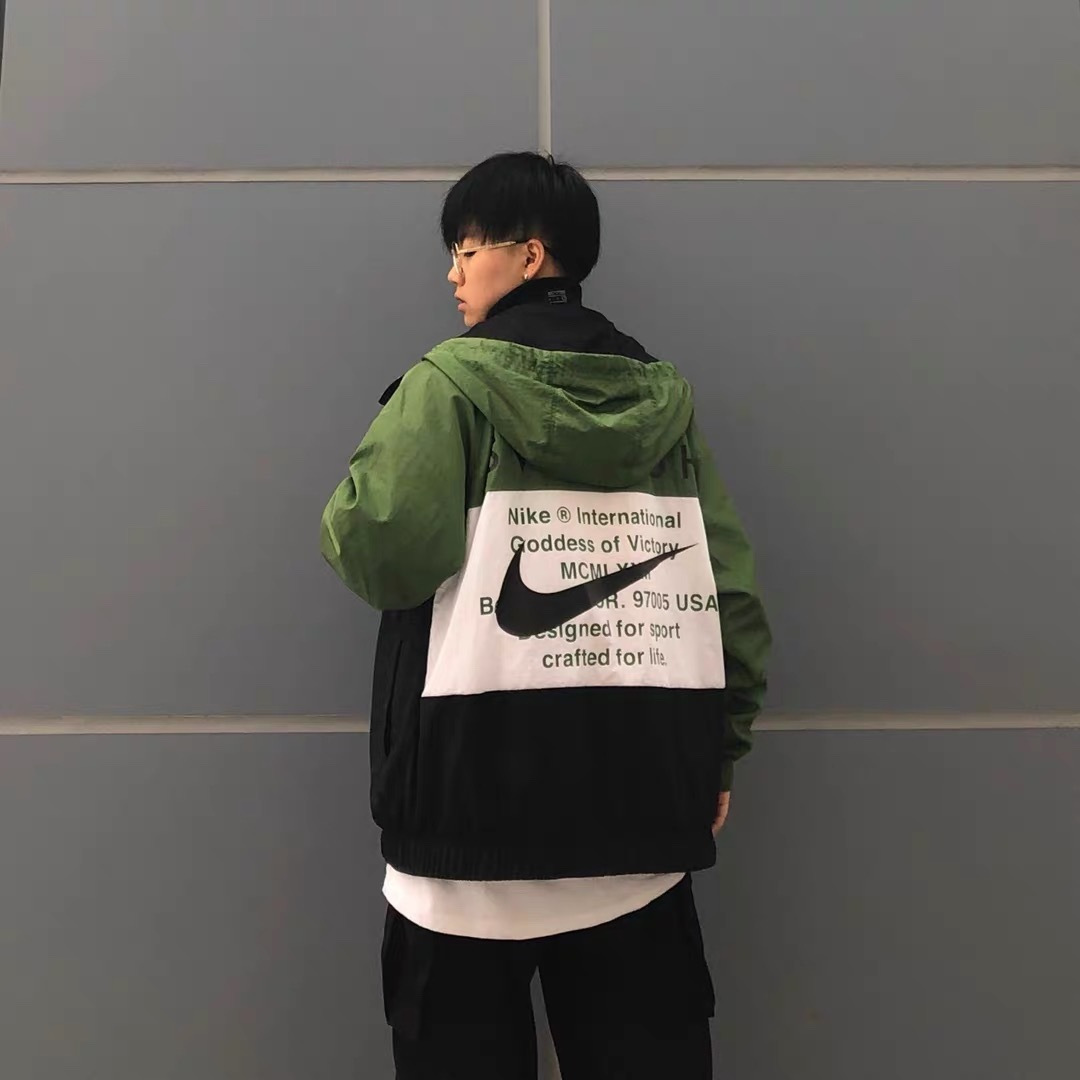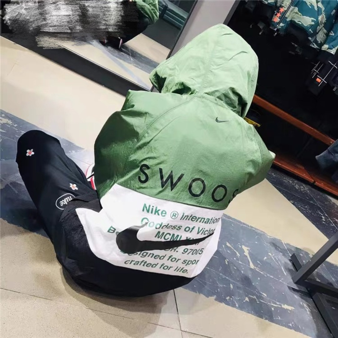 上身效果图𝟭𝟬𝟮𝟳𝟴 𝗡𝗞双勾𝗕𝗜𝗚 𝗦𝗪𝗢𝗢𝗦𝗛拉链款夹克 春秋潮牌运动风衣情侣大LOGO薄款休闲连帽刺绣透气拼接外套 实用的一款打球必备外套 此款无论是版型 还是面料都绝对无可挑剔的