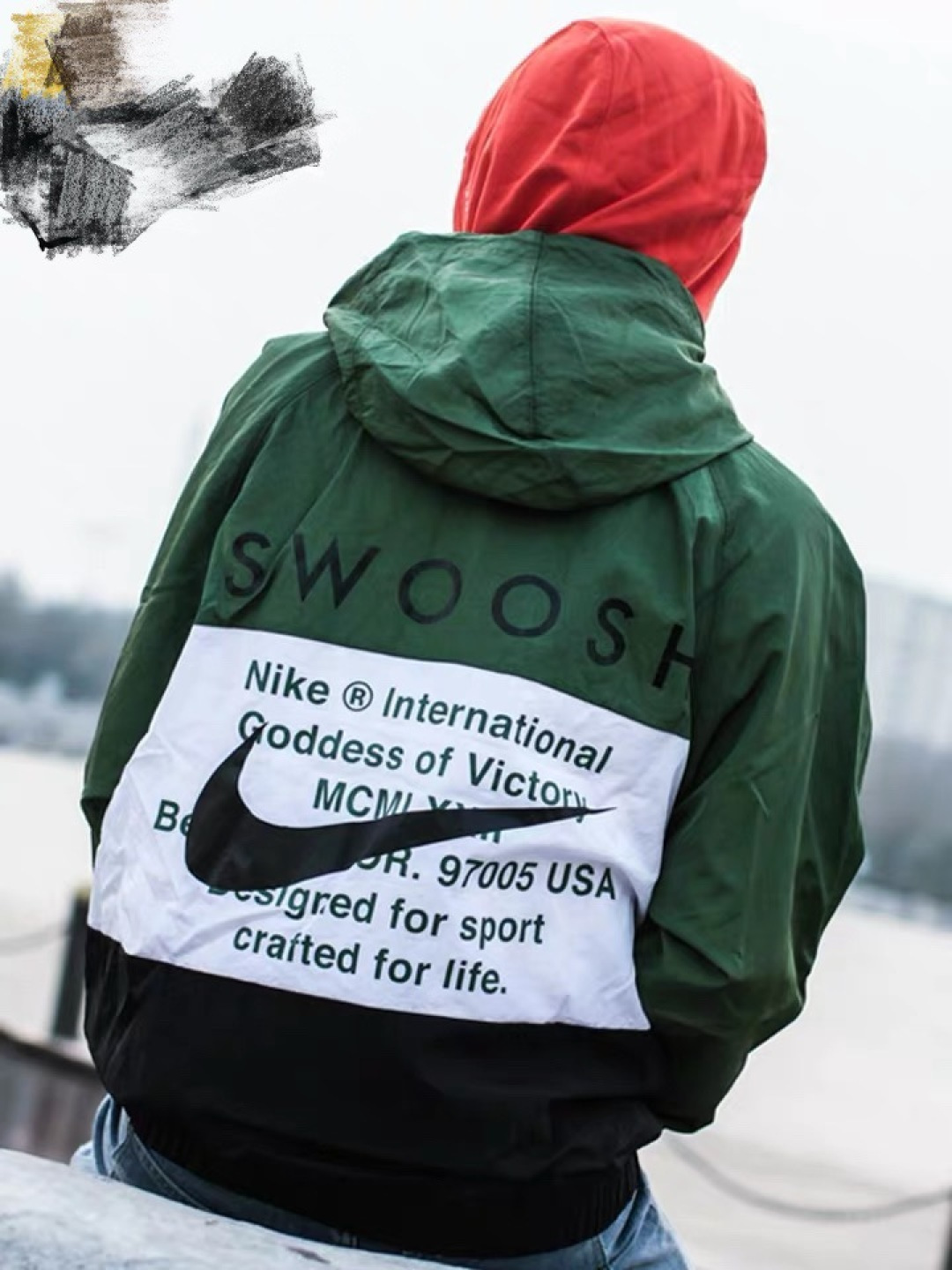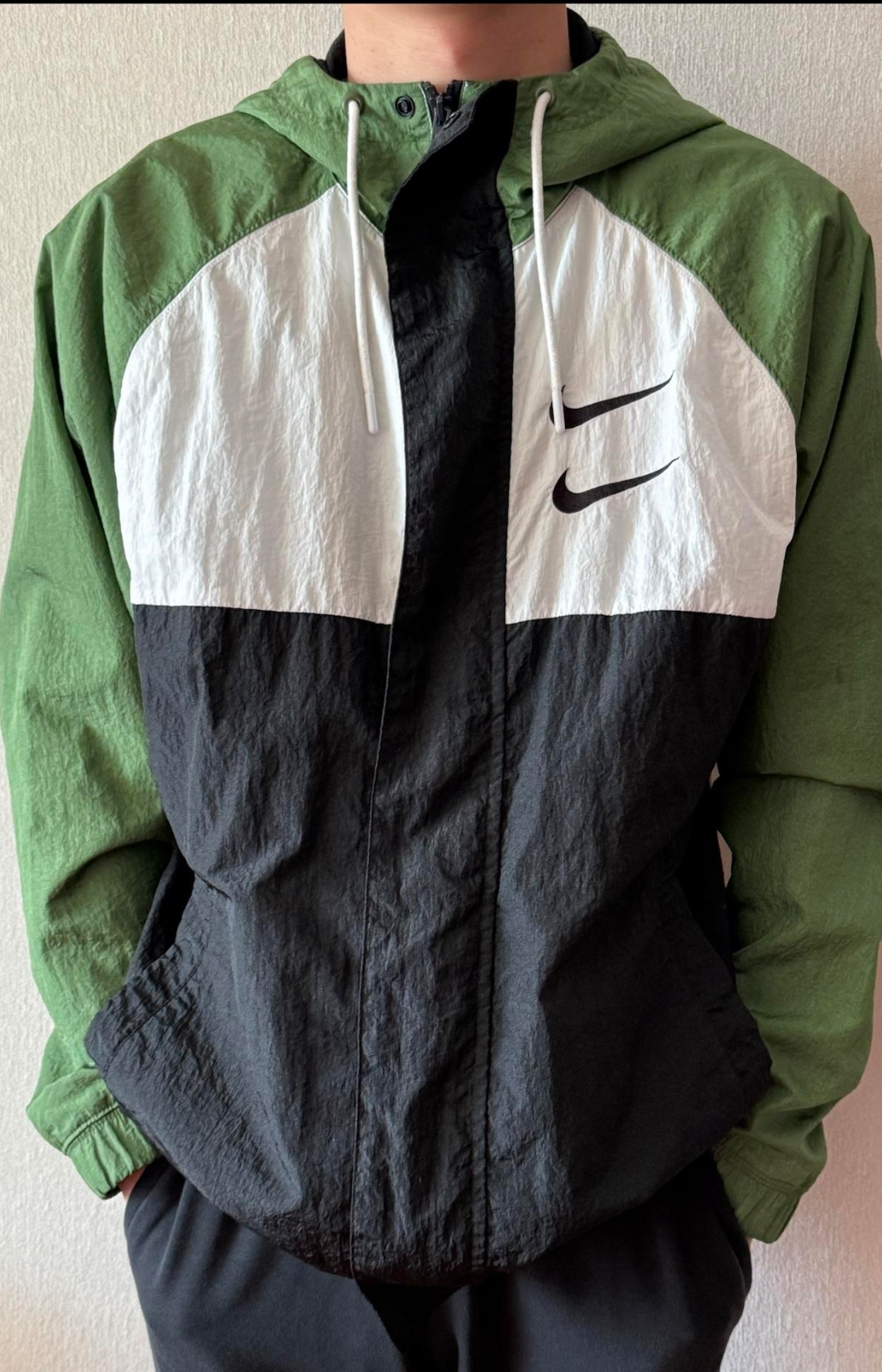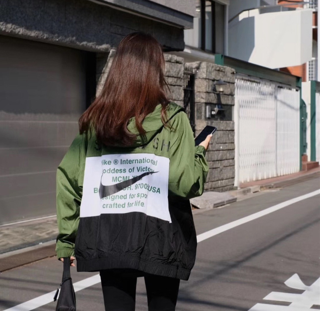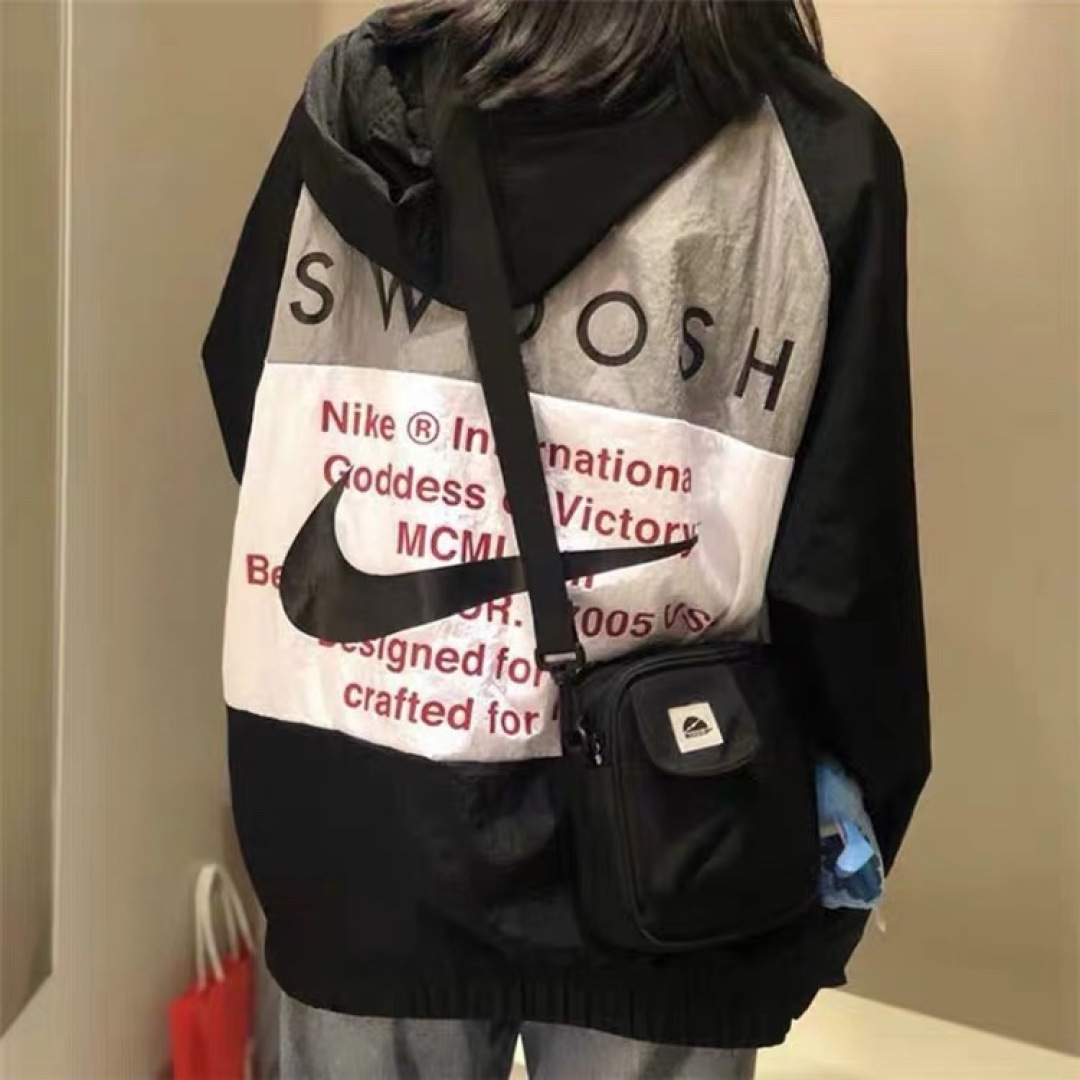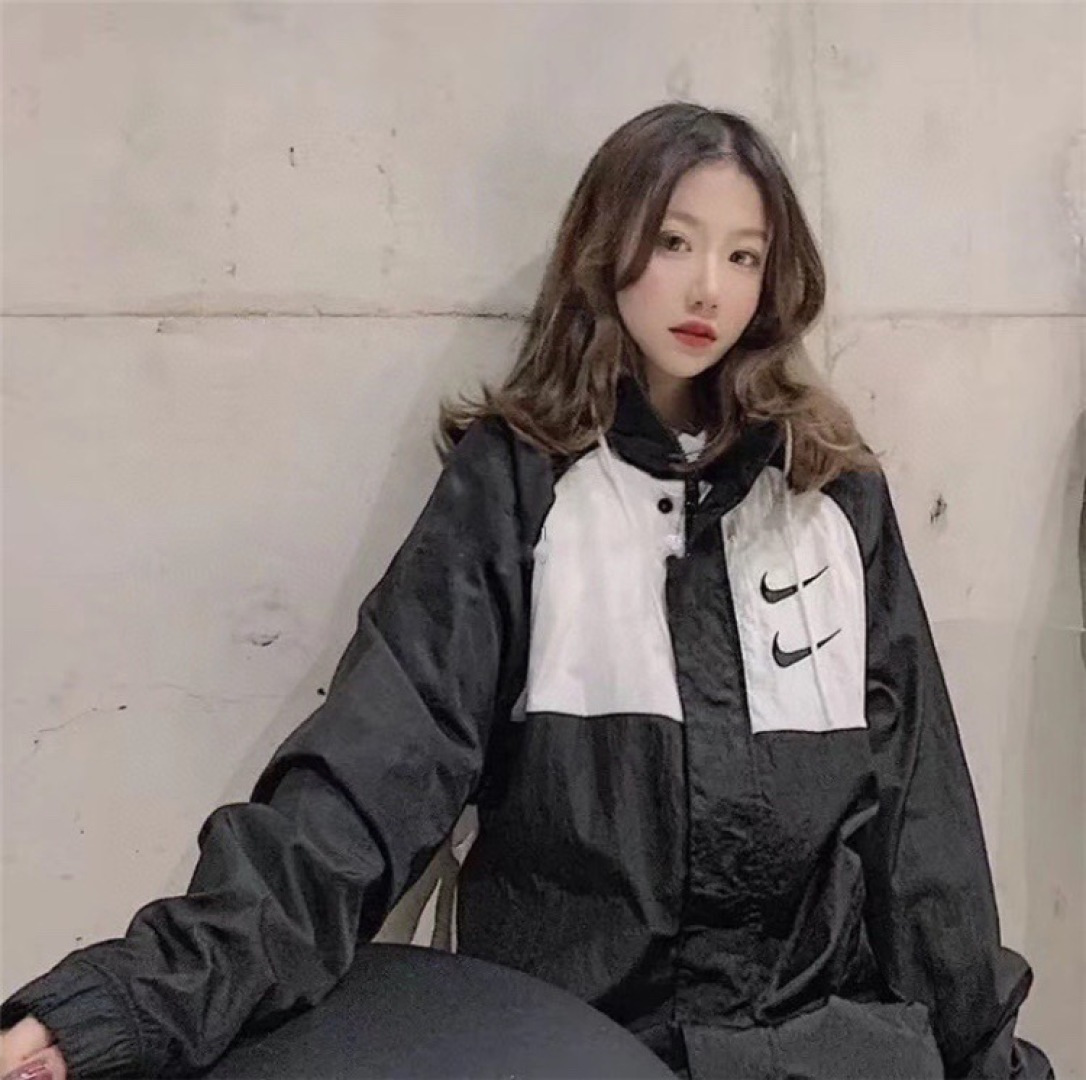 上身效果图𝟭𝟬𝟮𝟳𝟴 𝗡𝗞双勾𝗕𝗜𝗚 𝗦𝗪𝗢𝗢𝗦𝗛拉链款夹克 春秋潮牌运动风衣情侣大LOGO薄款休闲连帽刺绣透气拼接外套 实用的一款打球必备外套 此款无论是版型 还是面料都绝对无可挑剔的