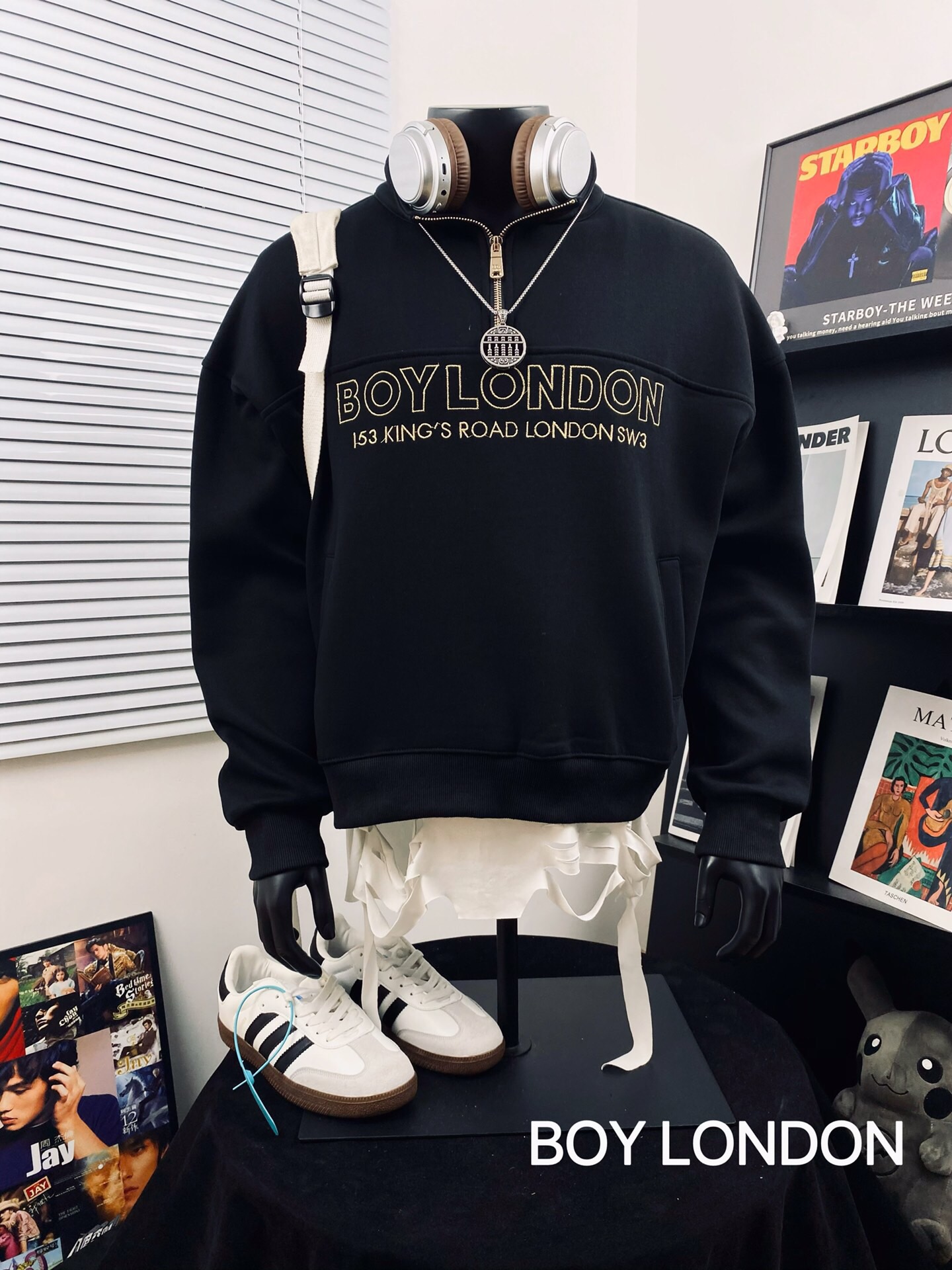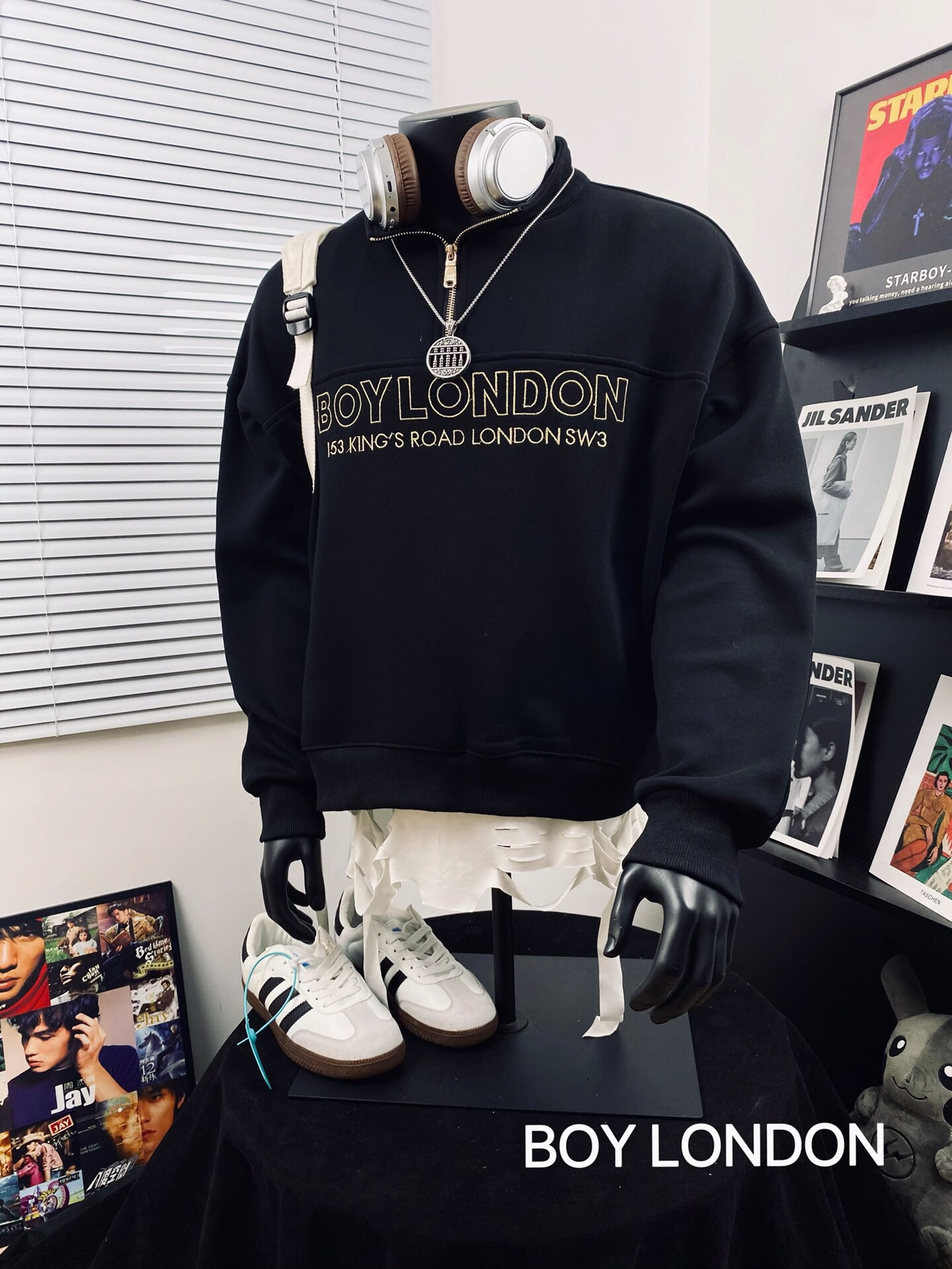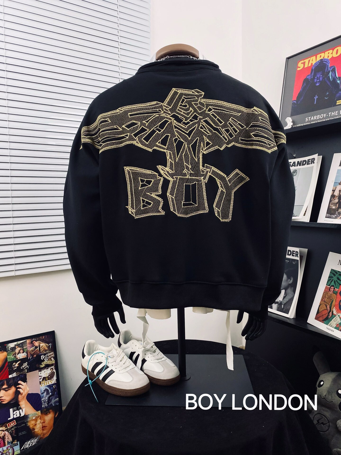 BOY LONDON 25黑金老鹰大翅膀logo痞酷情侣款半拉链卫衣