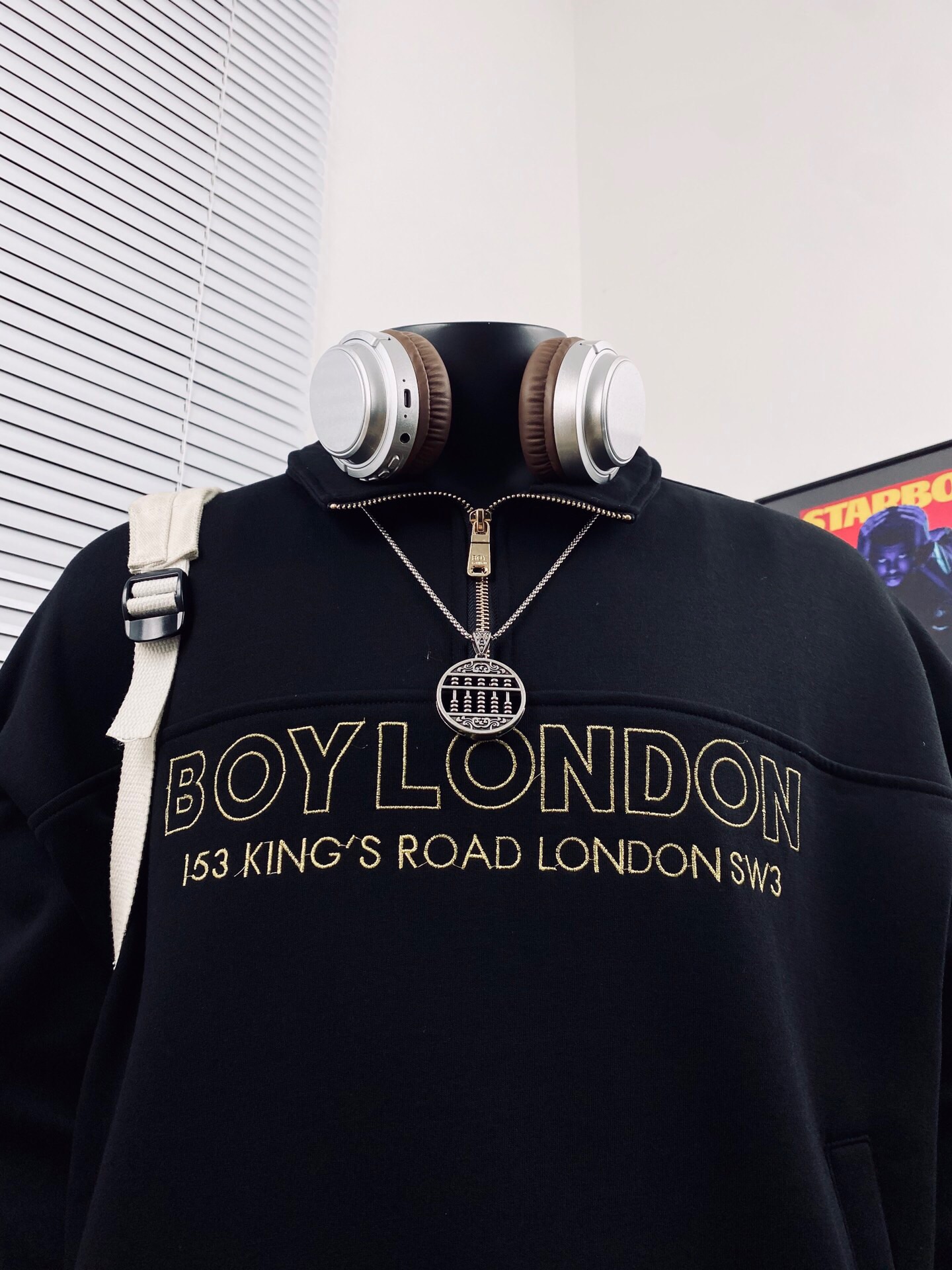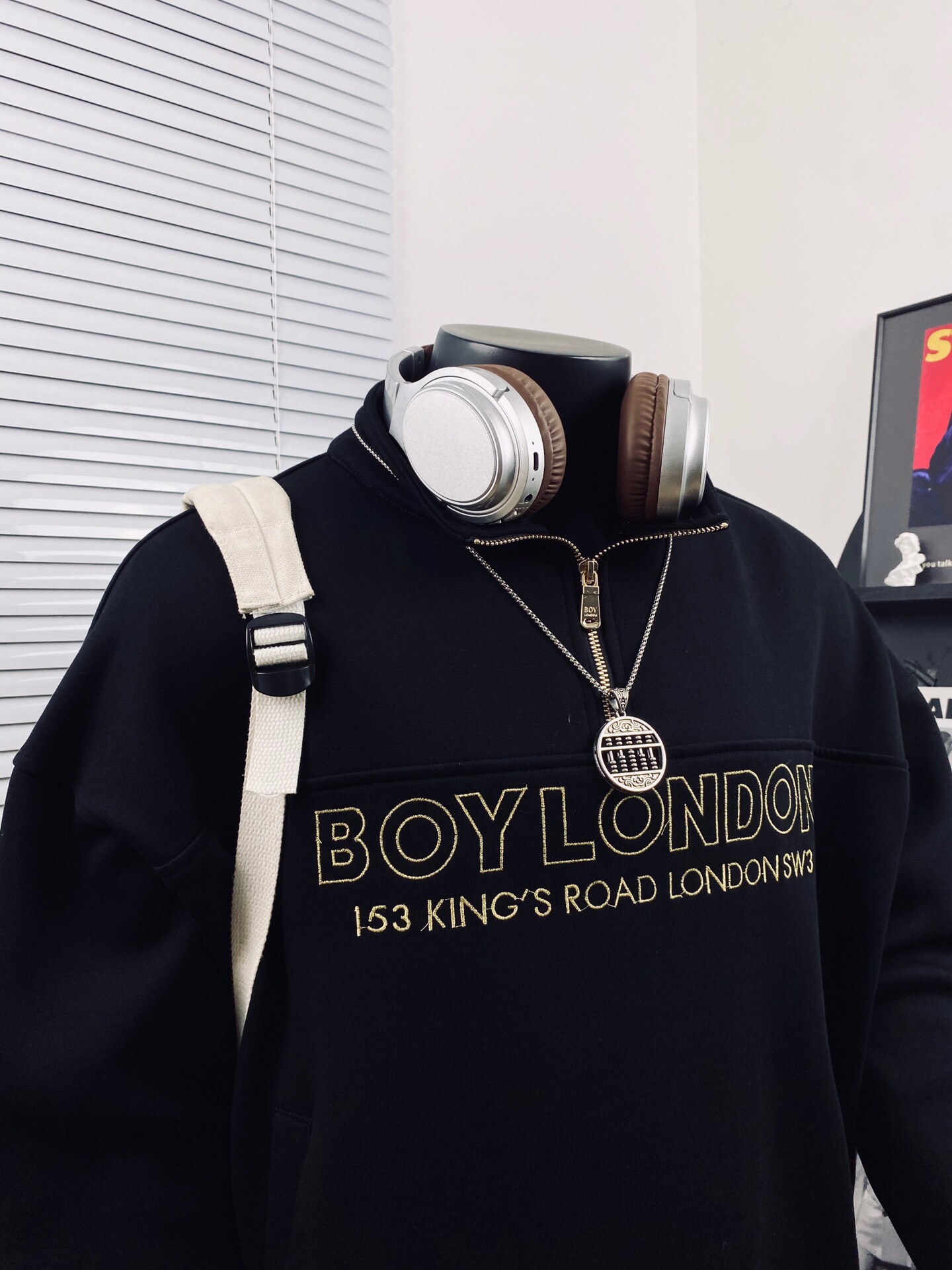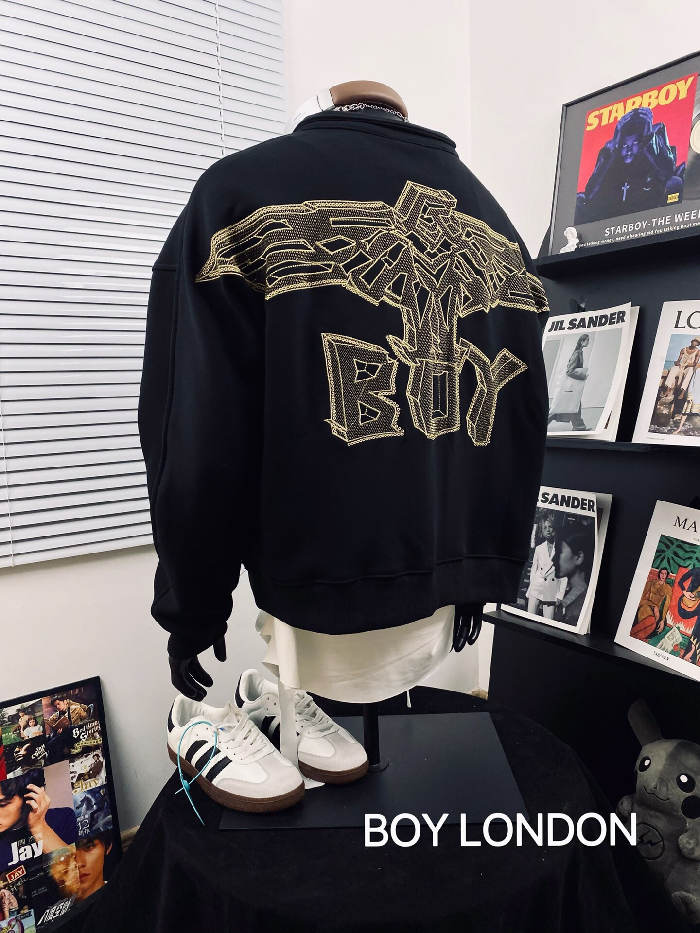 BOY LONDON 25黑金老鹰大翅膀logo痞酷情侣款半拉链卫衣