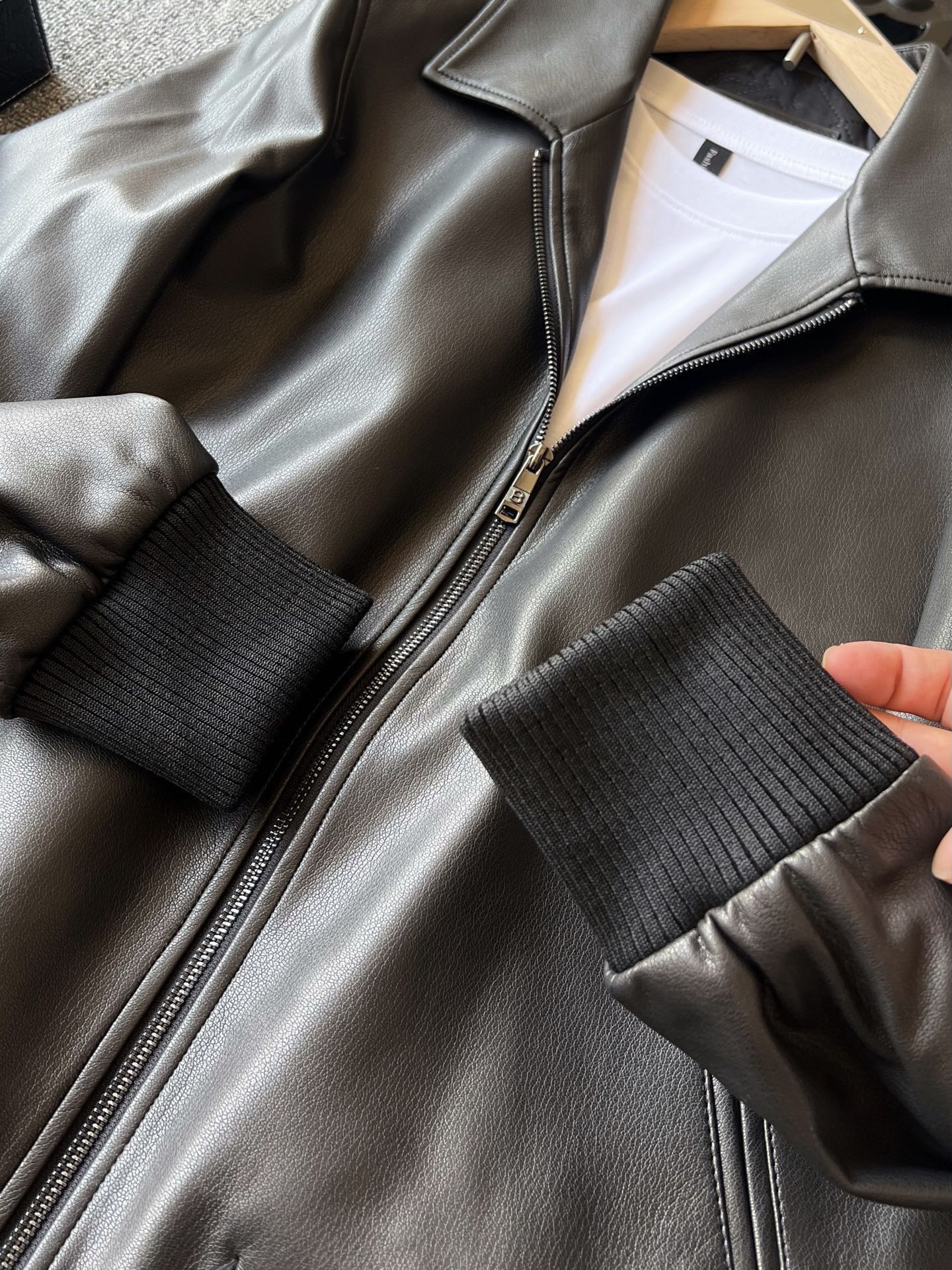 杰尼亚家今年最新开发绵羊皮混纺皮料 纯正意大利进口 色泽饱满度特别好 一眼高级的质感 摸起来手感舒服 肉见可见的垂感 不是国产的皮料不好 而且意大利进口皮料做的更细腻一些