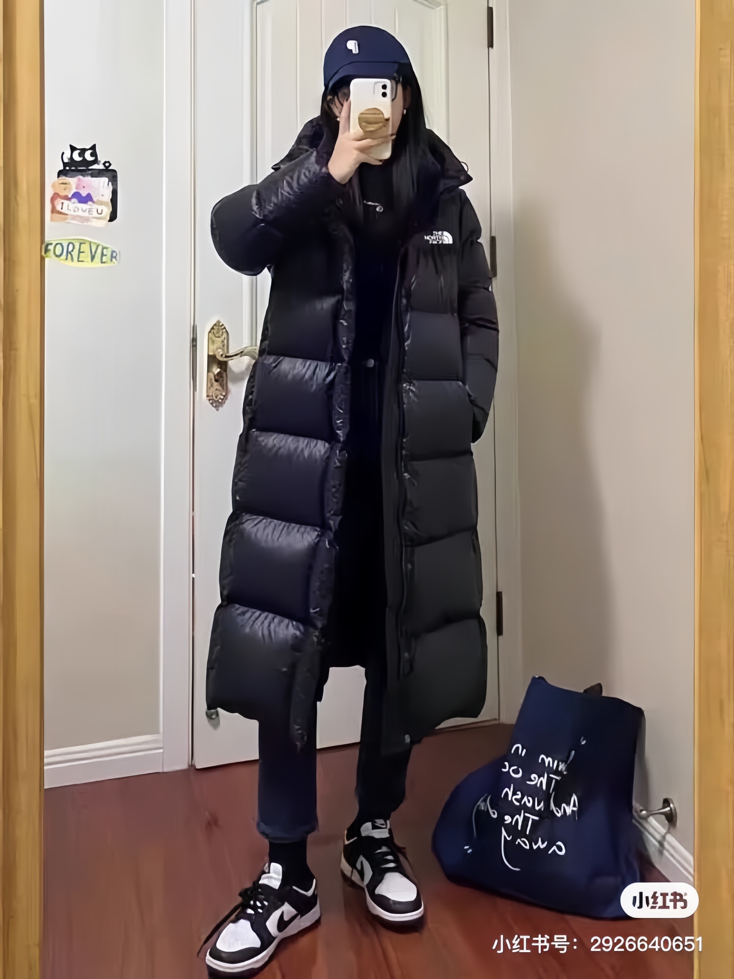 185228907 - TNF北面2024年最新款黑金中长款羽绒服连帽男女情侣款 此 432755