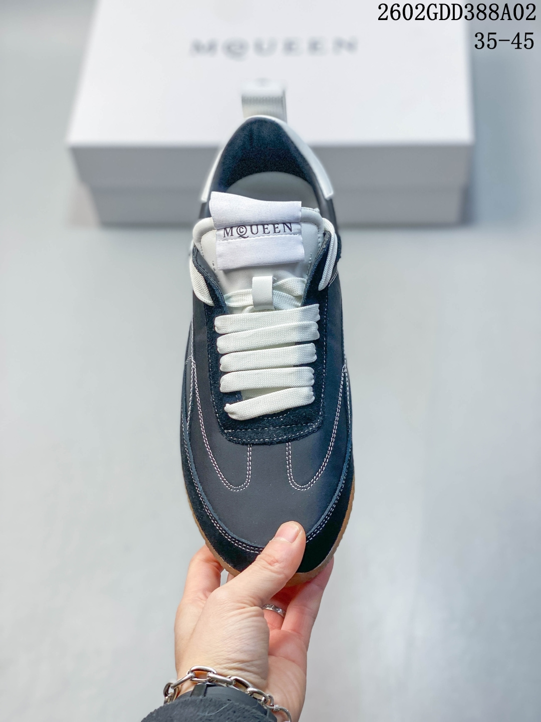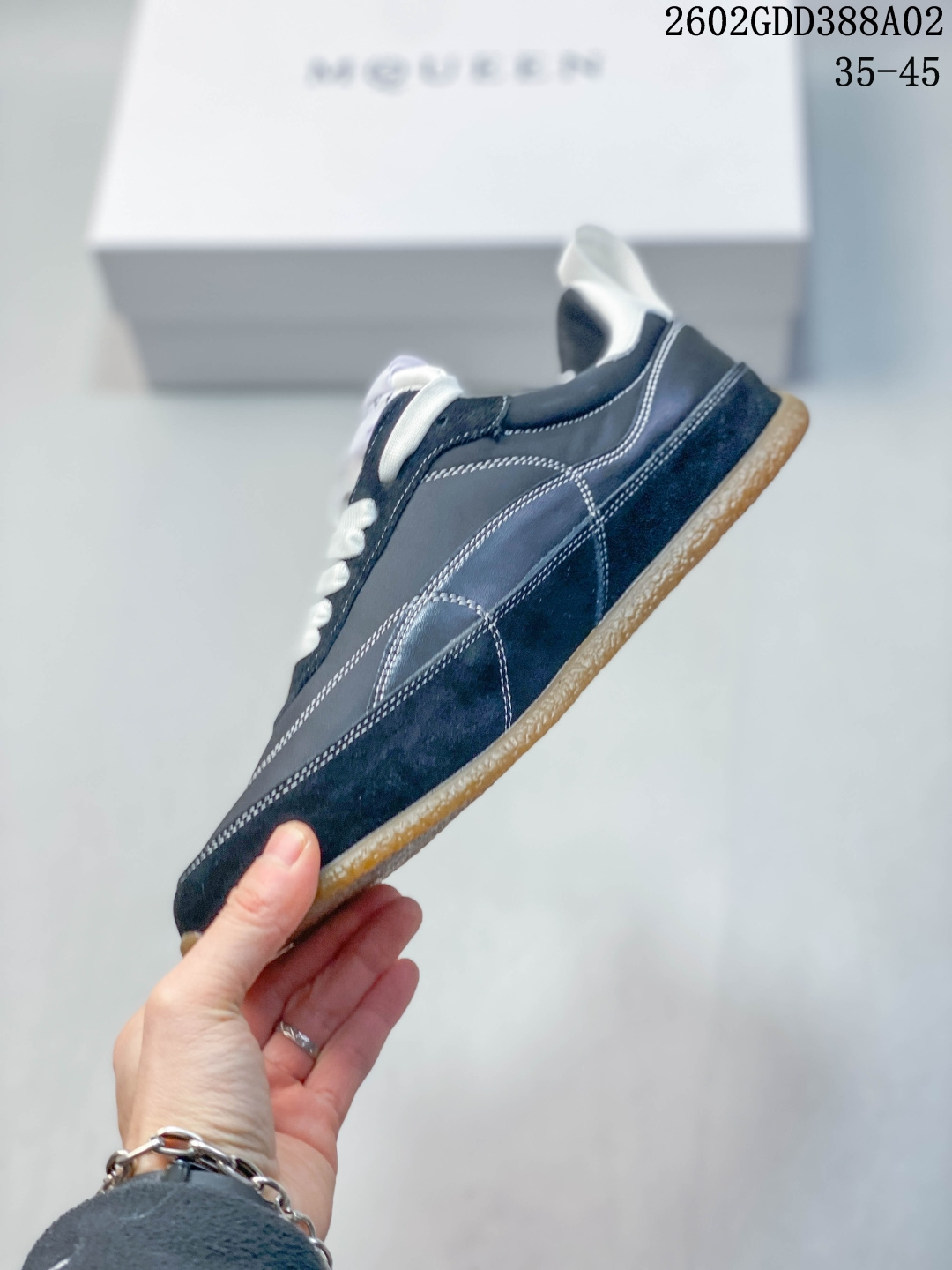 MCQUEEN麦昆26早春新品情侣款EC1白色复古风格美学运动鞋2026全新鞋款EC1运动鞋 德训鞋EC1系列板鞋 EC1运动鞋 采用流畅的圆形鞋头 采用白色尼龙和绒面材