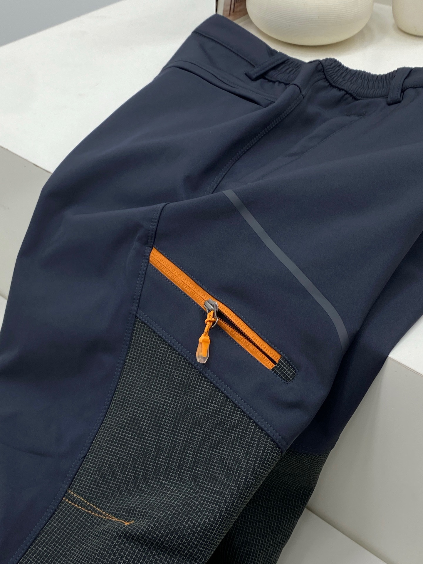 它的细节设计全是 痛点杀手 外层是重磅面料拼接几何纹路 抗风性拉满还自带高级感 膝盖处特意用了超临界耐磨面料 爬山 徒步时跪蹲摩擦都不怕破 耐用度直接升级 内里加绒亲肤不掉絮 贴身穿暖乎乎的 零下几度穿也不冻腿
