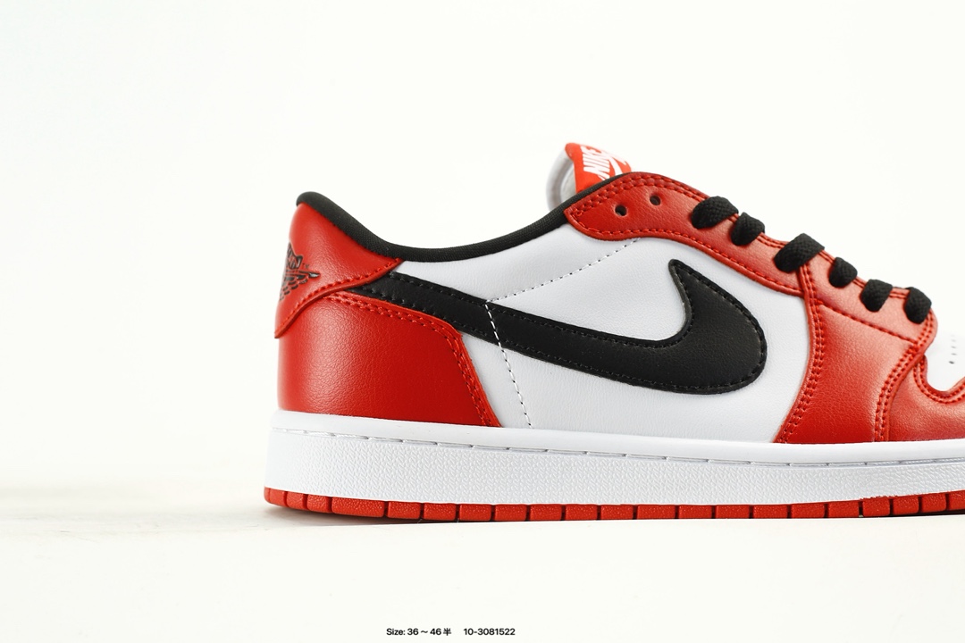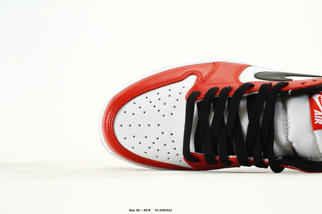 Air Jordan 1 Low OG Black Muslin Varsity Red 低帮 复刻芝加哥 AJ1 乔丹1代 aj1 乔1 低邦 复刻红白黑 乔丹篮球鞋系列 芝加哥公牛队经典的Chicago白黑红配色降临 不仅再现经典芝加哥公牛的标志性配色 而且本次材质用料都力求还原最初的版本 带来原汁原味的 OG 设定 以经典的元年细节呈现了我们颇为熟悉的公牛队配色 鞋身整体采用白色皮革打造 搭配红色皮革框架覆盖层 白红搭配带来抢眼的活力显现 鞋身两侧黑色Swoosh Logo和细节的托衬也恰当好处 经典风范十足 鞋舌红色绣标上点缀白色Nike Swoosxh Logo 后跟Wings Logo则以黑色压印呈现 最后以白色中底搭配红色橡胶x外底完善整体设计收尾