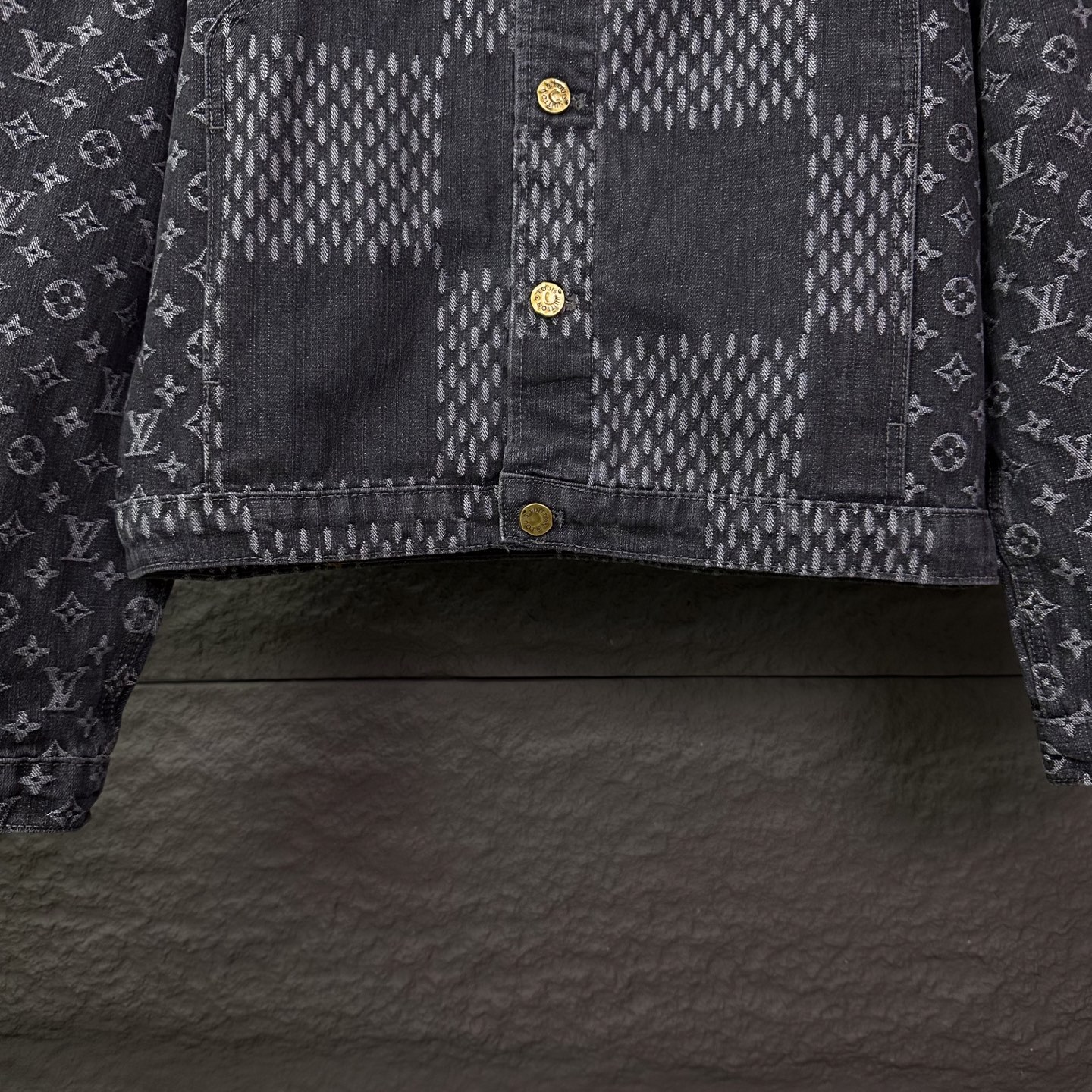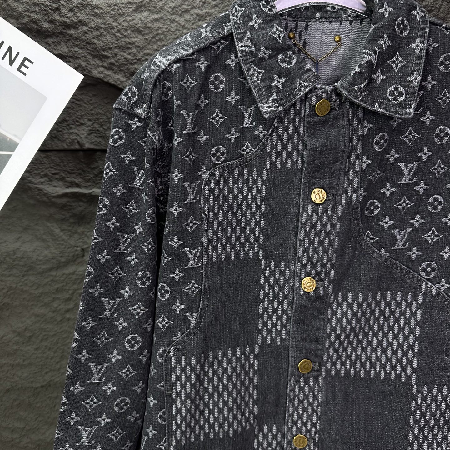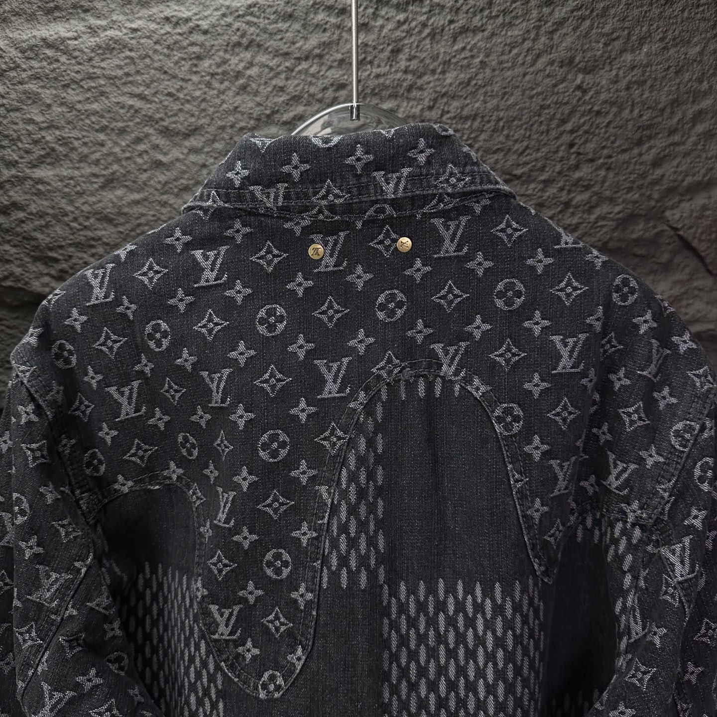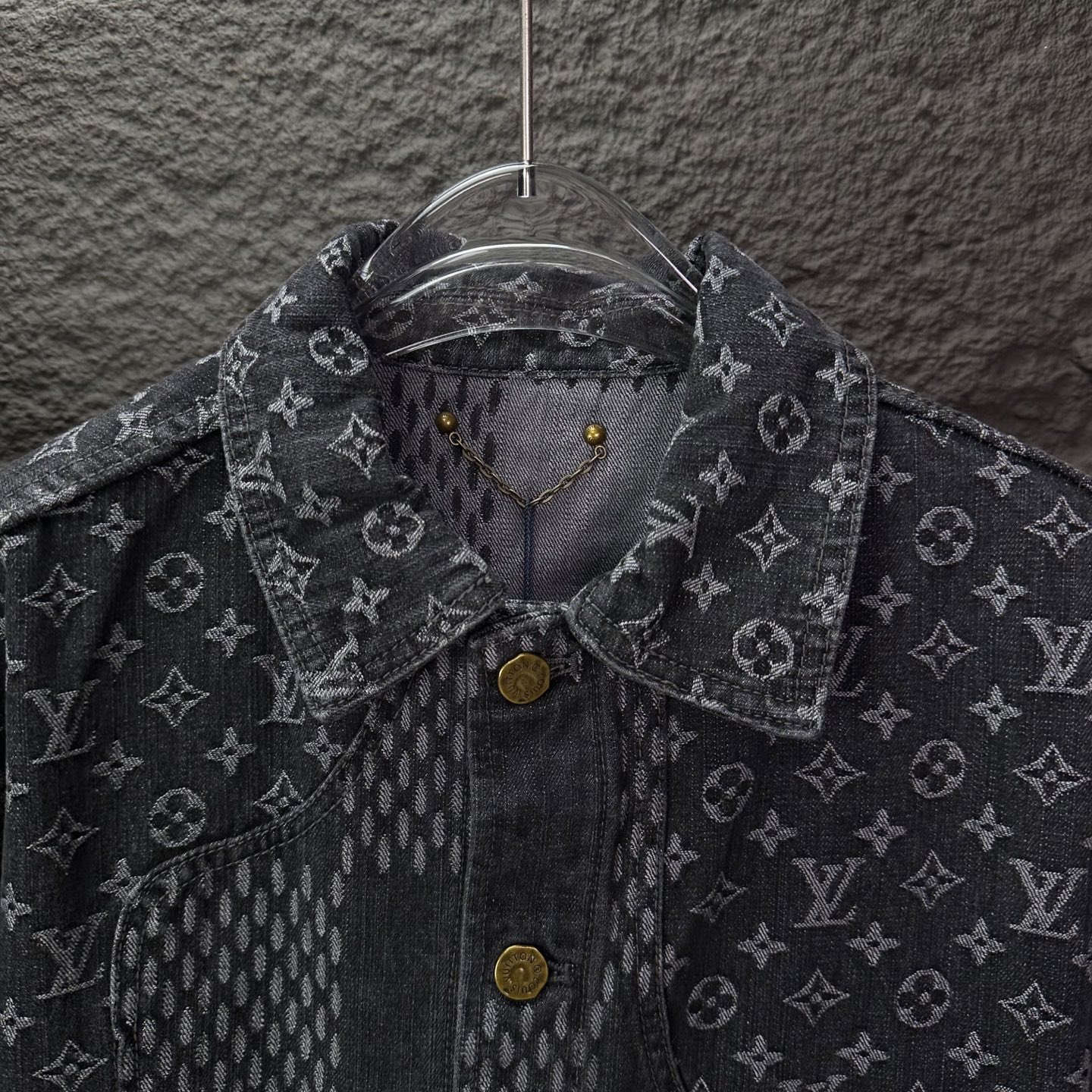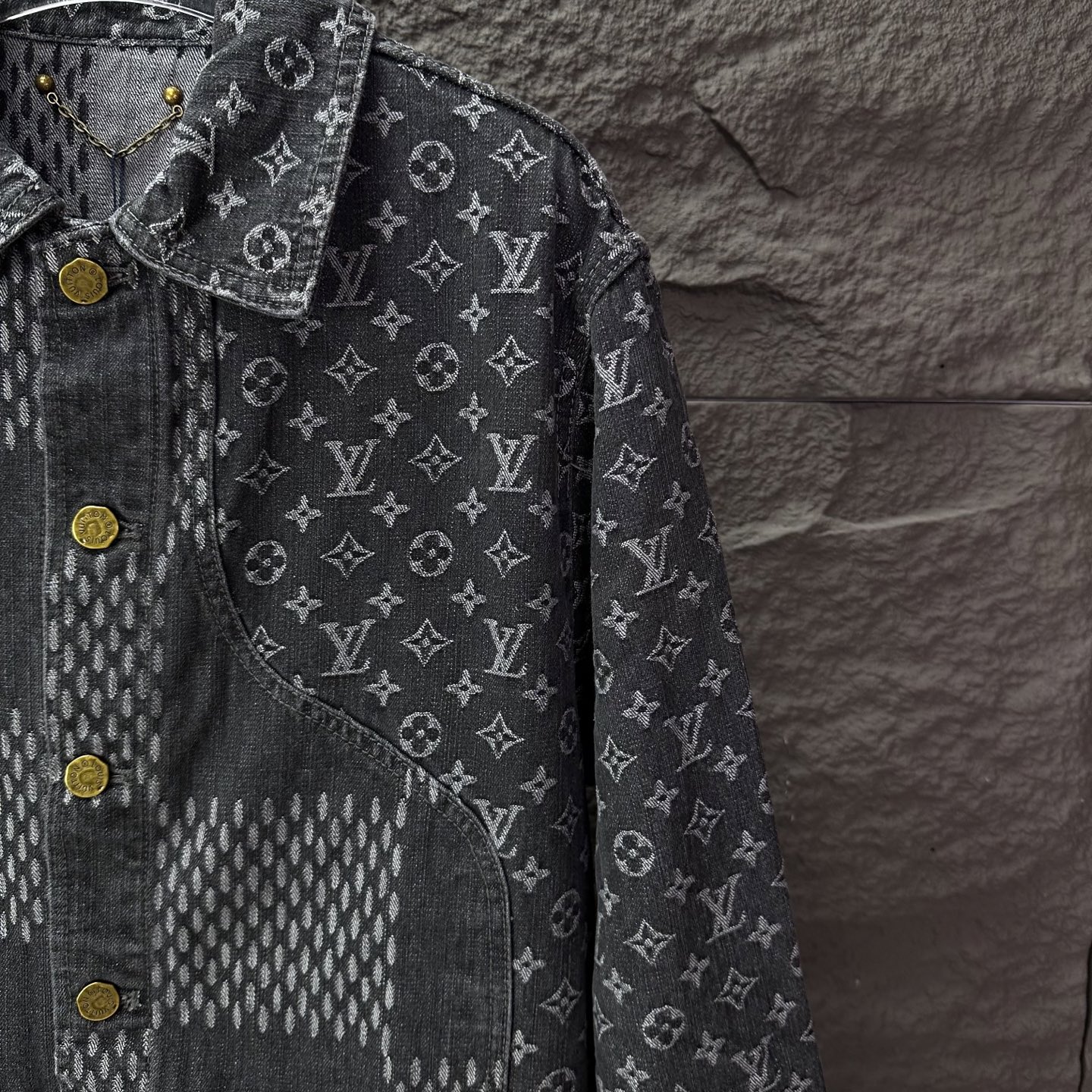 驴家2025新款提花满印logo拼接情侣款水洗牛仔外套 高版本高版本 原版定制五金辅料 网红明星同款高级牛仔面料 定制YKK五金纽扣 全身满印提花logo图案拼接设计 很高档 很有范儿 面料手感非常舒服 超级百搭好看的一款牛仔外套 三标齐全 男女同款 人手必备款 颜色 黑色 尺码 S XL