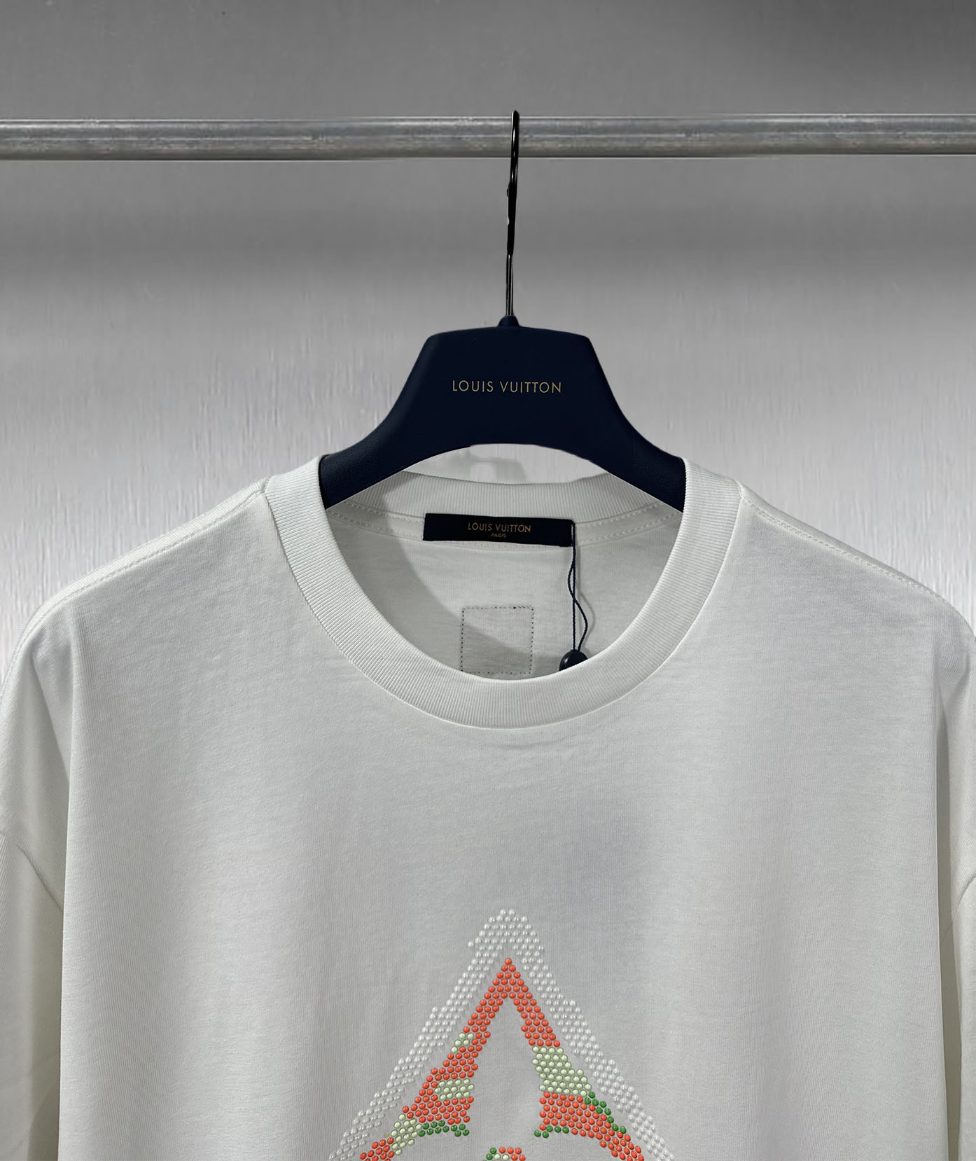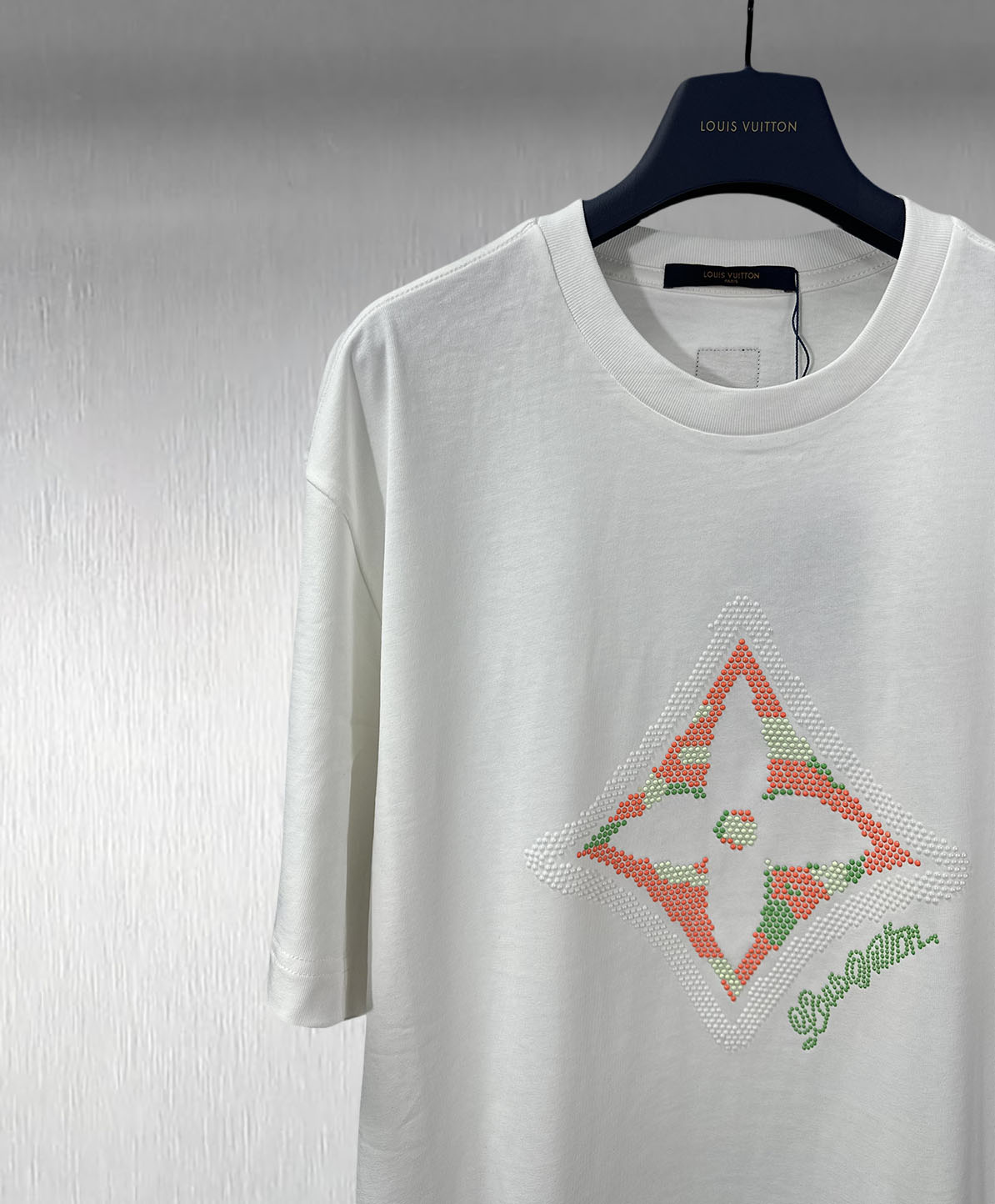 再以手写体路易威登标识点明品牌身份可与同季下装搭配营造时尚造型 短袖不在千篇一律的大众脸
