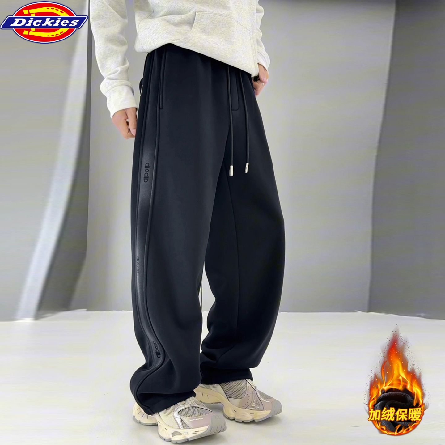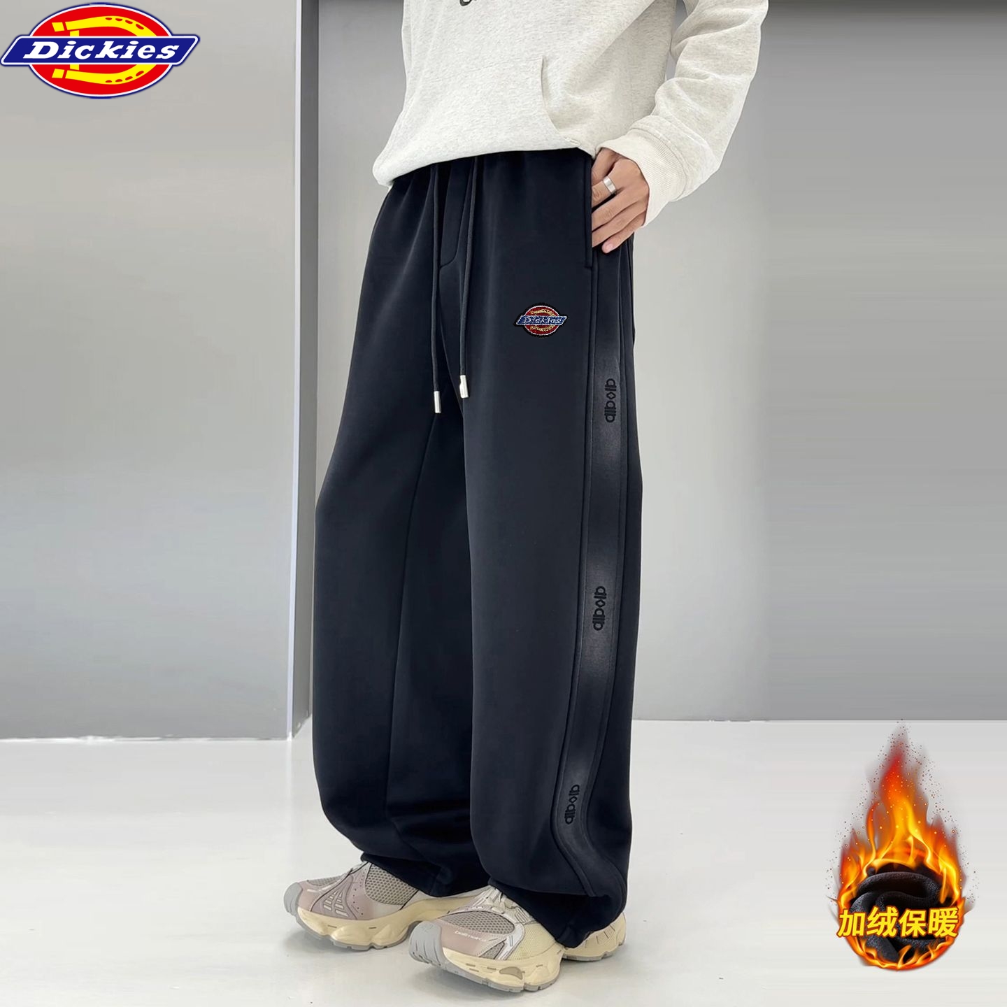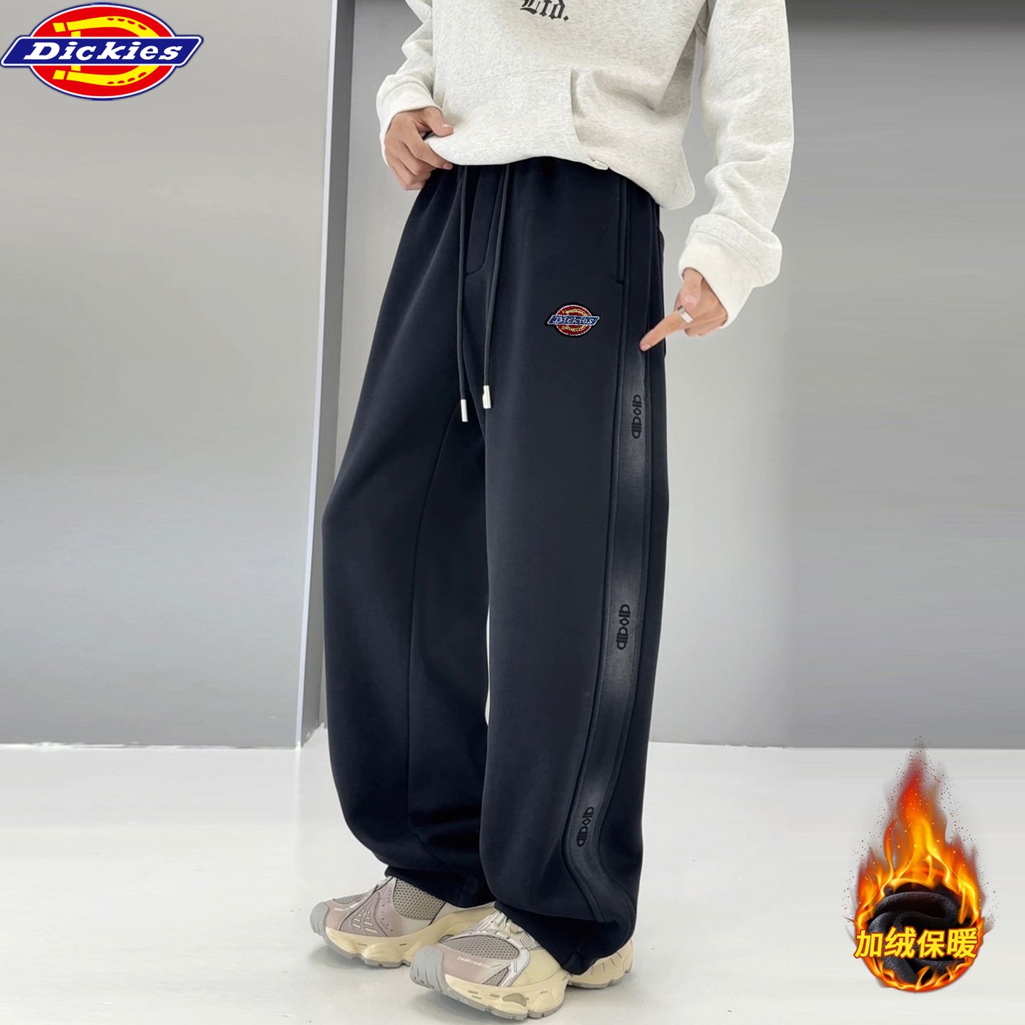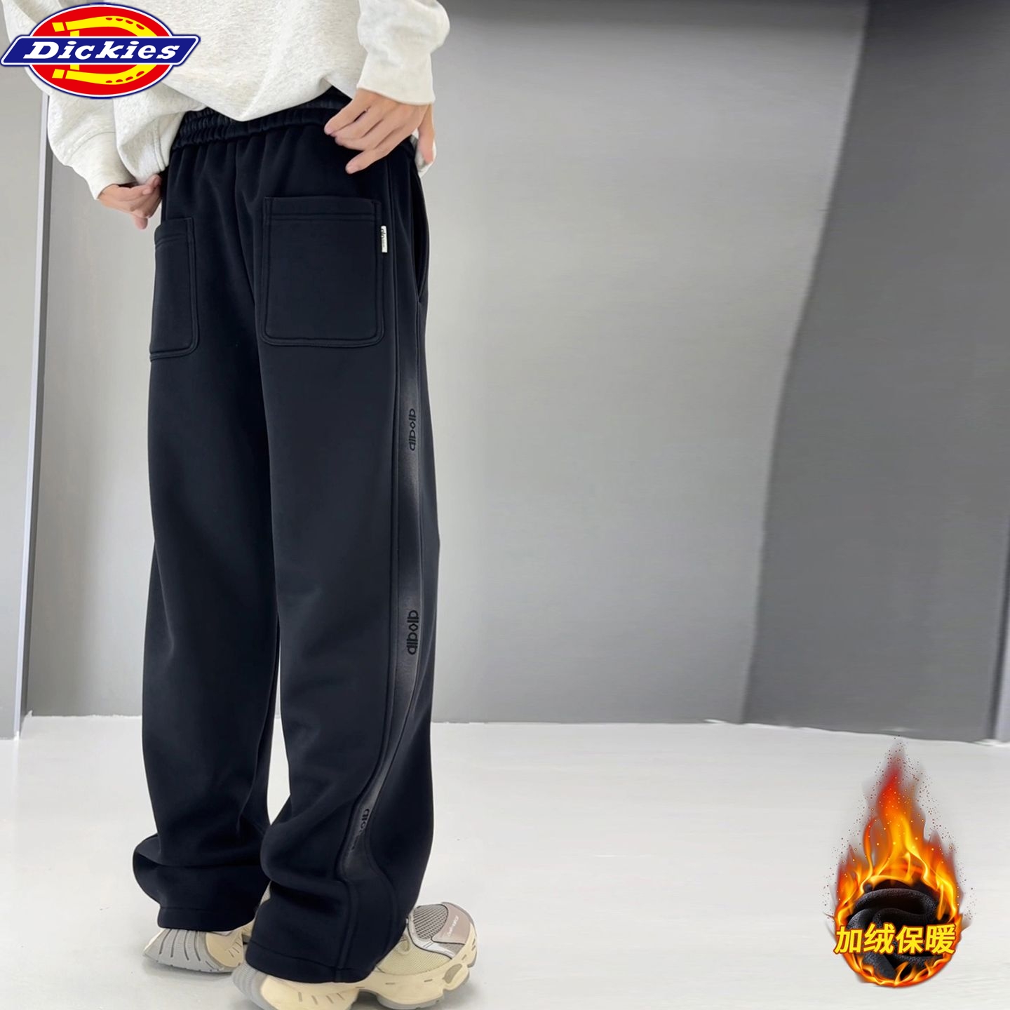 迪克斯Dickies冬季新款 男女同款重磅加绒加厚保暖水洗棉卫裤 弯刀裤男士休闲裤 直筒裤长裤
