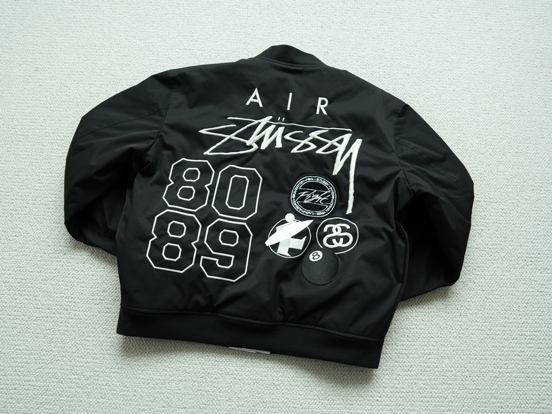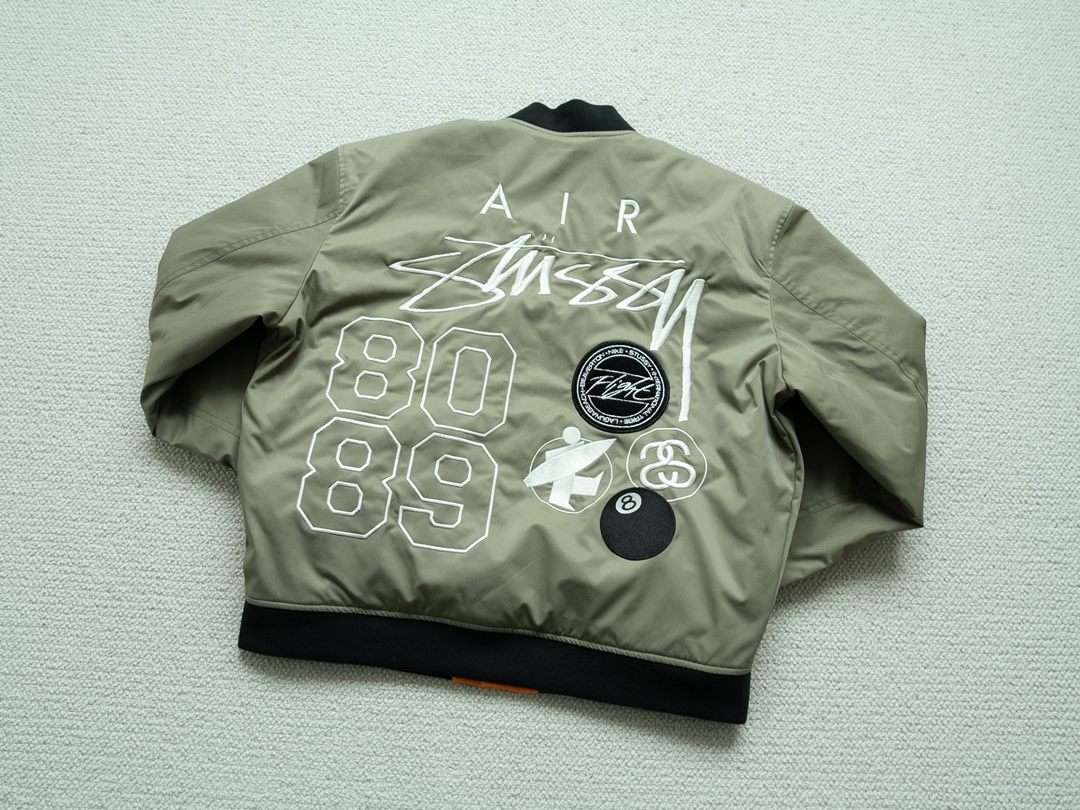 225158473 - 秋冬潮流单品 NK x Stussy 联名刺绣双面穿立领棉衣 329277