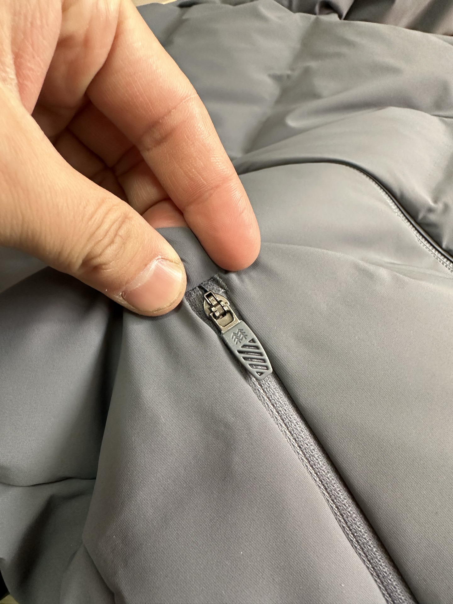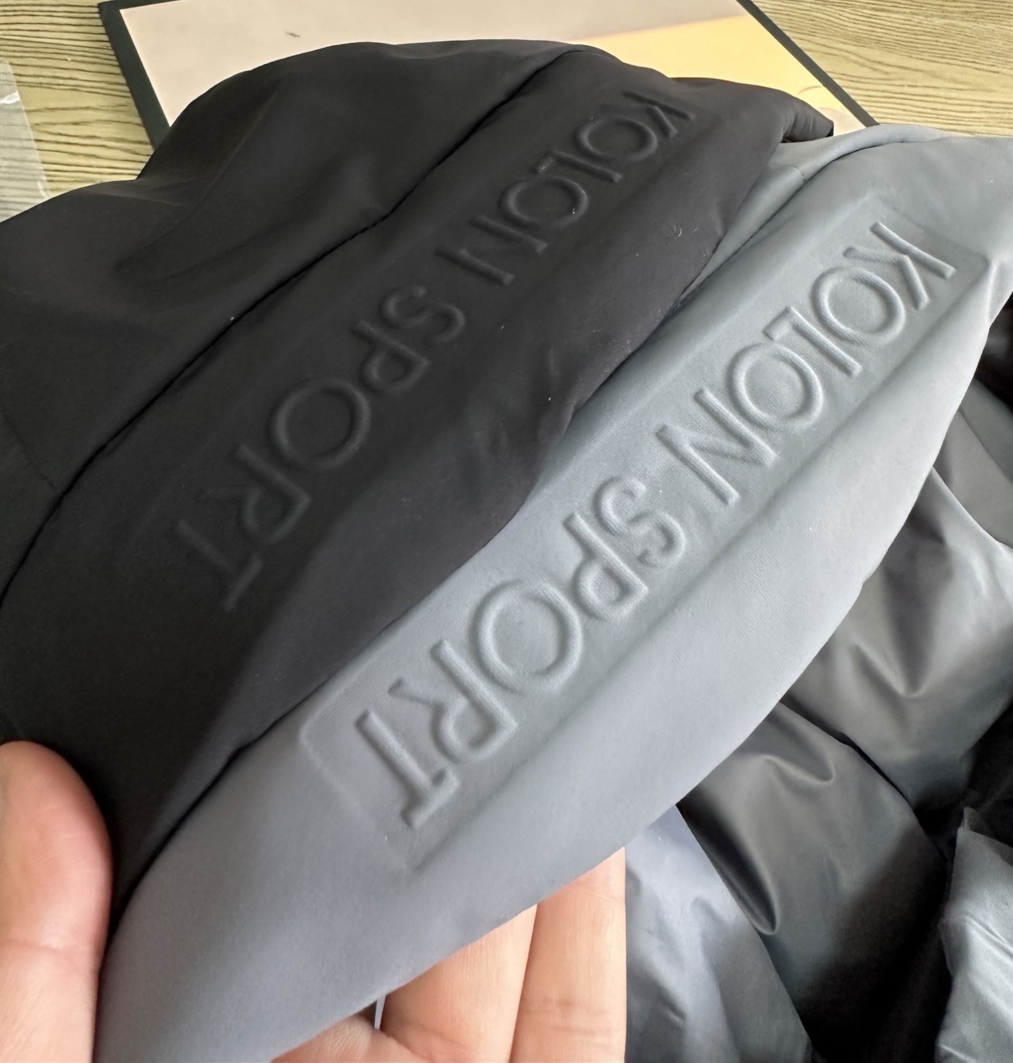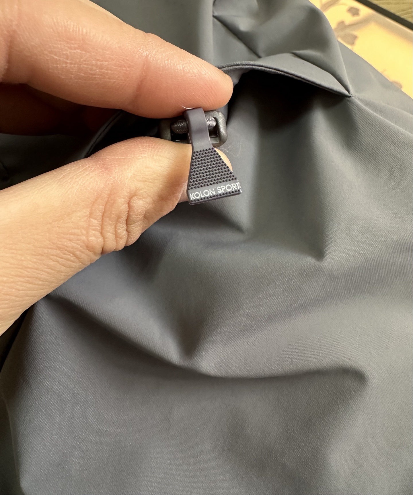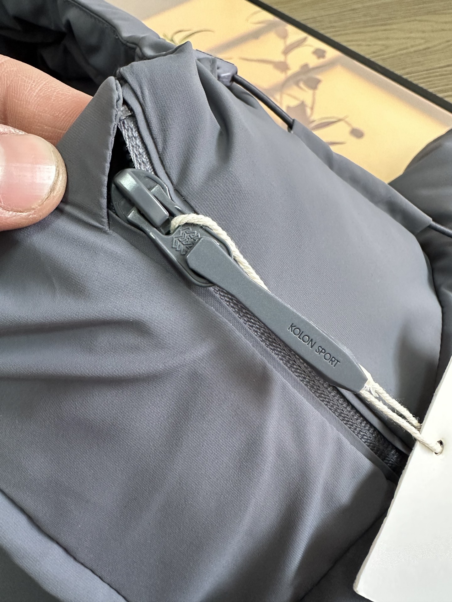 大部分缝线处采用热压处理 美观的同时 减少因缝线产生的钻绒及漏绒现象 帽子外檐采用凸印式KOLON SPORT