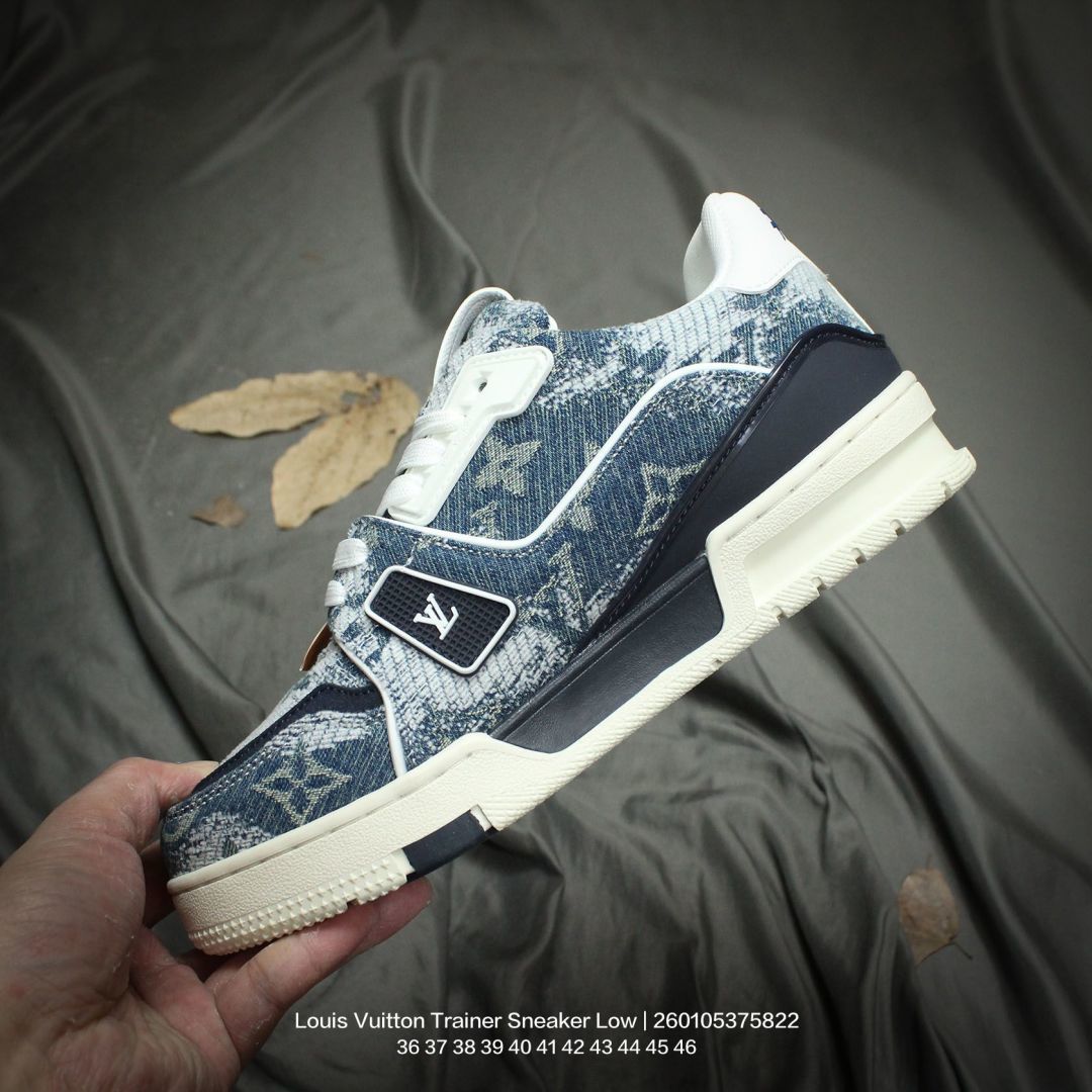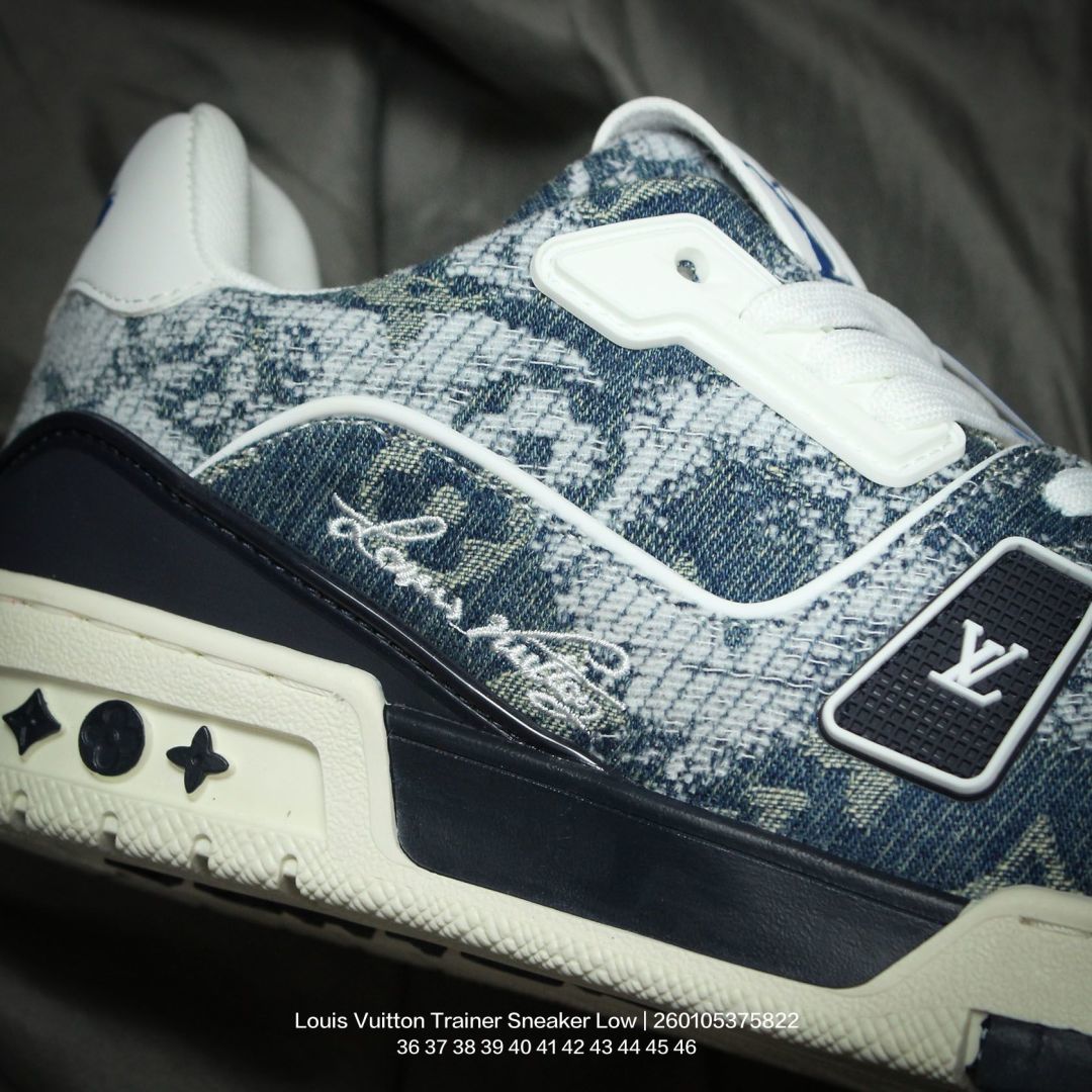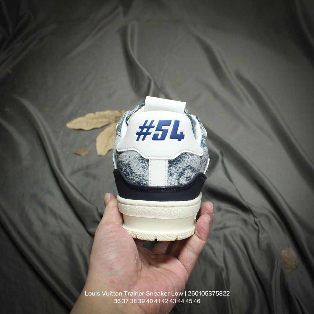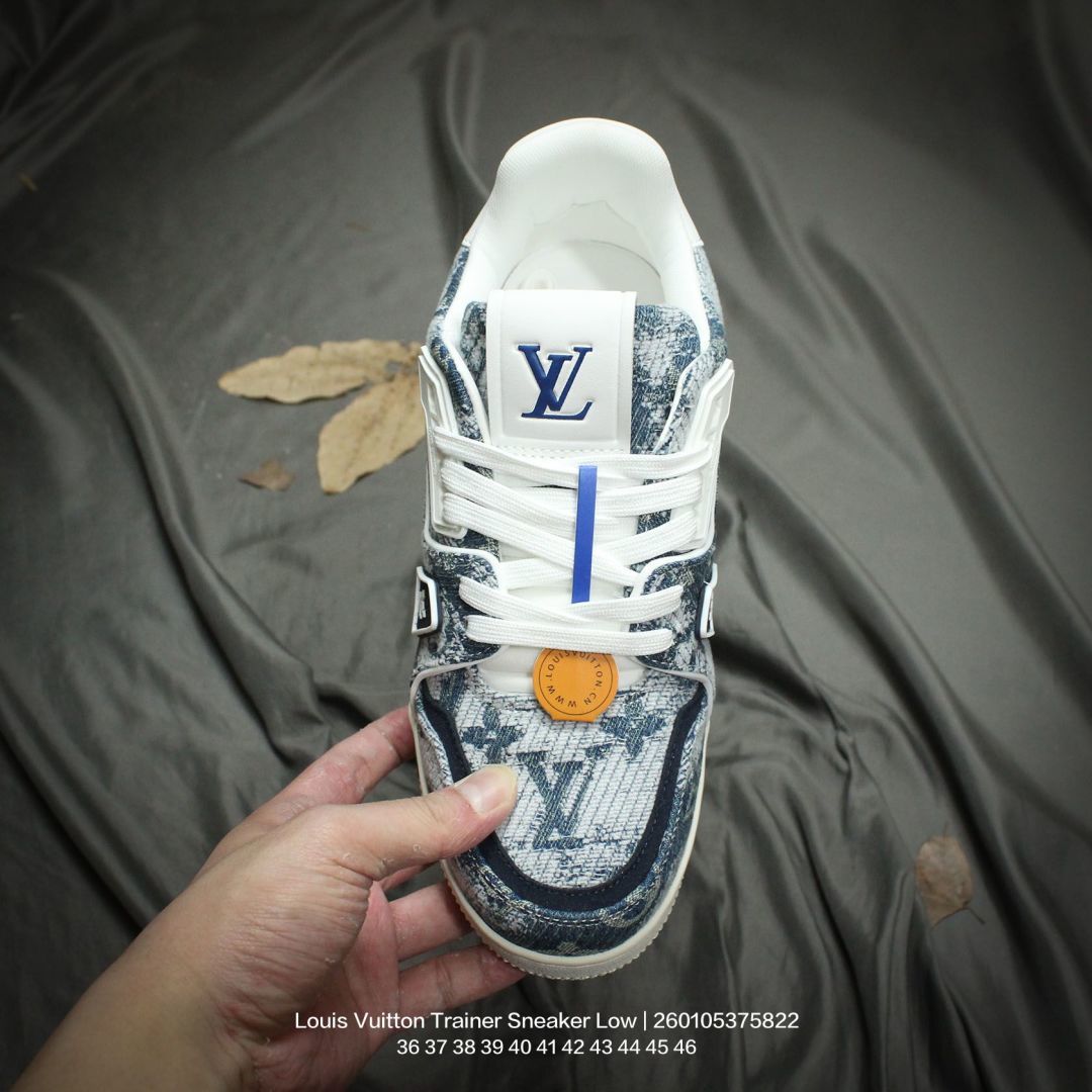 Louis Vuitton 路易威登 男女鞋配置厚实抽屉礼品鞋盒 采用荔枝纹二层牛剖革组合粒面牛剖革鞋面材质 鞋垫嵌入软脚感EVA物料 外置TPR光泽隔色鞋底法国巴黎百年奢侈品牌LV路易威登Louis Vuitton Trainer Sneaker Low 运动系列低帮复古百搭休闲运动文化篮球板鞋