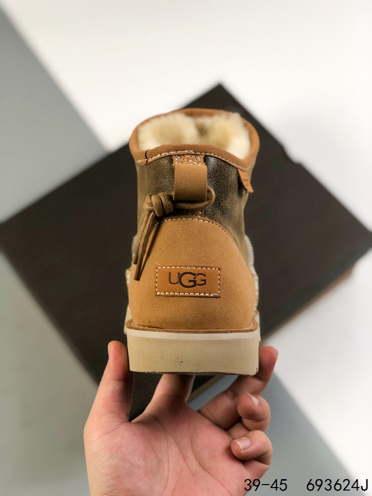 UGG 周冬雨Mini短靴秋冬羊皮毛一体中高帮厚底雪地靴 全鞋采用ZP同厂 隆丰A级澳洲进口羊皮毛一体 品牌代工厂生产线 完全遵循ZP工艺流程 代工厂原厂版师 秉承无原鞋不开发选择 注重每一处细节 市面最正版型 TREADLITE 轻翼 科技外底 轻便 耐用 柔韧 桩型