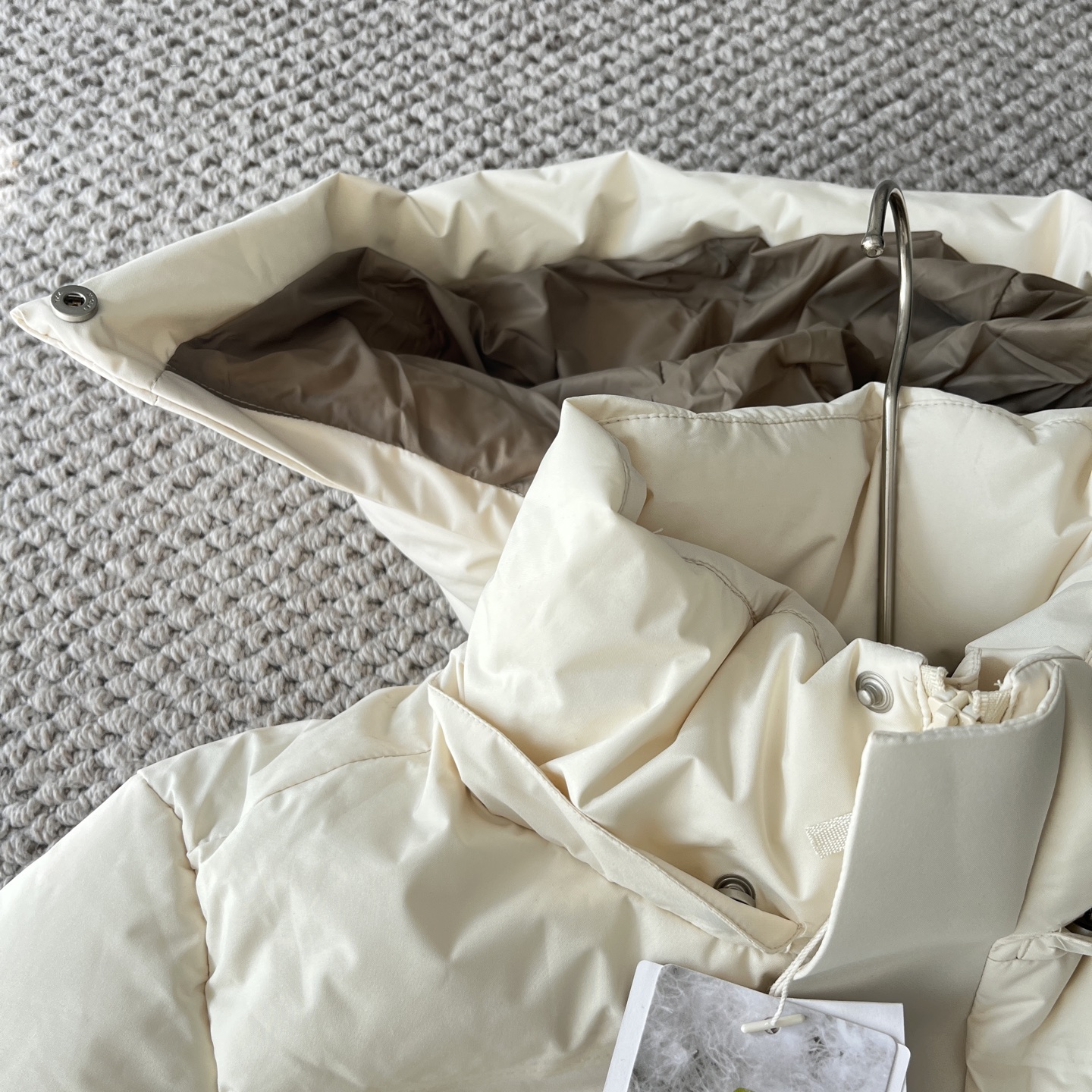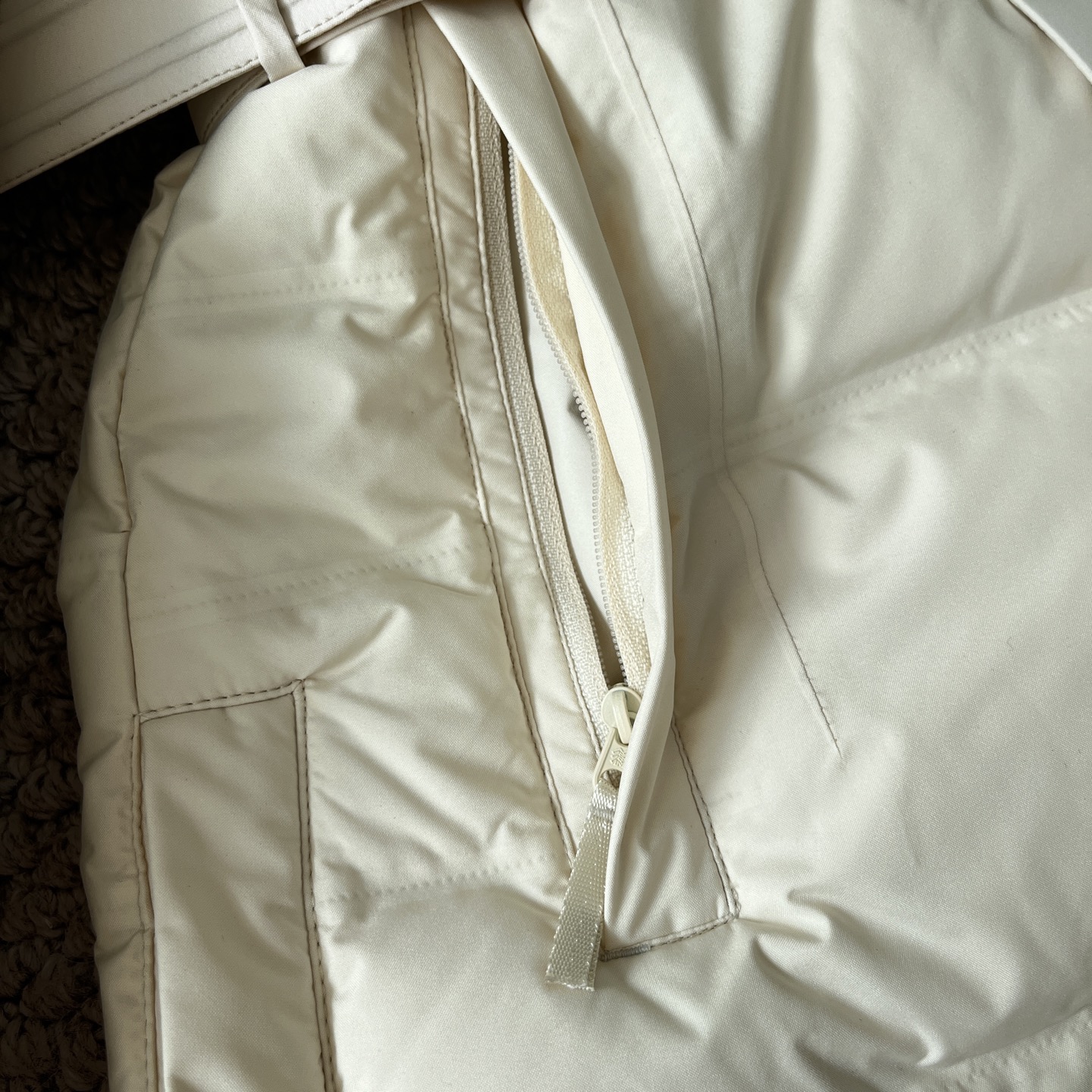 最绝的是版型 中量级鹅绒填充够暖 东北零下几度穿 里面搭薄毛衣就够 但立体压胶做得特别好 不会显臃肿 反而显得肩线超顺 重点是那个腰带 一收腰臀比直接出来了 冷风钻不进去就算了 还能把腰显出来 冬天终于不用藏着掖着了
