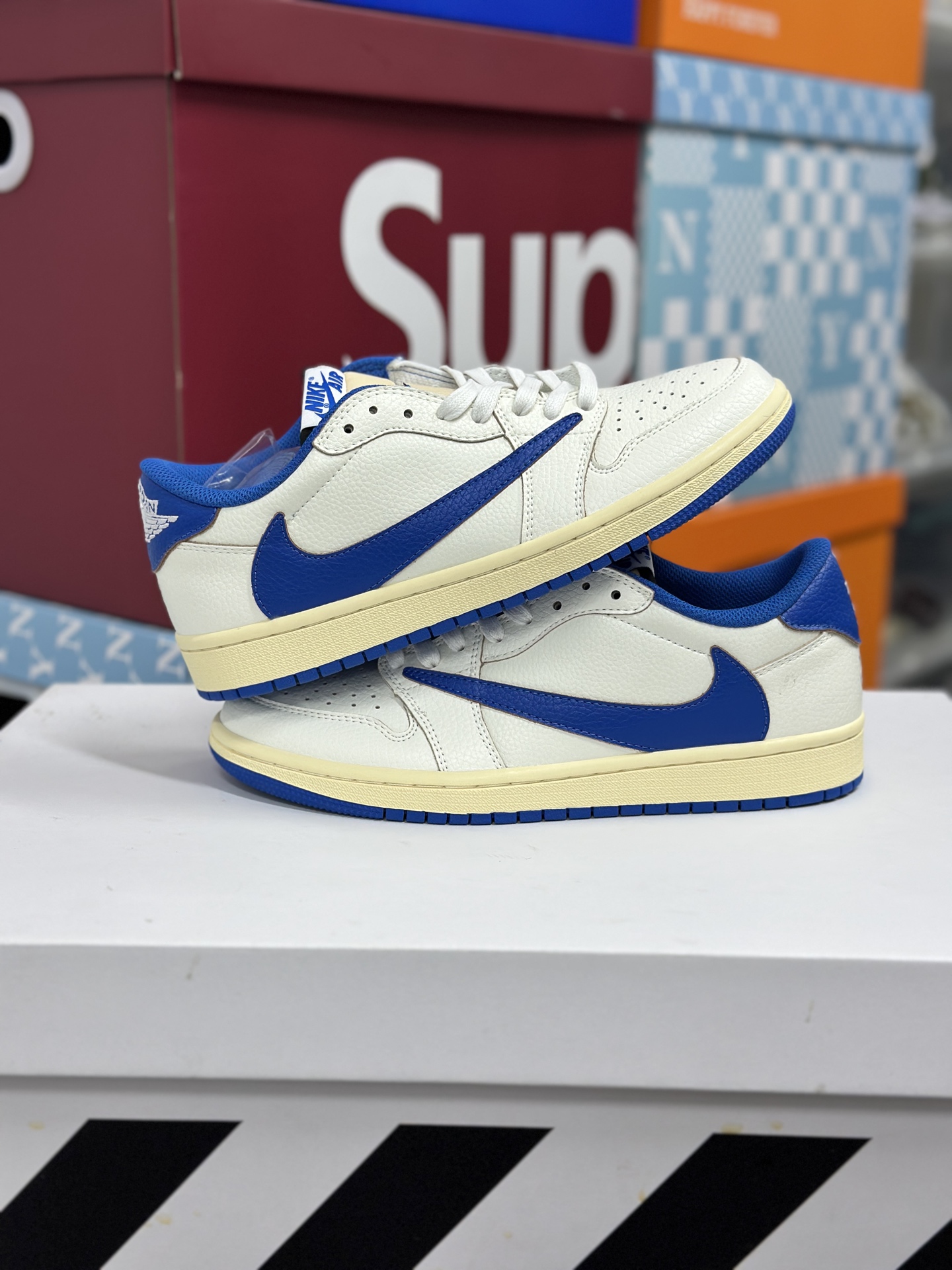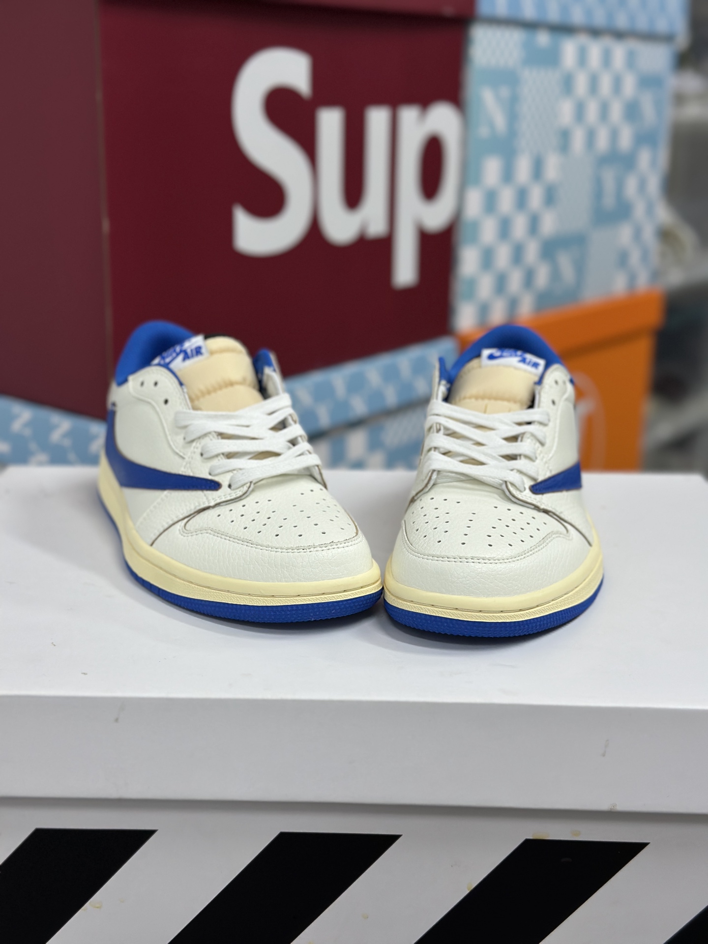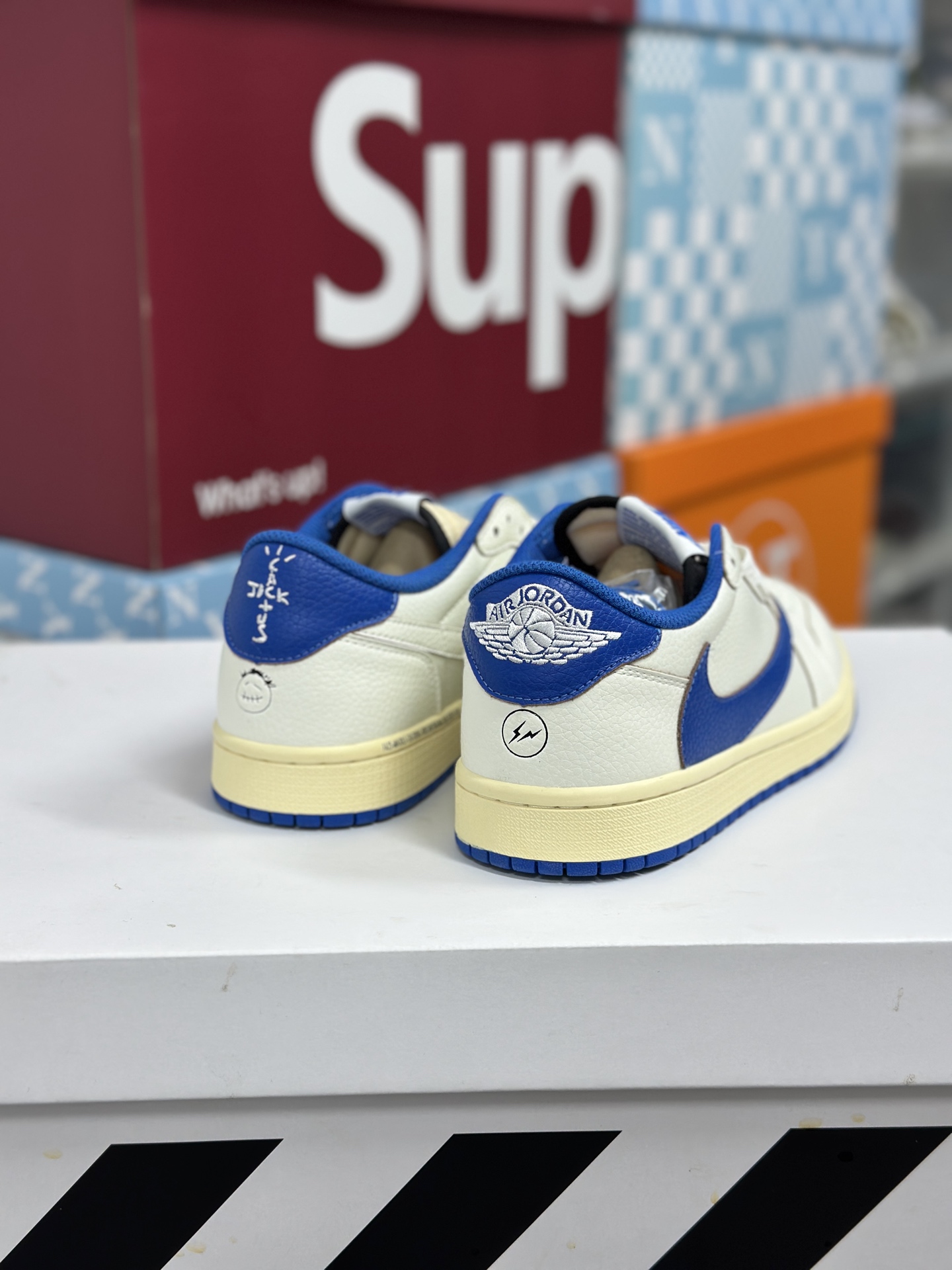Travis Scott x Fragment Design x Jordan Air Jordan 1 Low OG SP 倒钩 三方联名闪电 低帮 篮球鞋 男女同款 白蓝