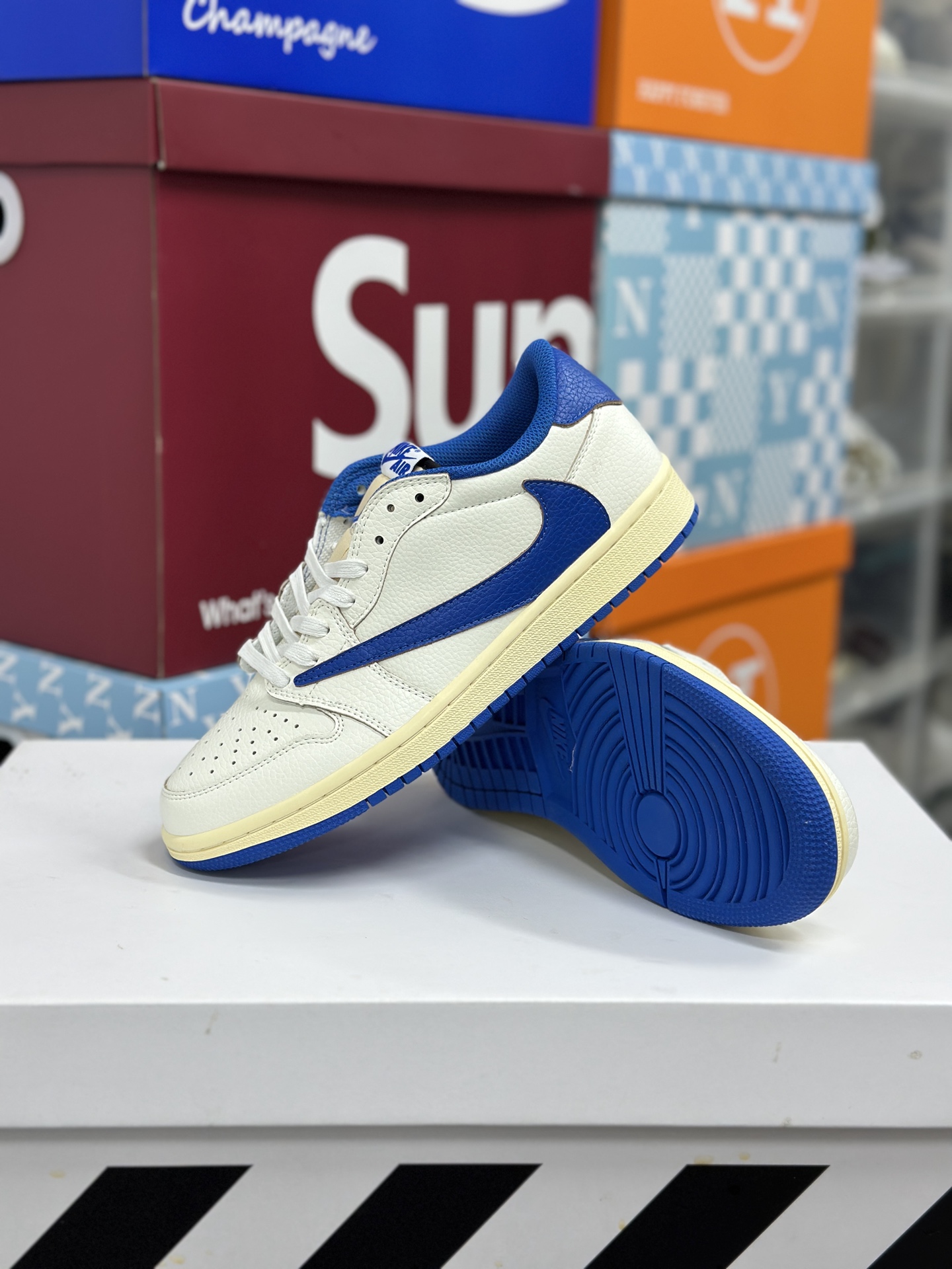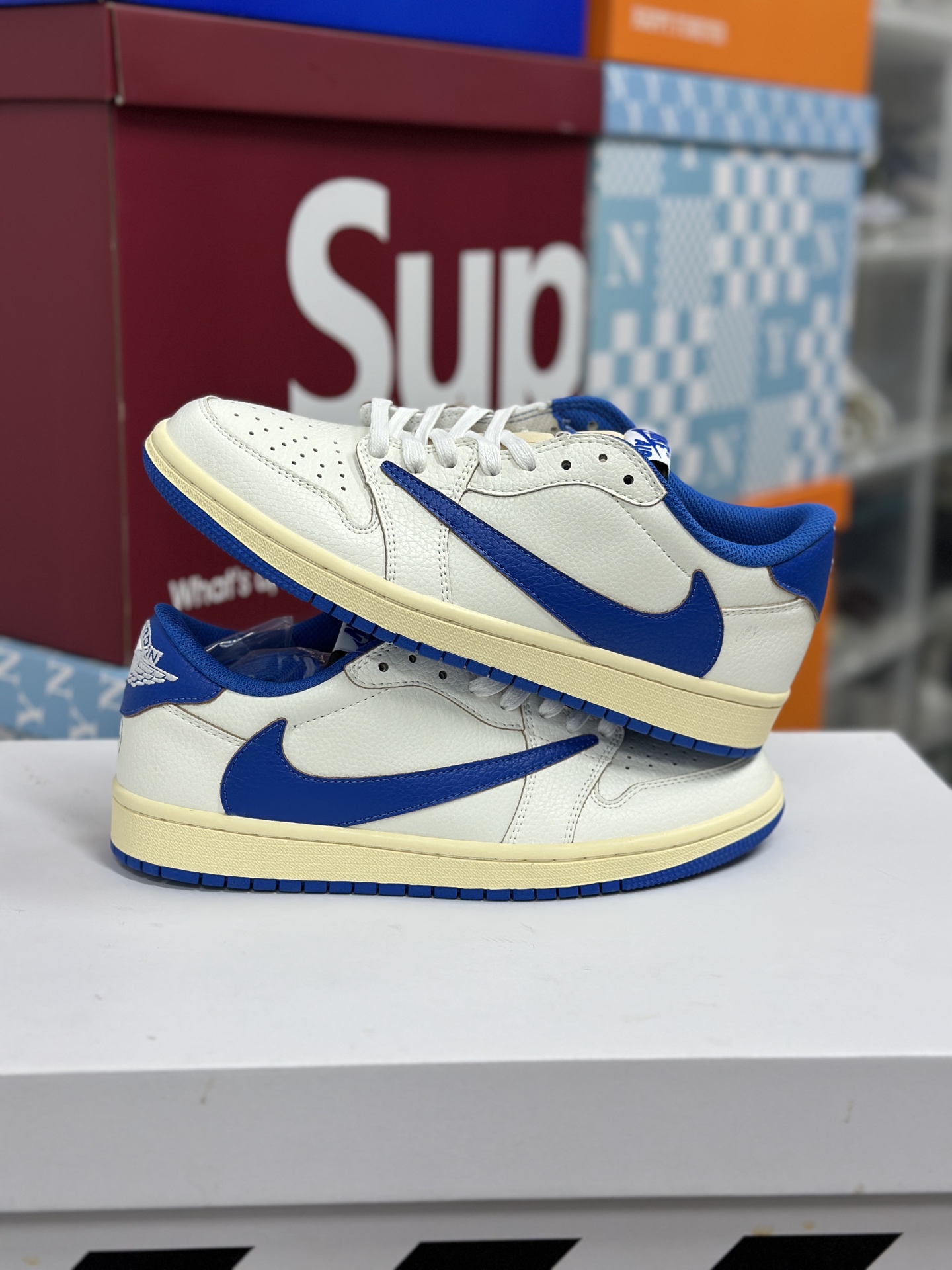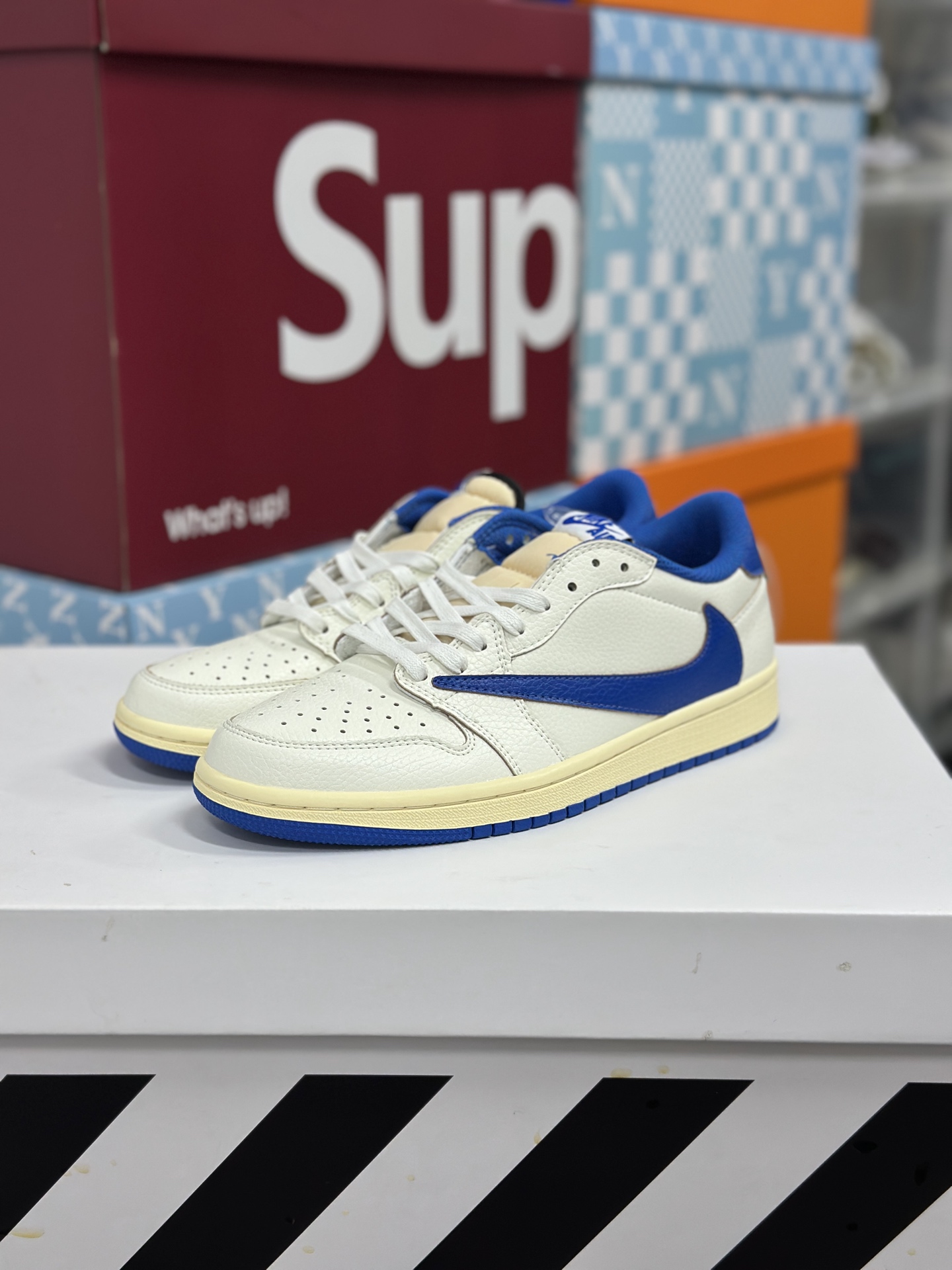 Travis Scott x Fragment Design x Jordan Air Jordan 1 Low OG SP 倒钩 三方联名闪电 低帮 篮球鞋 男女同款 白蓝