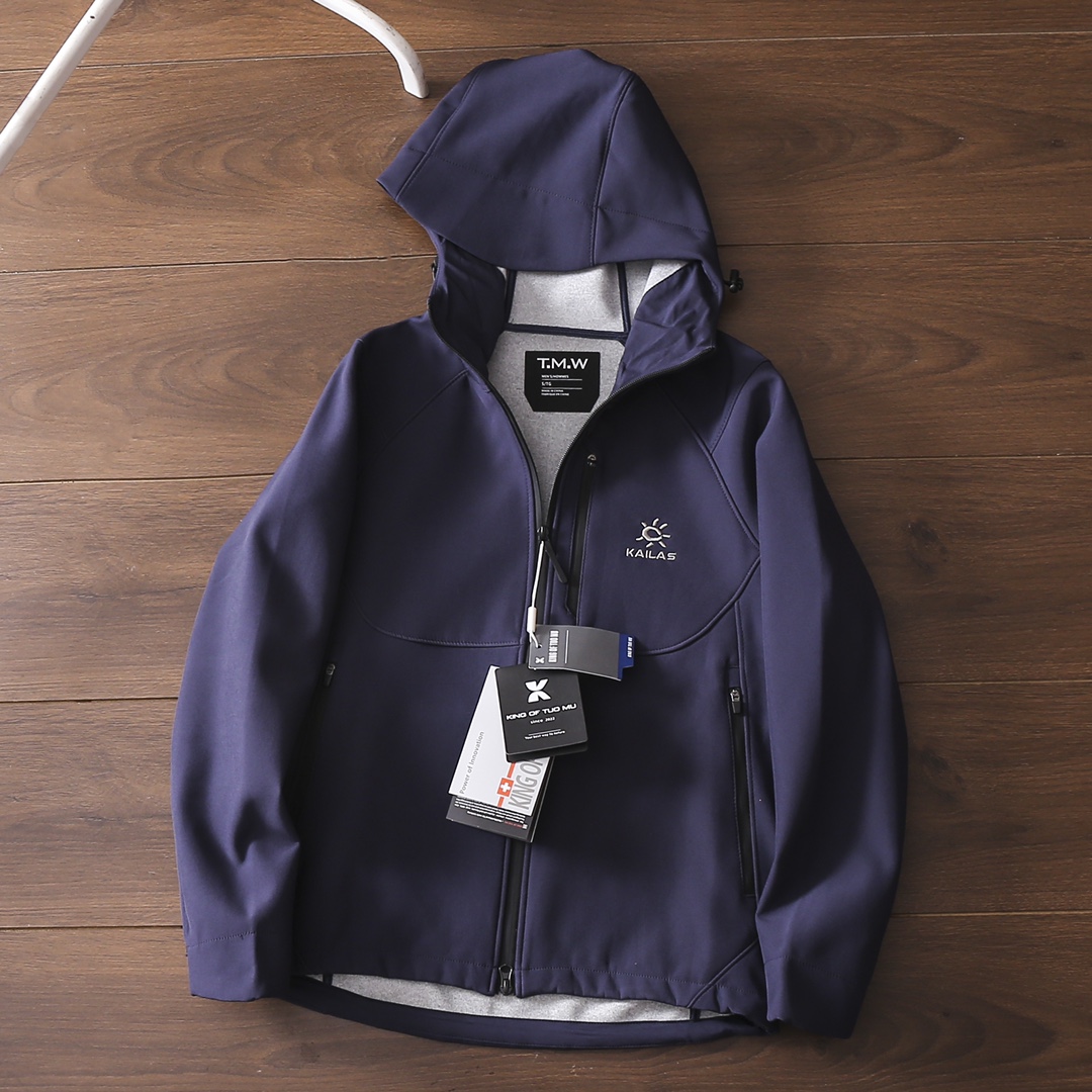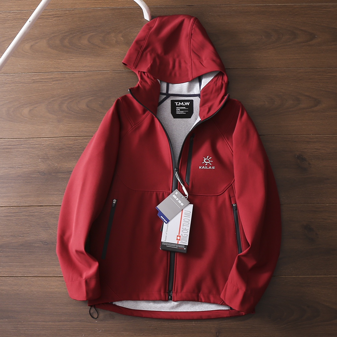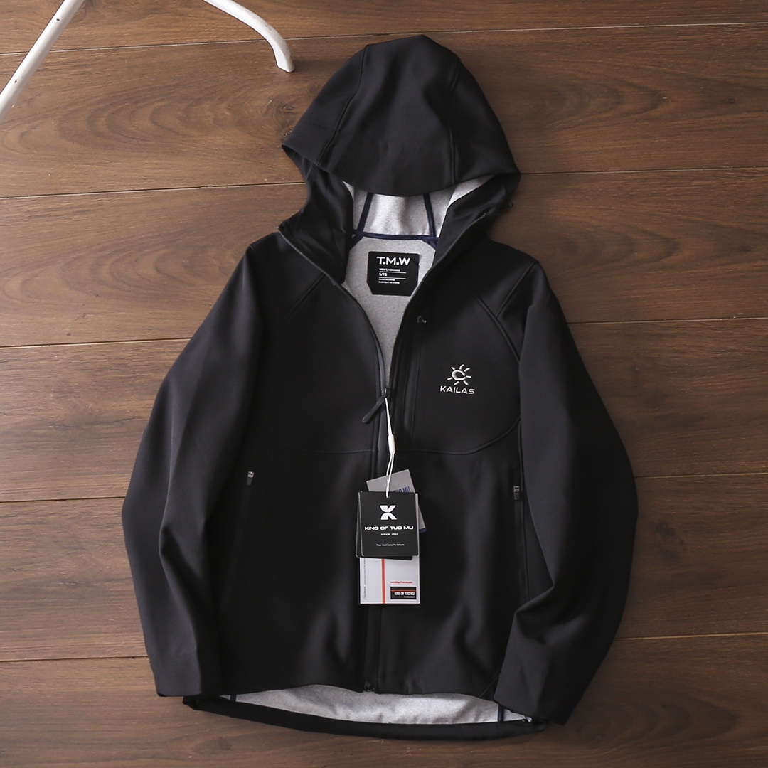严选好货 凯乐石Kaillas新款男女连帽冲锋衣夹克外套 户外休闲都可驾驭 客供软壳科技防风防水面料 耐磨耐穿 舒适保暖 3D立体裁剪版型 胸前拉链口袋设计 重工小标logo刺绣 精致饱满 拼接弹力袖口 双开拉链门襟 内里包边包条 做工细节都无可挑剔 上身效果一级棒 可配情侣 喜欢的不要错过 颜色 米白色 黑色 深蓝色 灰绿色 红色 尺码 S一4XL