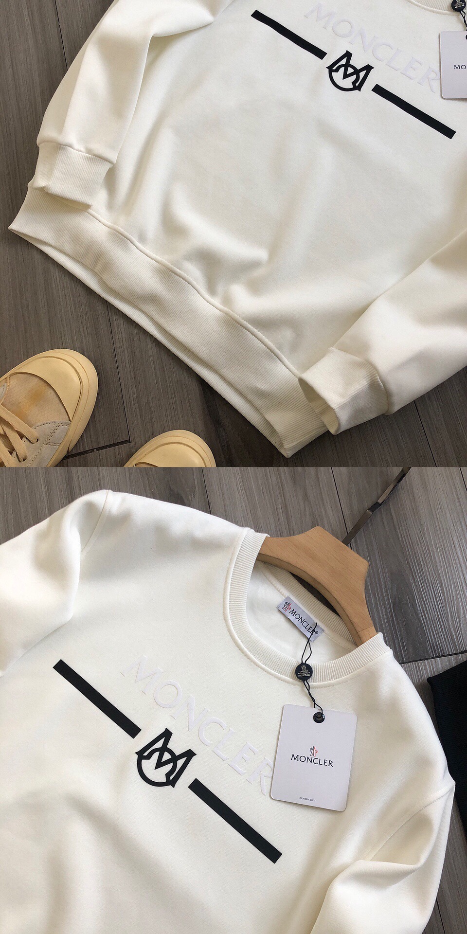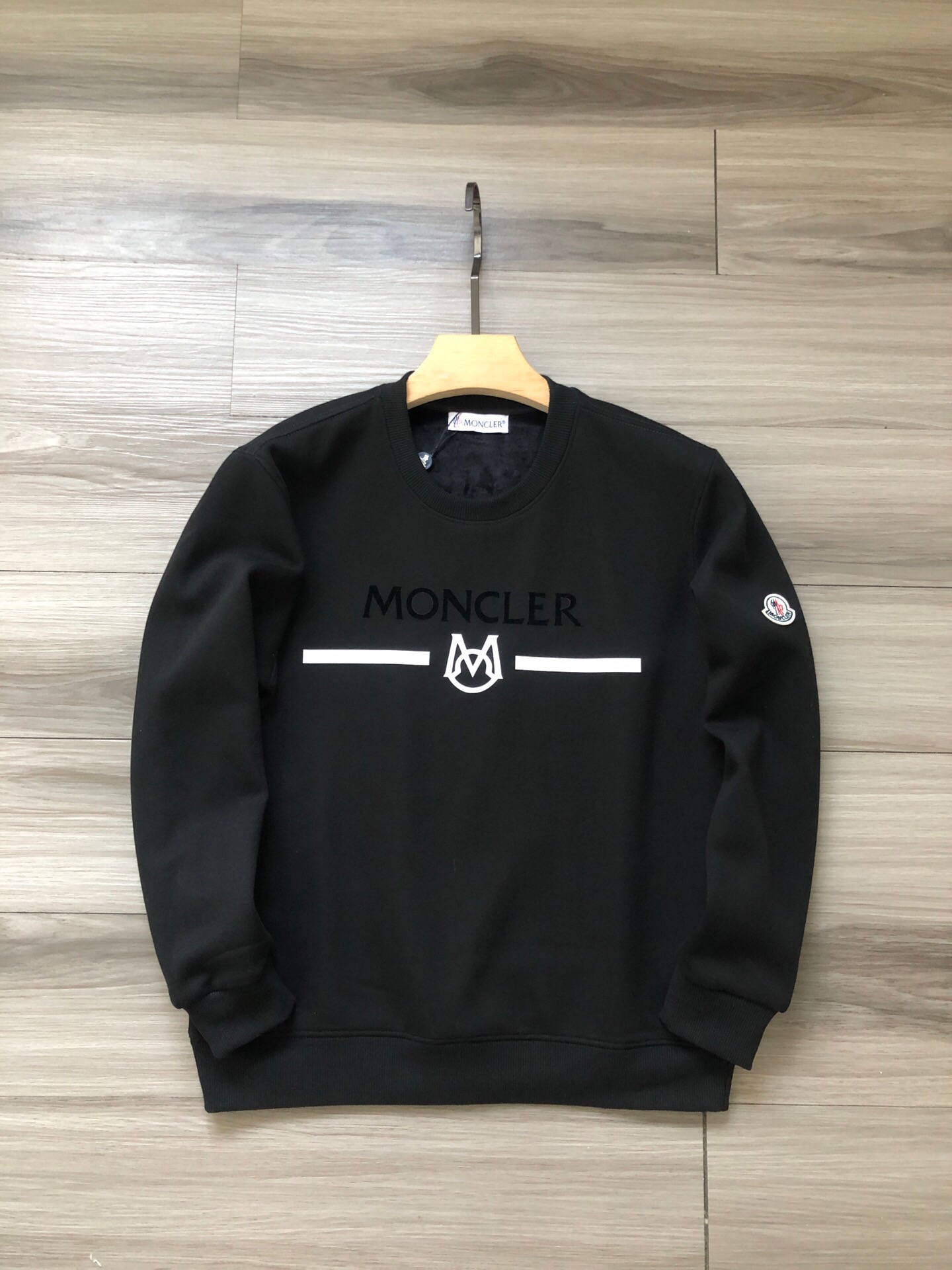 Moncler 蒙口 手臂徽标字母logo胶印植绒男女款加绒圆领卫衣
