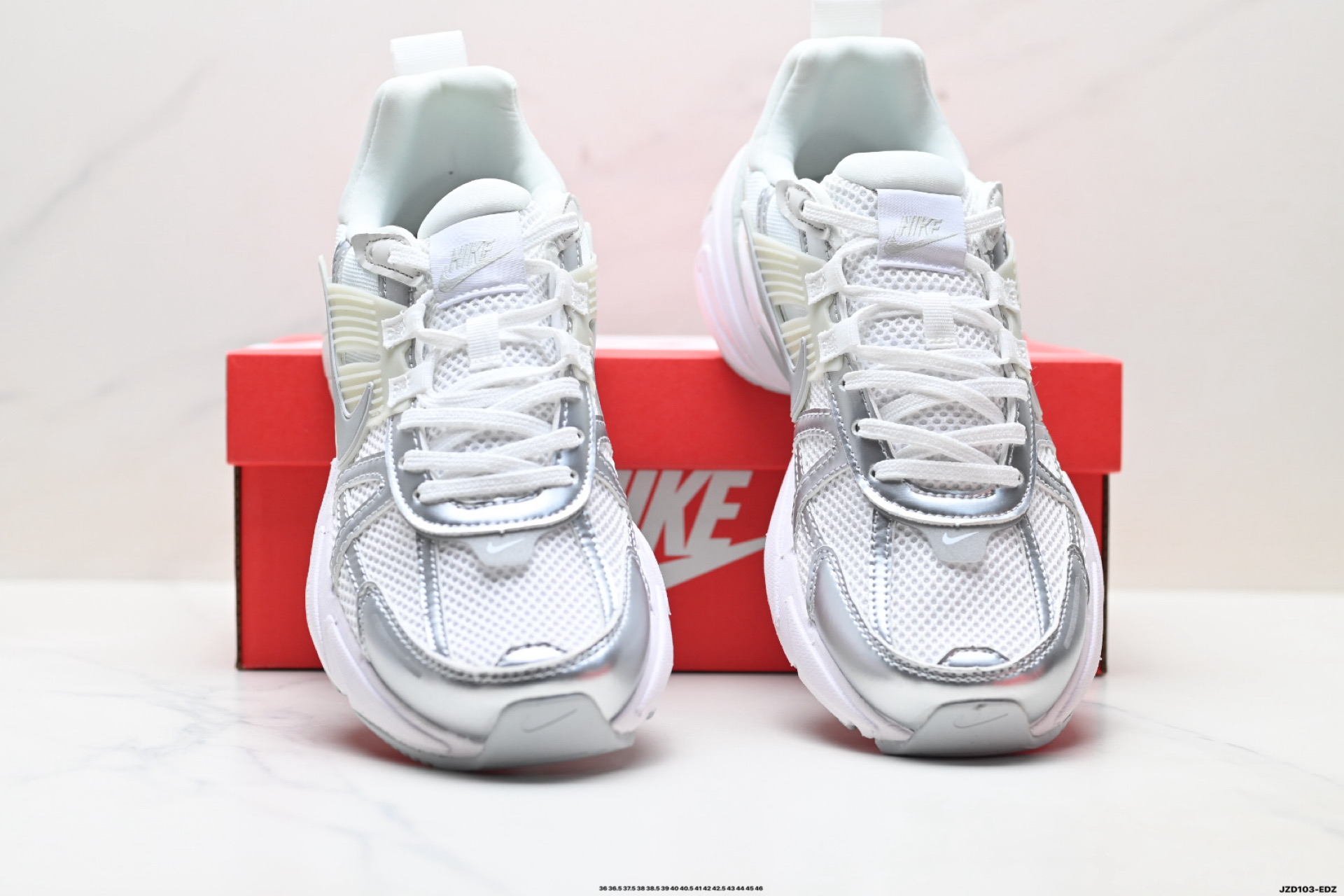 公司级耐克NIKE V2K RUN跑步鞋复古风潮 网面透气运动鞋 灰银紧致的鞋面材质提供良好的包裹性鞋侧 Swoosh以及鞋头部分搭配增添不少亮点的镀铬细节鞋垫上印有Bill Bowerman头像 将细节拉满中底饰有独特的做旧效果 最后搭载黑色外底凸显整双鞋的复古气质