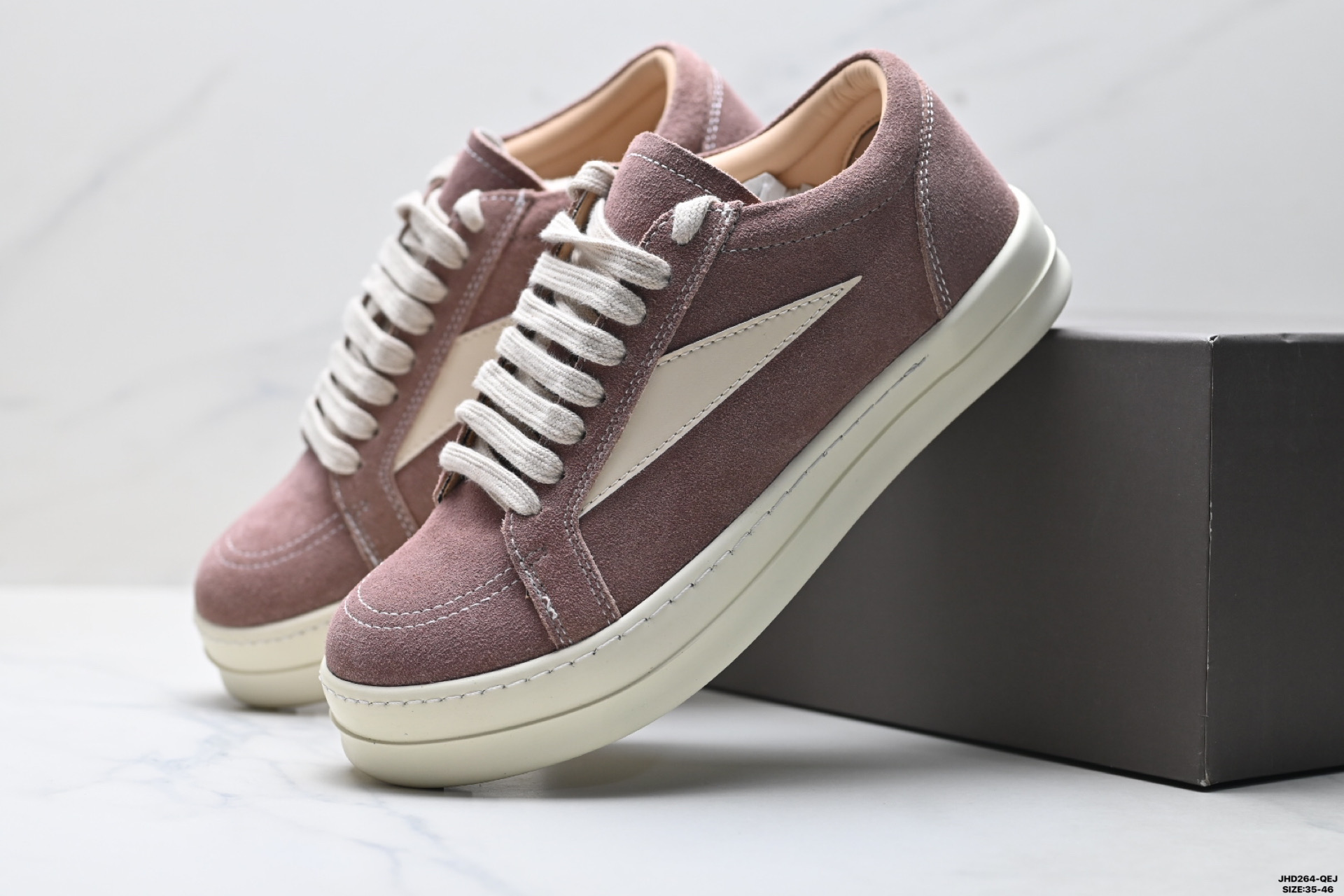公司级Rick Owens Drkshdw 瑞克 欧文斯时尚运动板鞋 原楦开发纸版版型 ZP拆解原版1 1复模裁片纸版 力求做到0错位 这样才能达到和zp一致的鞋型味道 采用进口cnc数控机床开发对版独家tpu奶香大底 区别于市场所有版本 zp同源定制尼龙布 达到和zp一致手感 原厂进口细纹布 万邦订购原厂高弹粉红色海绵 内里搭配软质细腻羊皮 TPU高密度大底 软硬度透光度高已经测试和原版一致