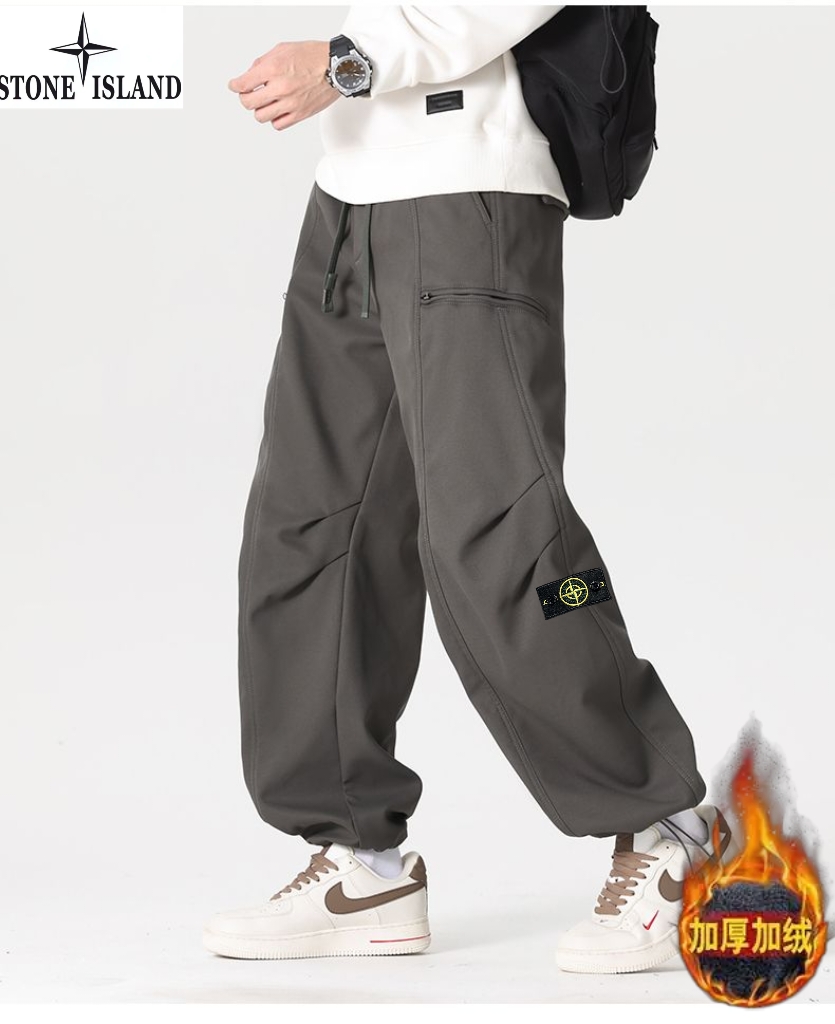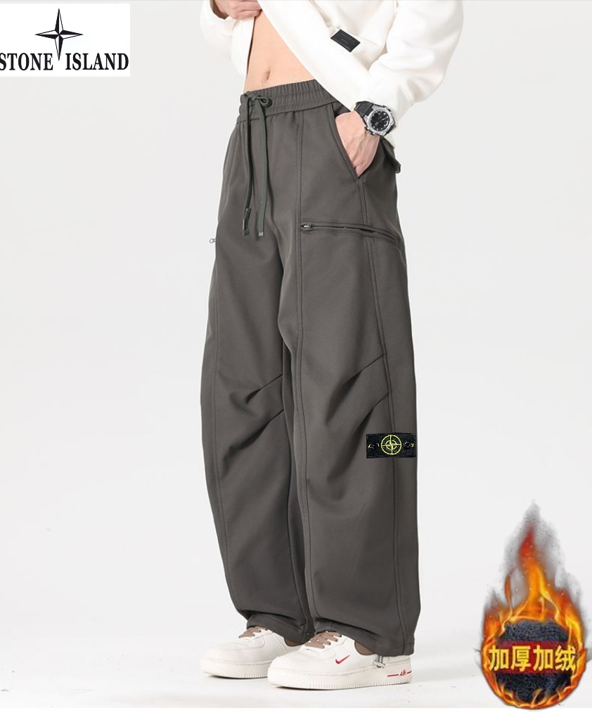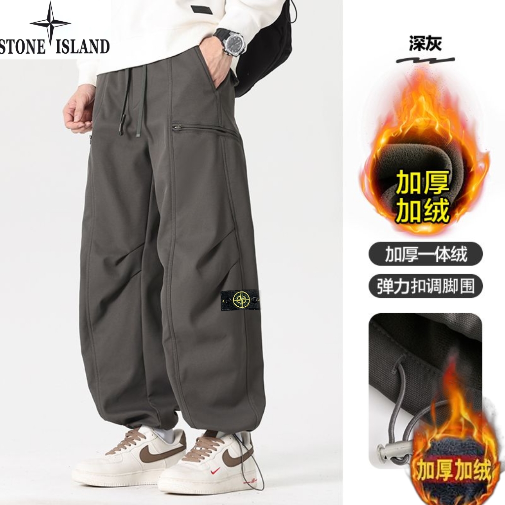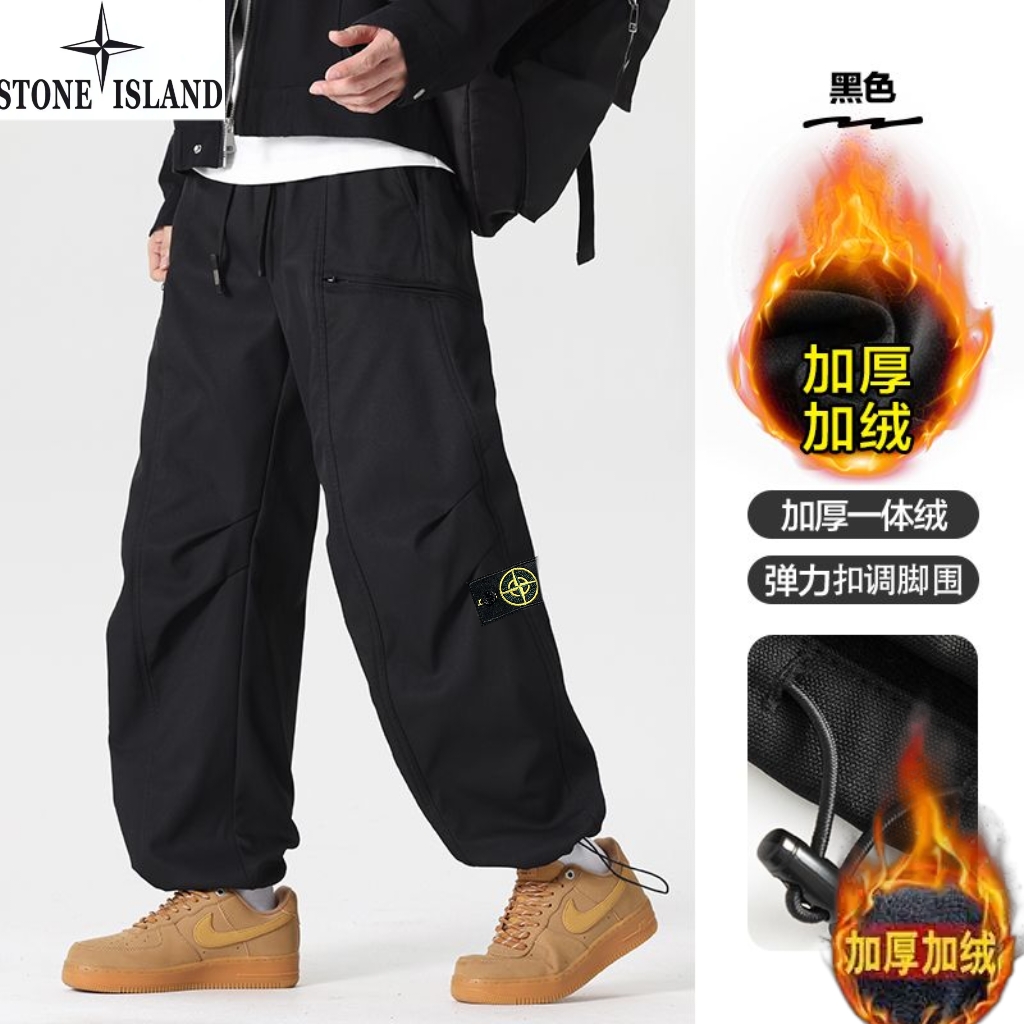 石头岛Stone island冬季新款 男士松紧腰抽绳加绒加厚户外工装裤 男士运动休闲两穿裤 束脚裤 美式潮流直筒裤长裤