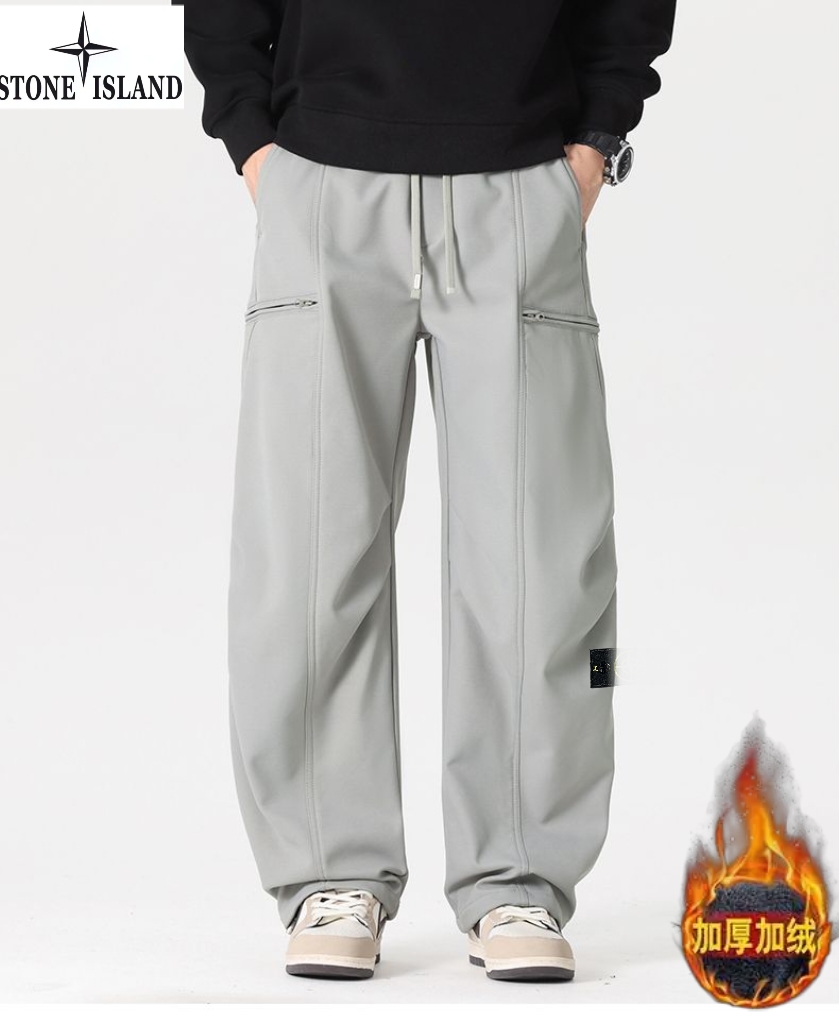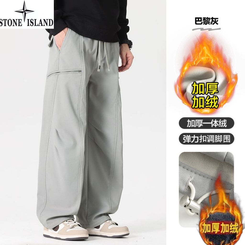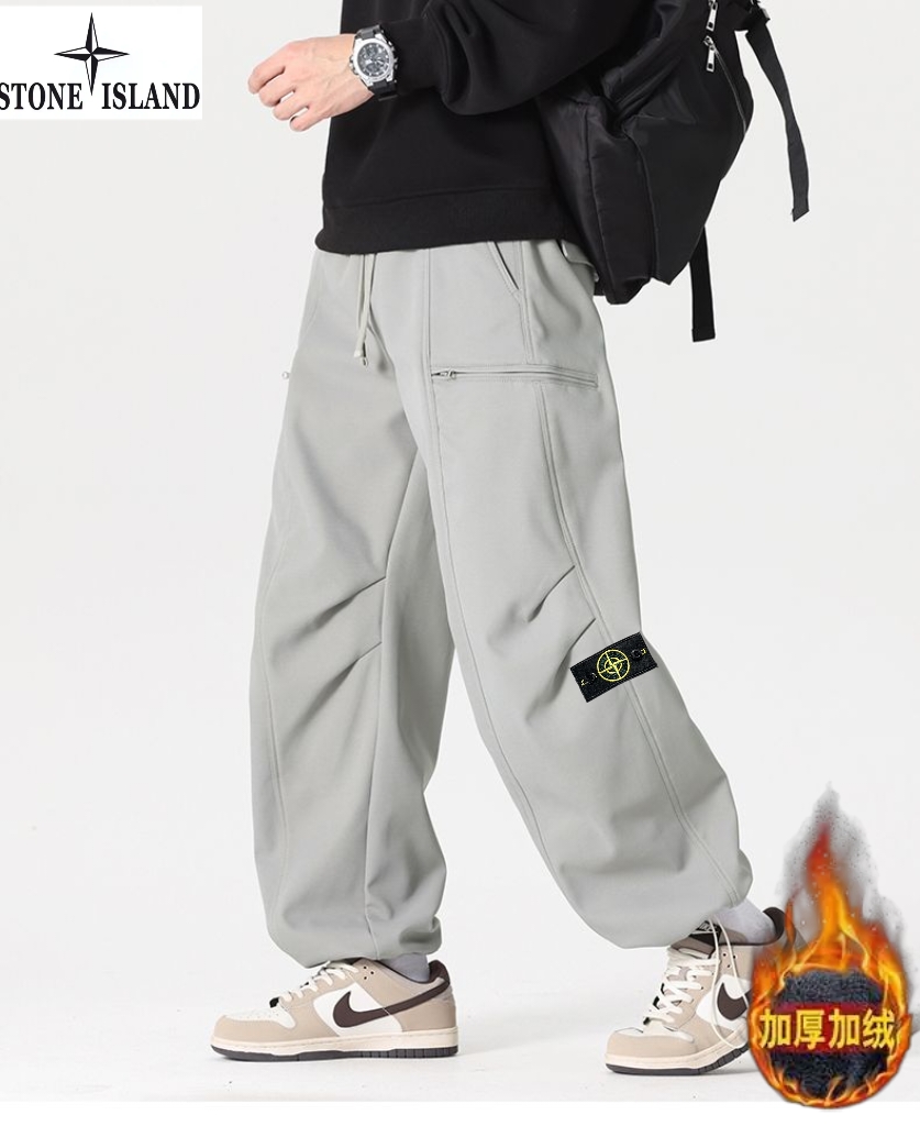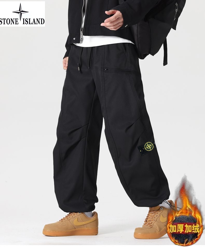 石头岛Stone island冬季新款 男士松紧腰抽绳加绒加厚户外工装裤 男士运动休闲两穿裤 束脚裤 美式潮流直筒裤长裤