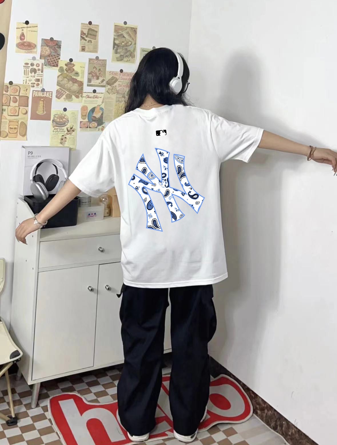MLB YANKEES NY卡通彩绘圆领短袖半袖T恤 面料采用260克纯棉双纱食毛面料 双线二本针压线 久洗不变形 原版定制三标 高端进口印花 随意水洗 情侣可穿 男女同款 黑色 白色 深灰色 M XL M 衣长70肩宽51胸围112 L 衣长72 肩宽54胸围116 XL衣长74肩宽57胸围120