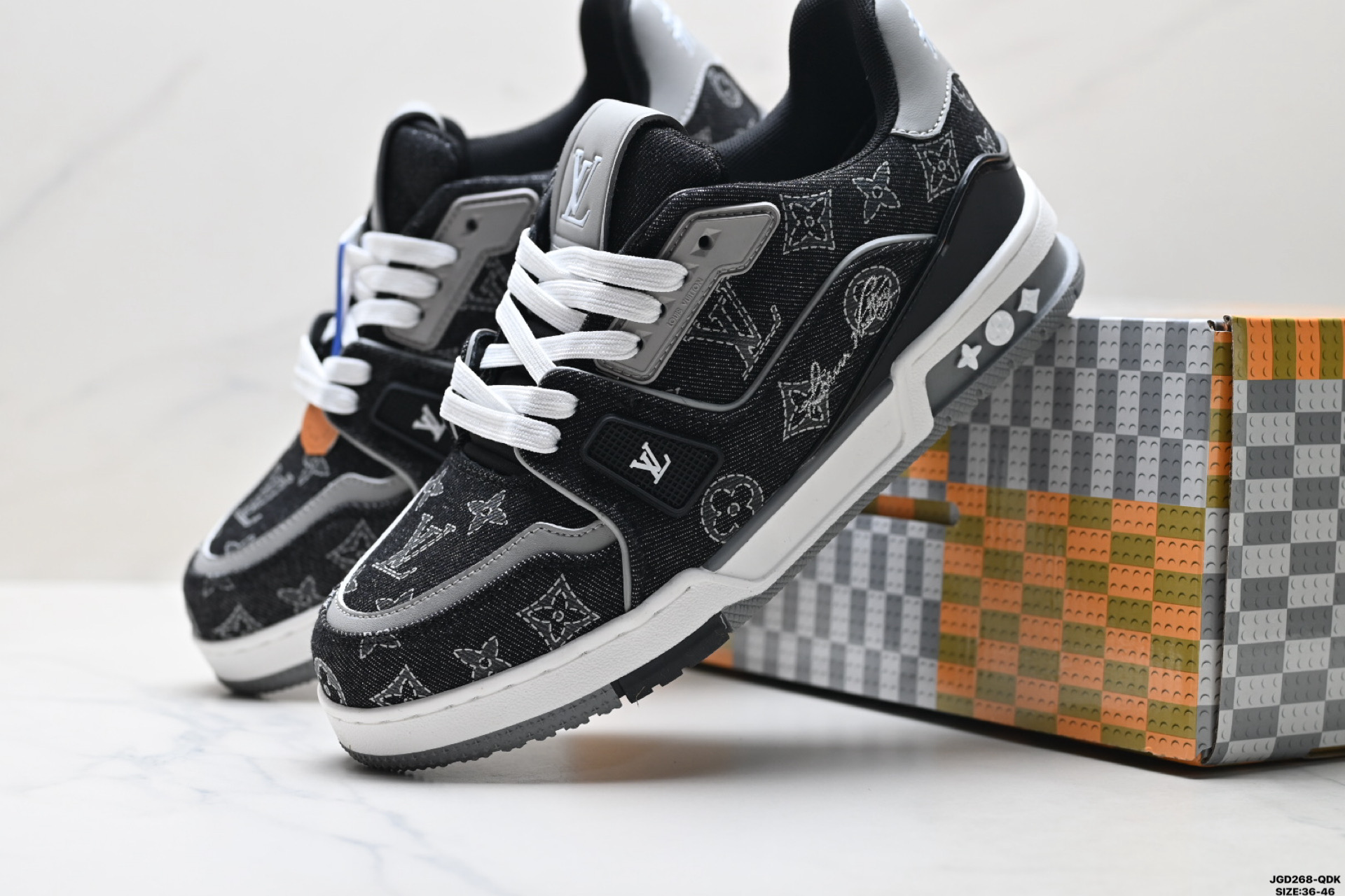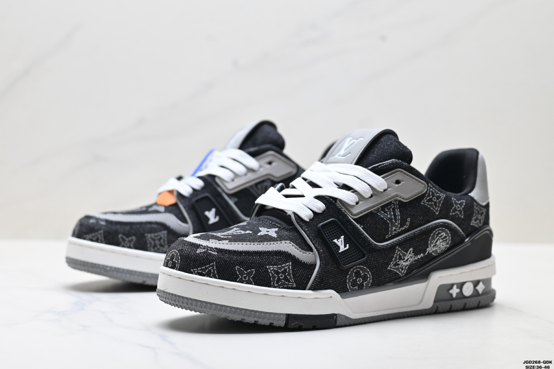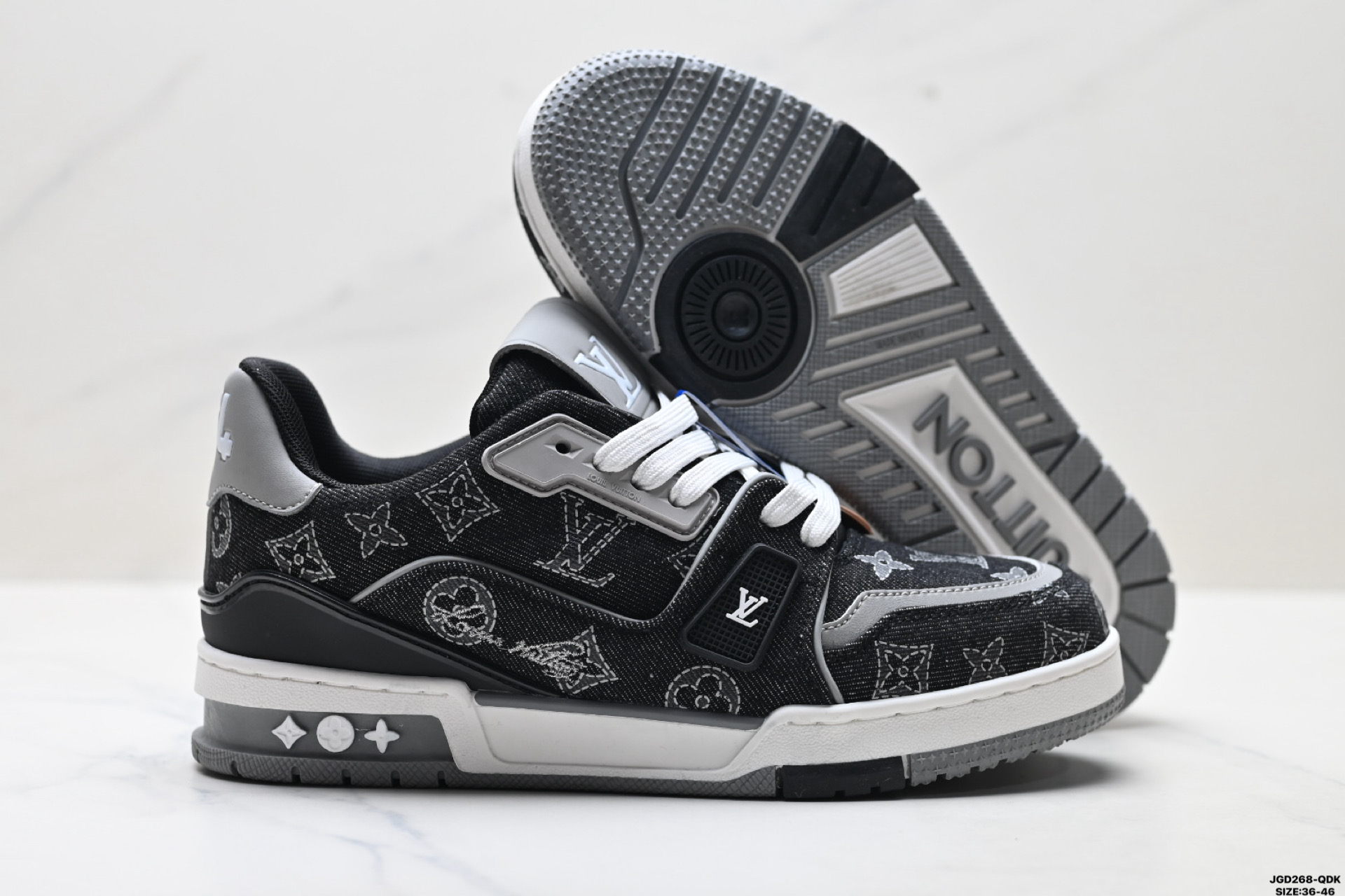 公司级Louis vuitton Trainer Sneaker Low 路易威登 休闲运动文化百搭板鞋 舒适防滑底和百搭性霸屏整个时尚娱乐圈 细节调整完美主义 鞋面采用柔软皮革鞋面 独家开模大底 侧边采用3D打印标志性Logo 尽显贵族时尚气息 配带正品全套包装 尺码 36 46 ID JGD268 QDK