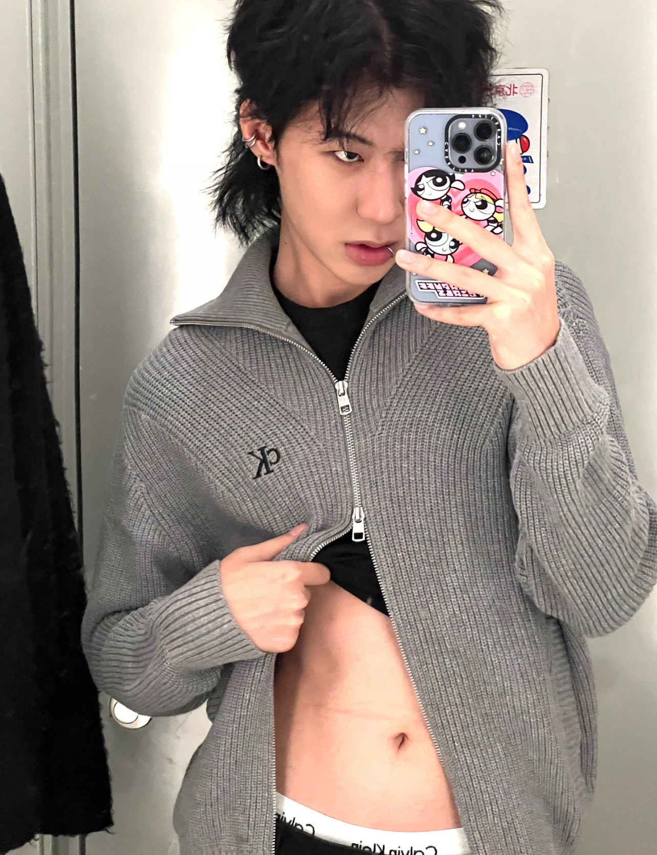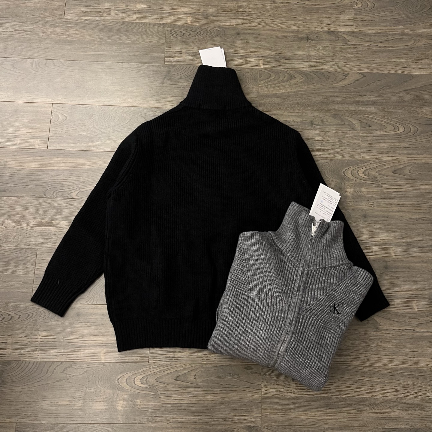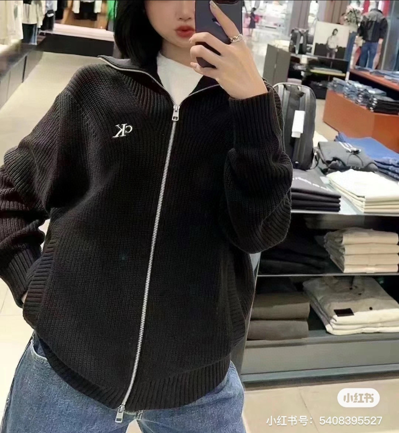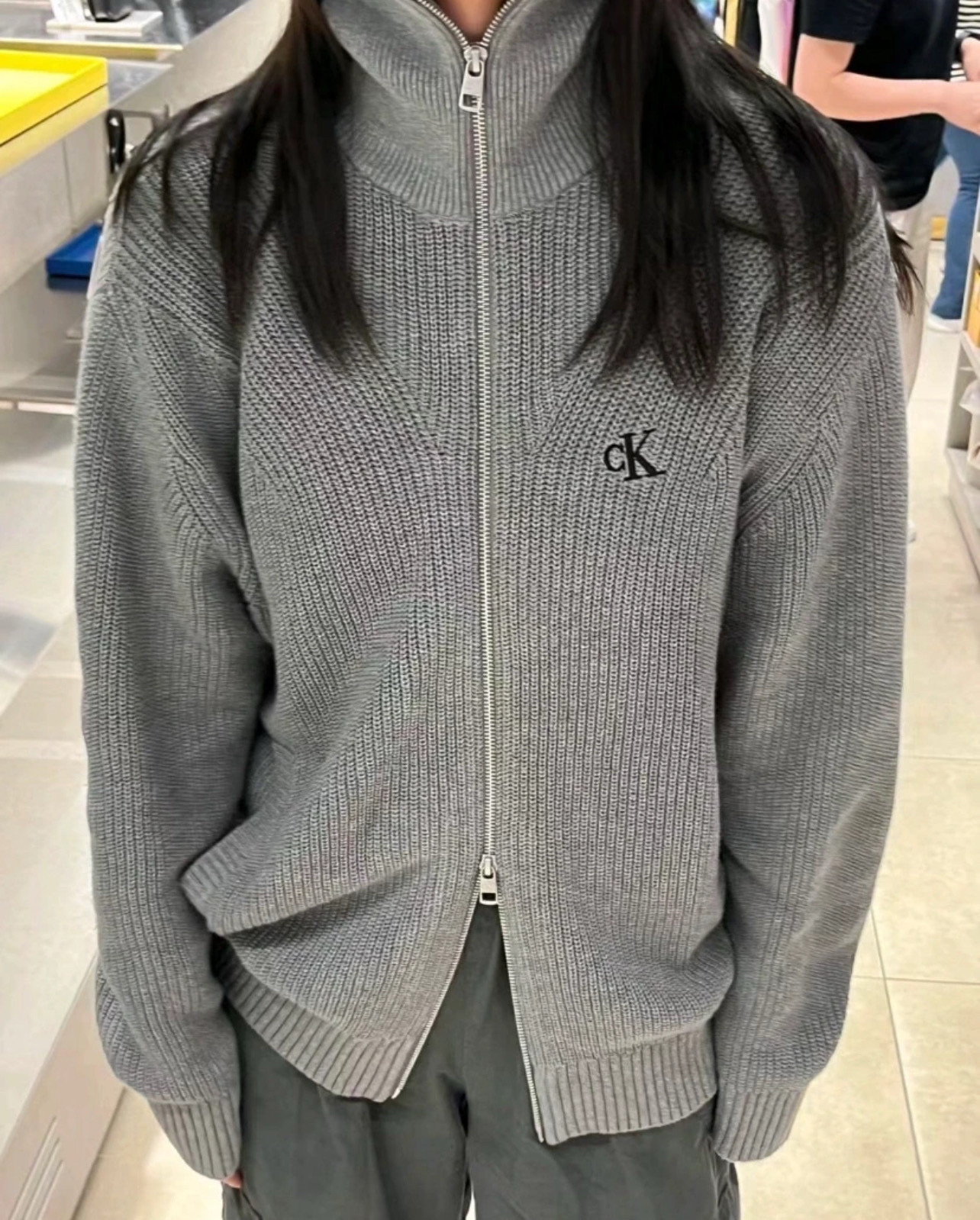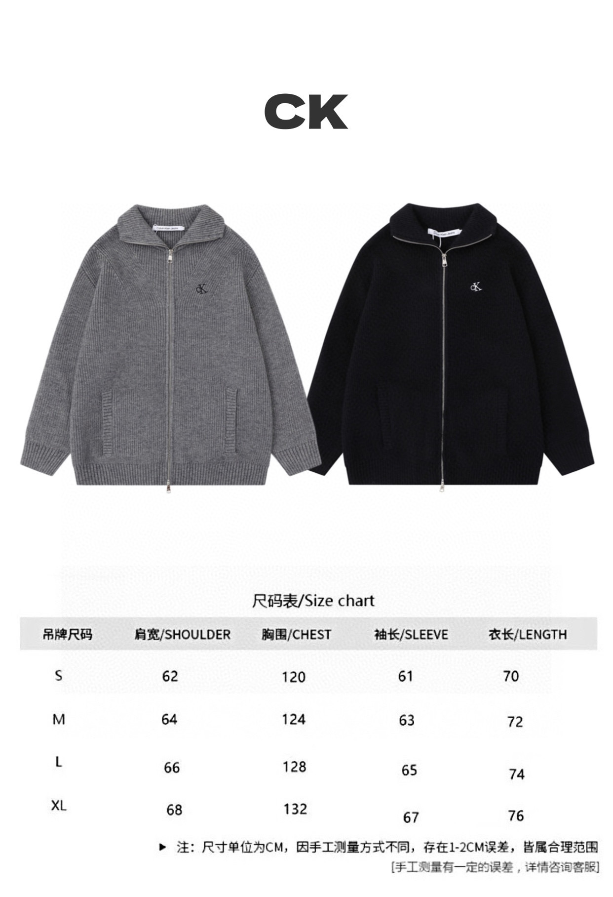 Calvin Klein CK 经典小字母刺绣情侣高领双向拉链针织毛衣外套 原版代购品质