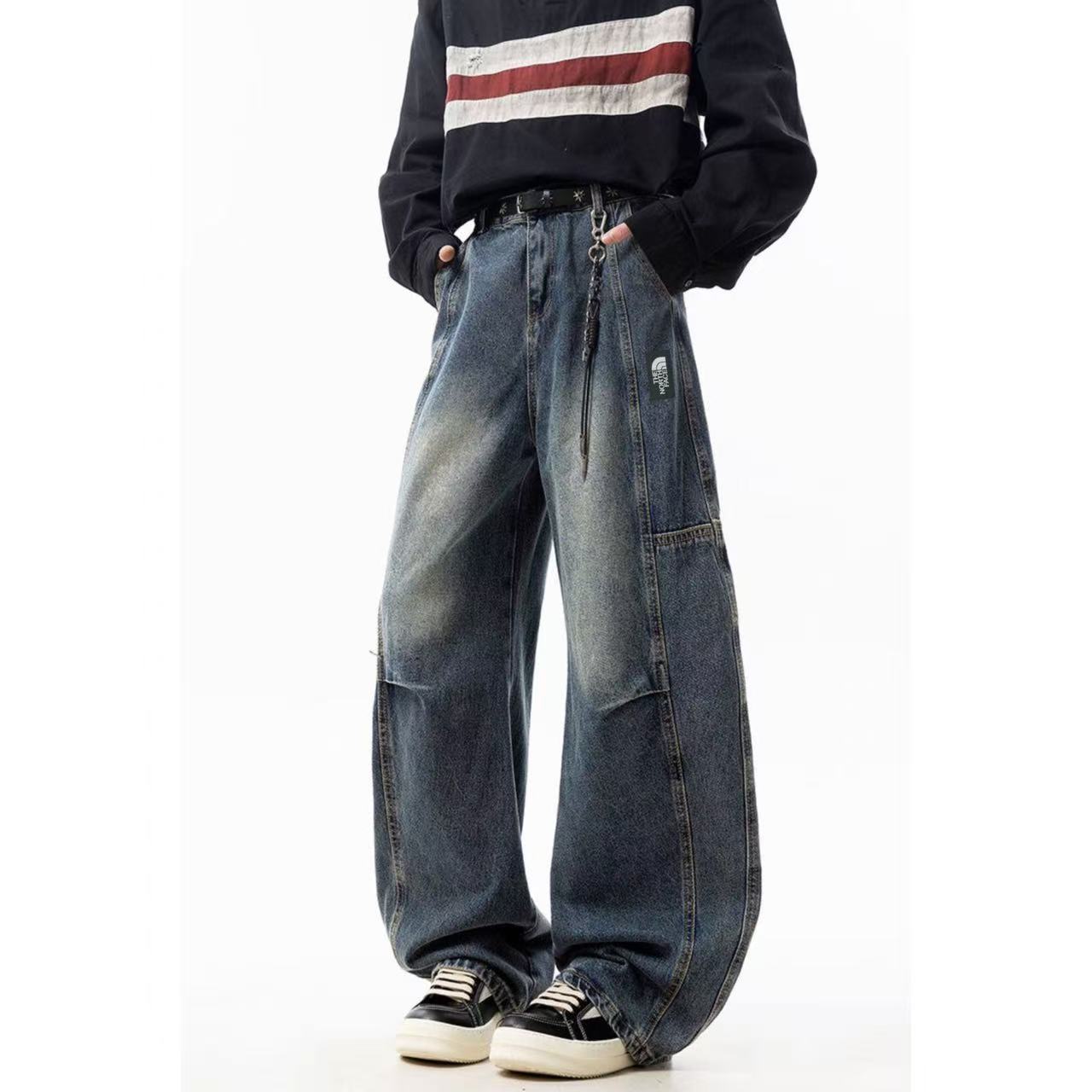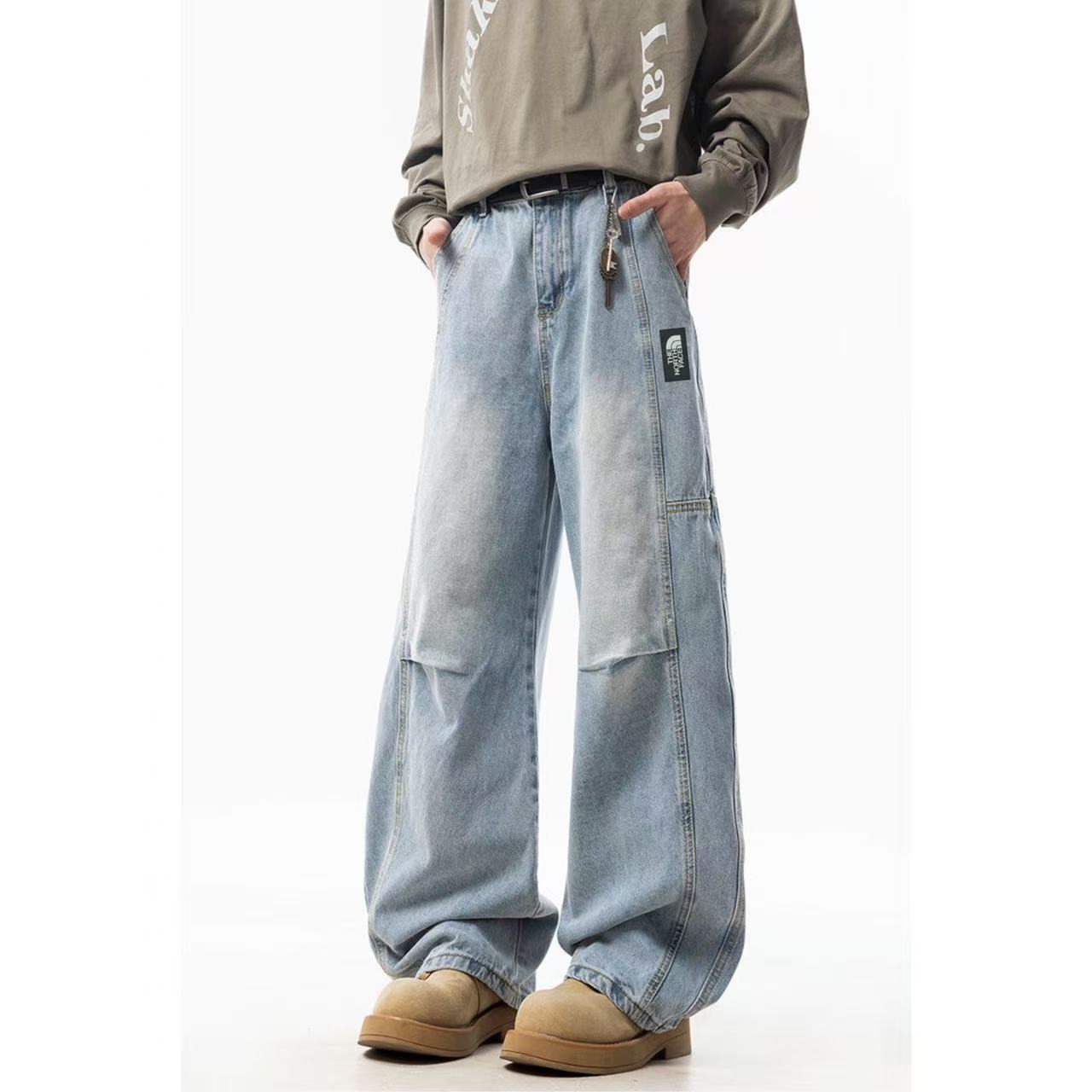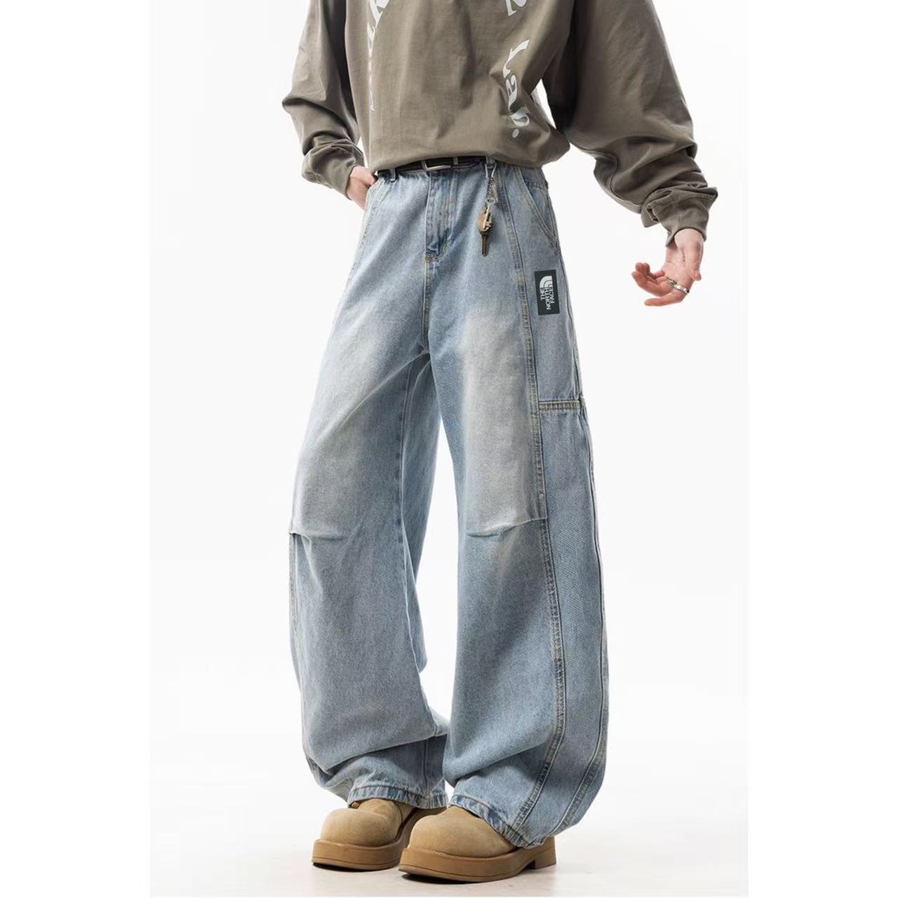 The North Face TNF北面 美式高街个性褶皱拼接直筒工装牛仔裤弯刀裤休闲裤长裤 男女同款