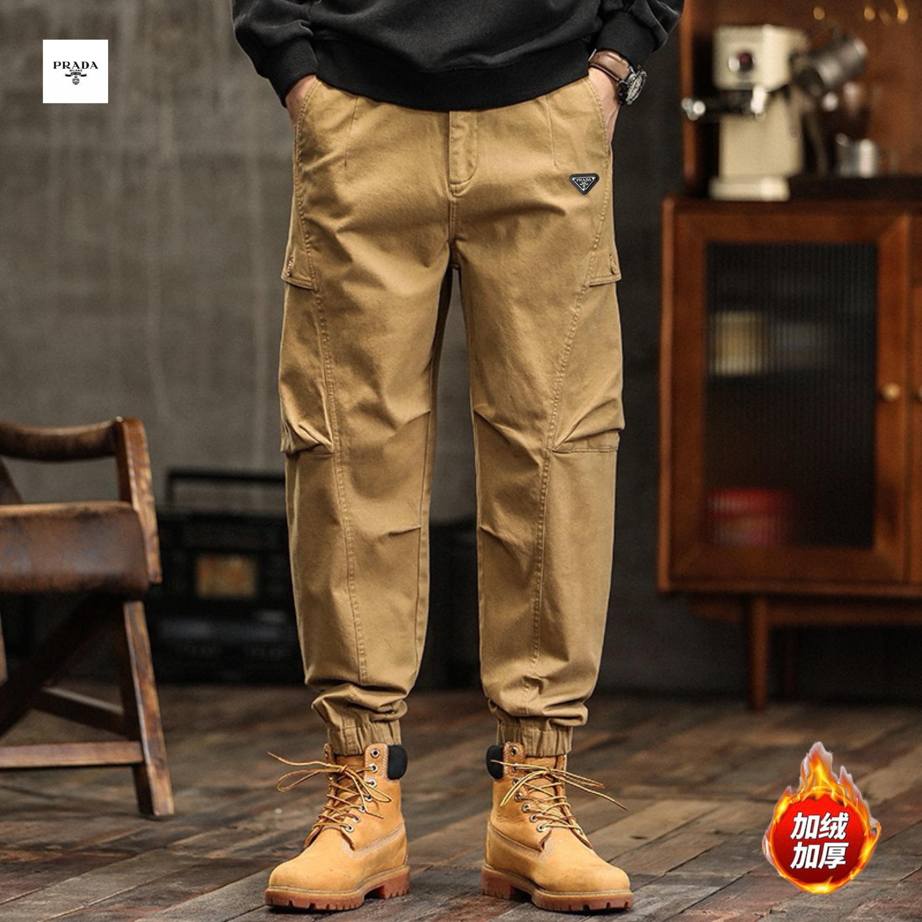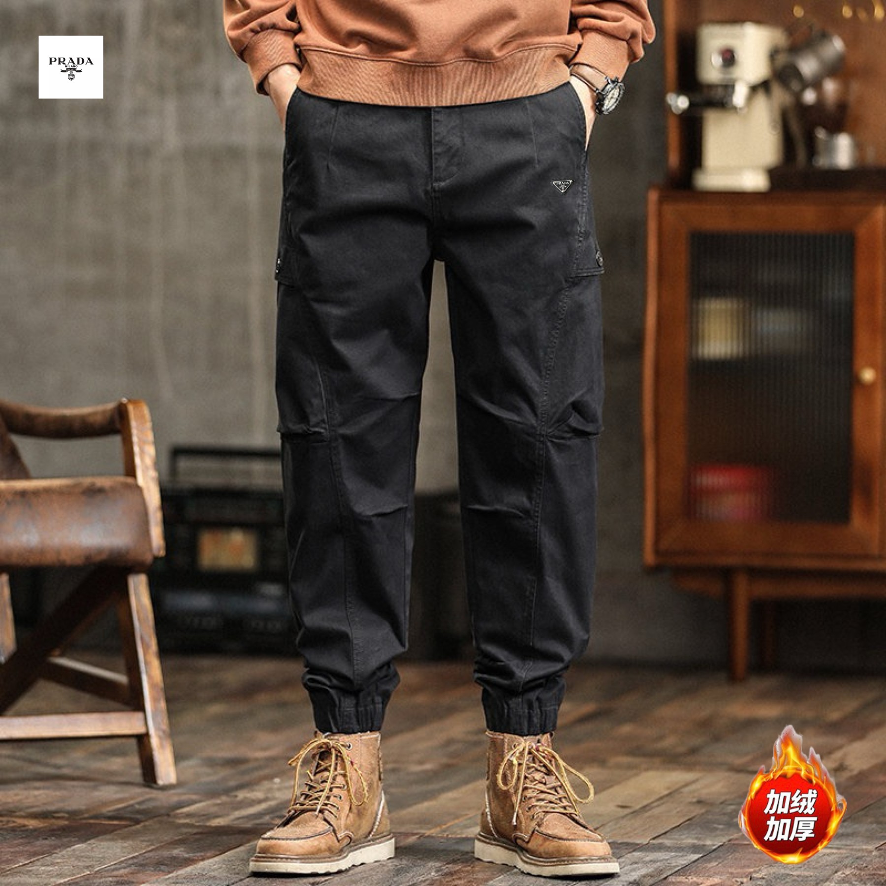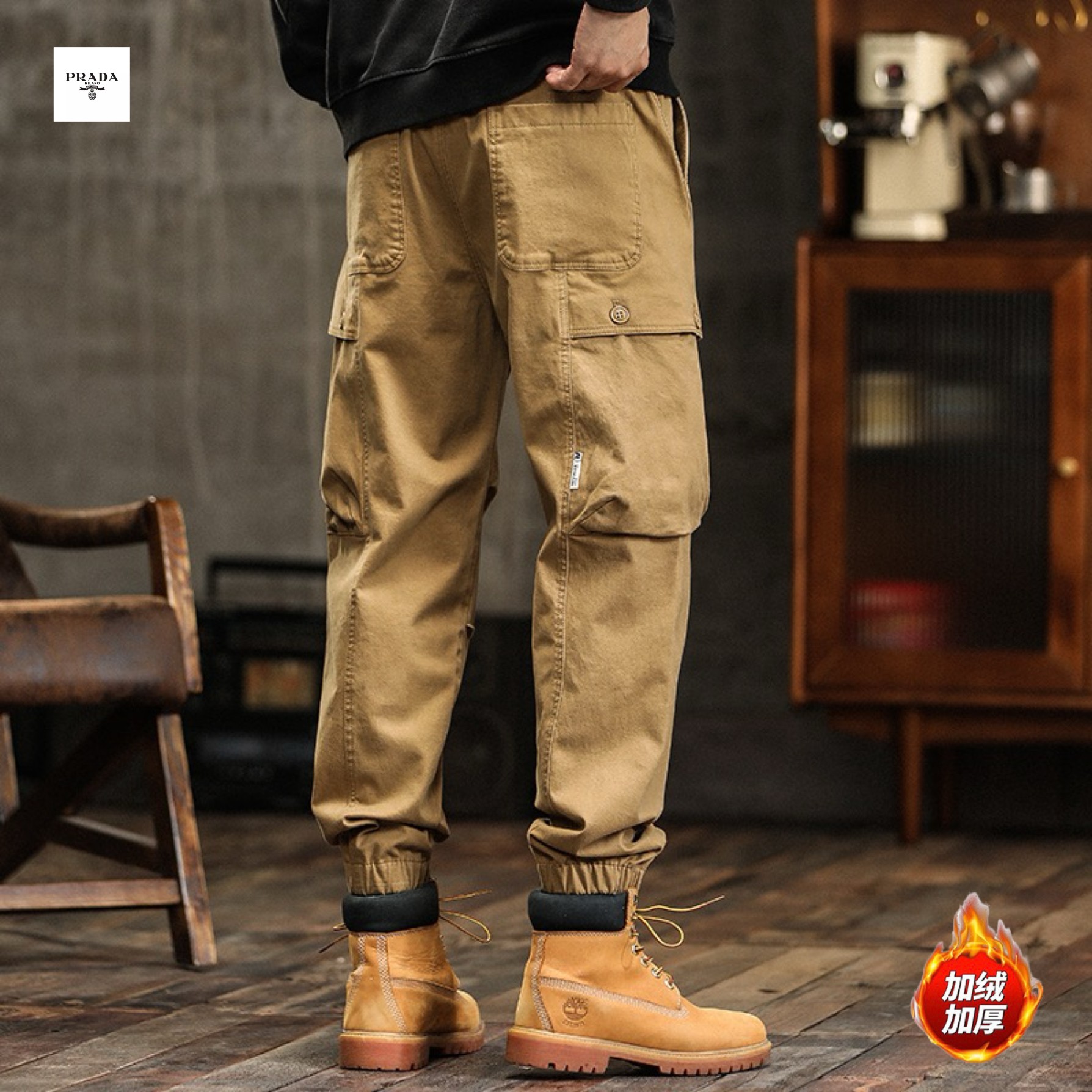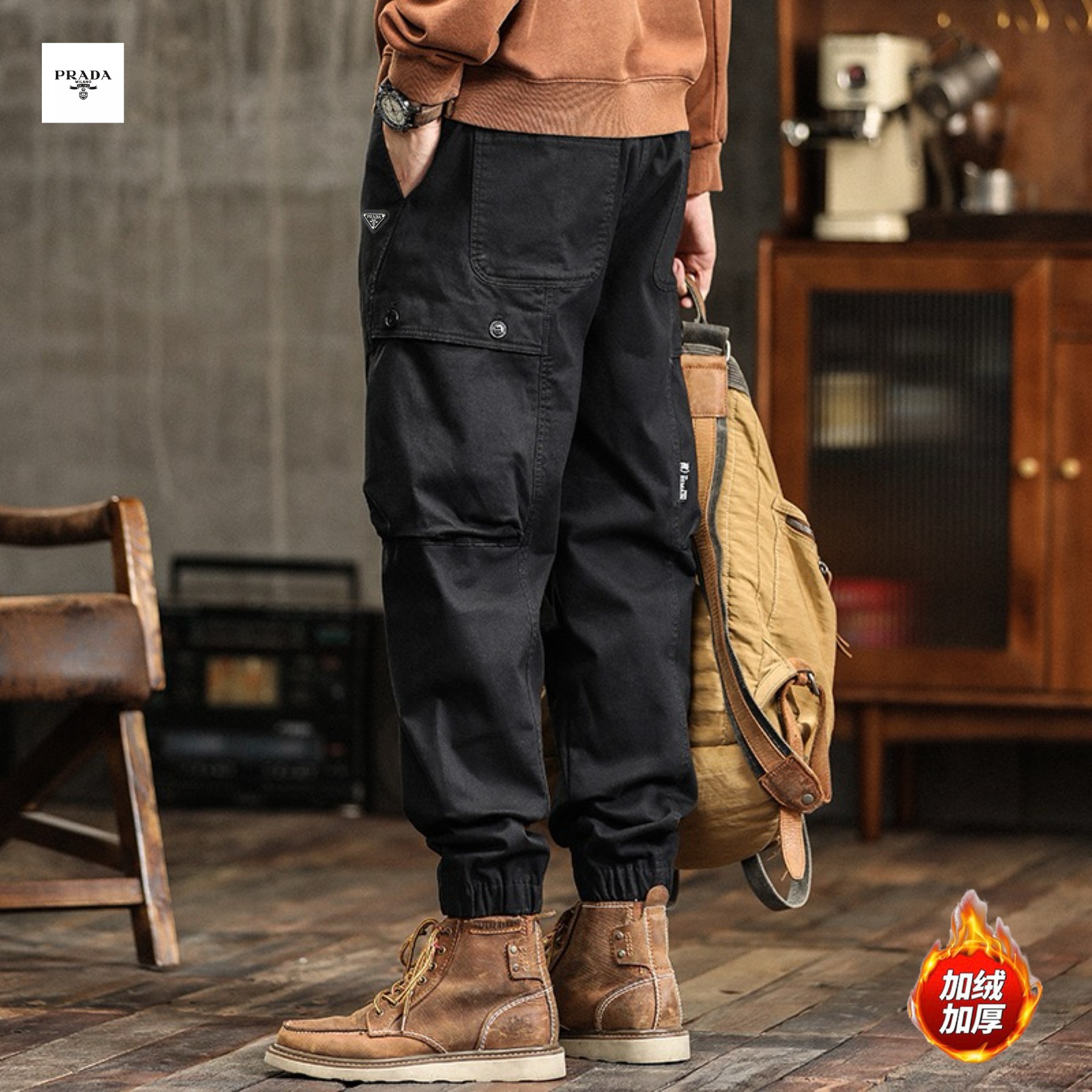 PRADA普拉达海外版25ss新款三色高品质美式ins工装机能风加绒加厚重工水洗工装冲锋束脚裤