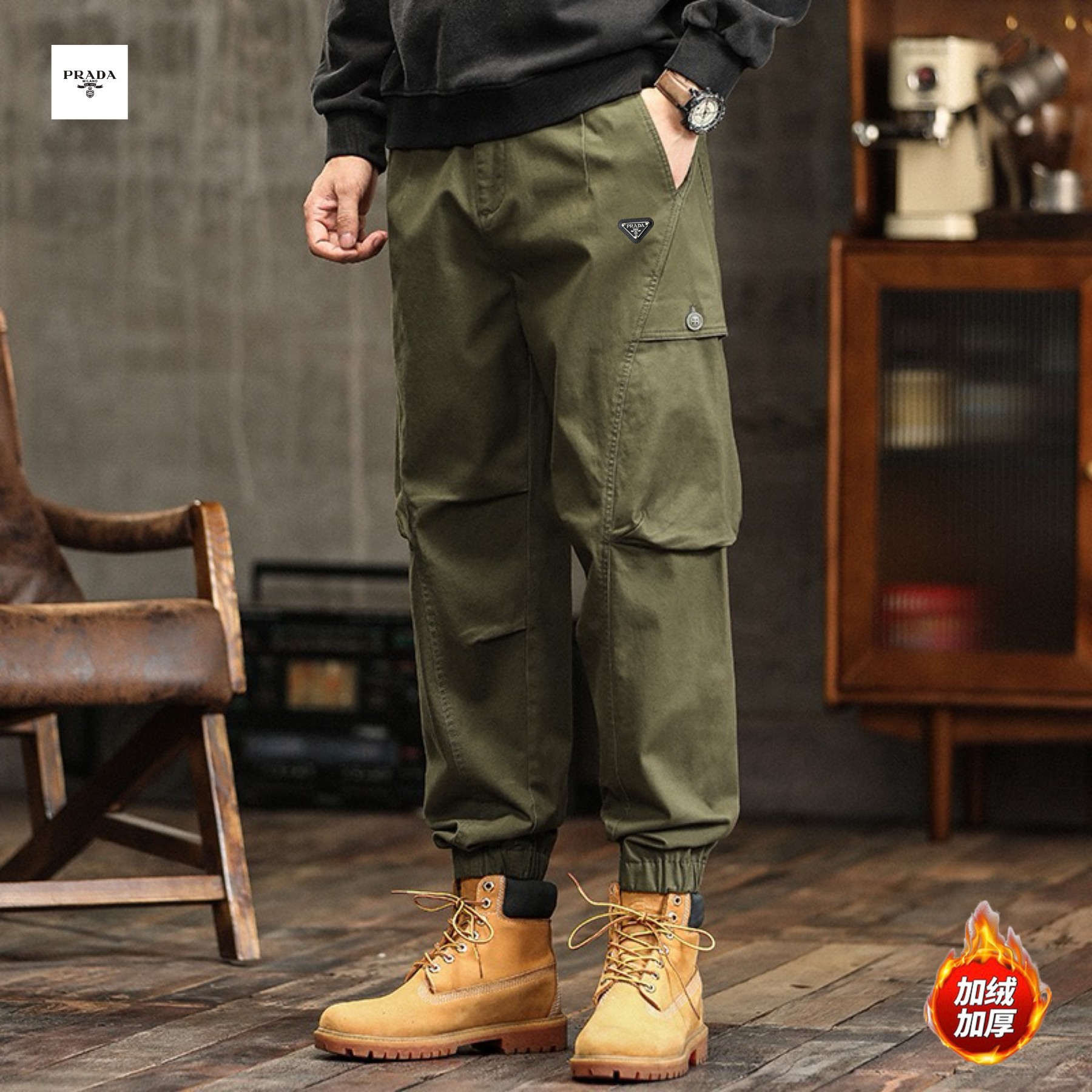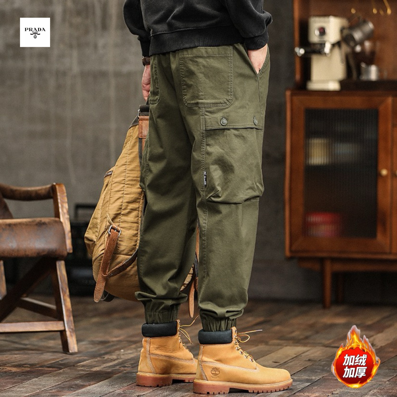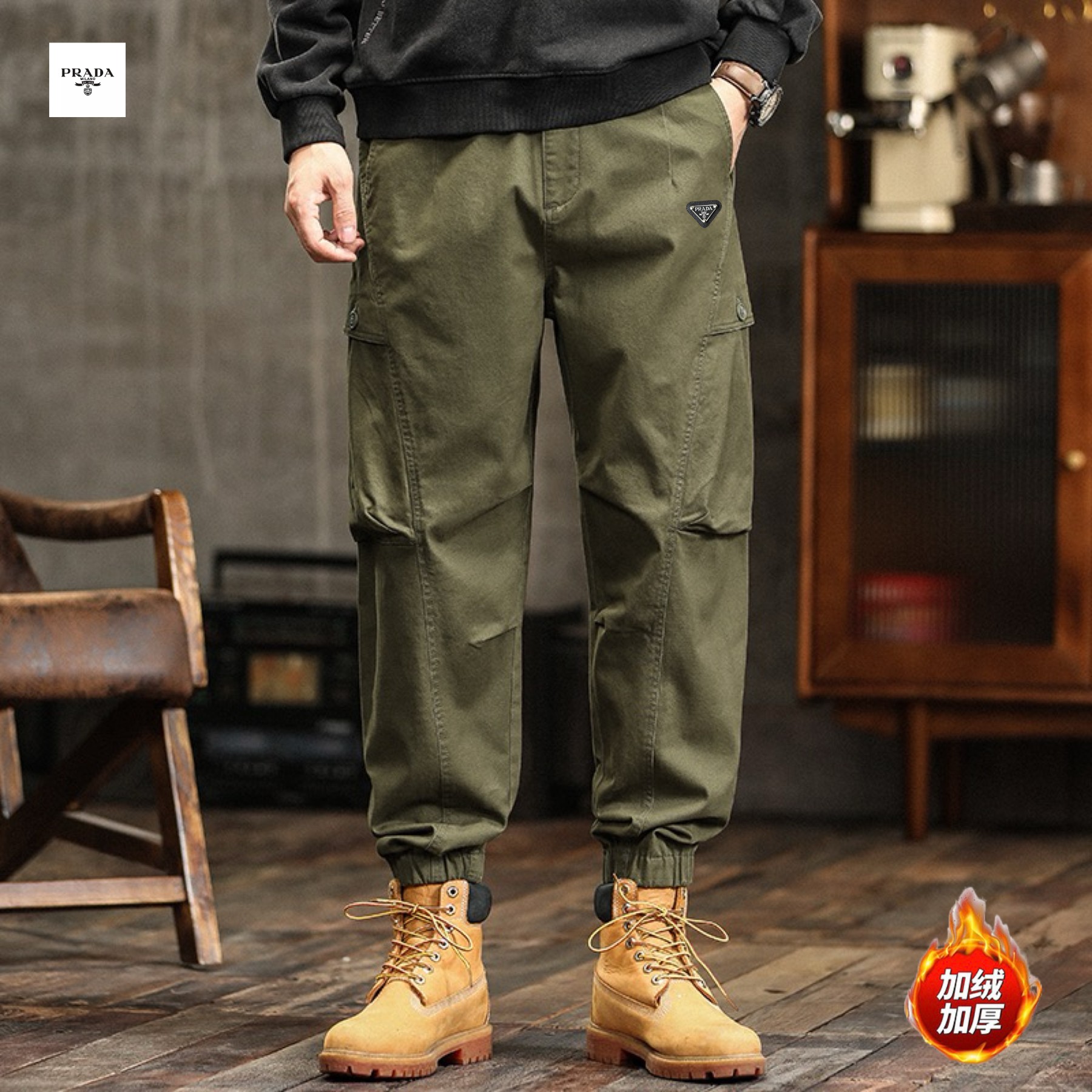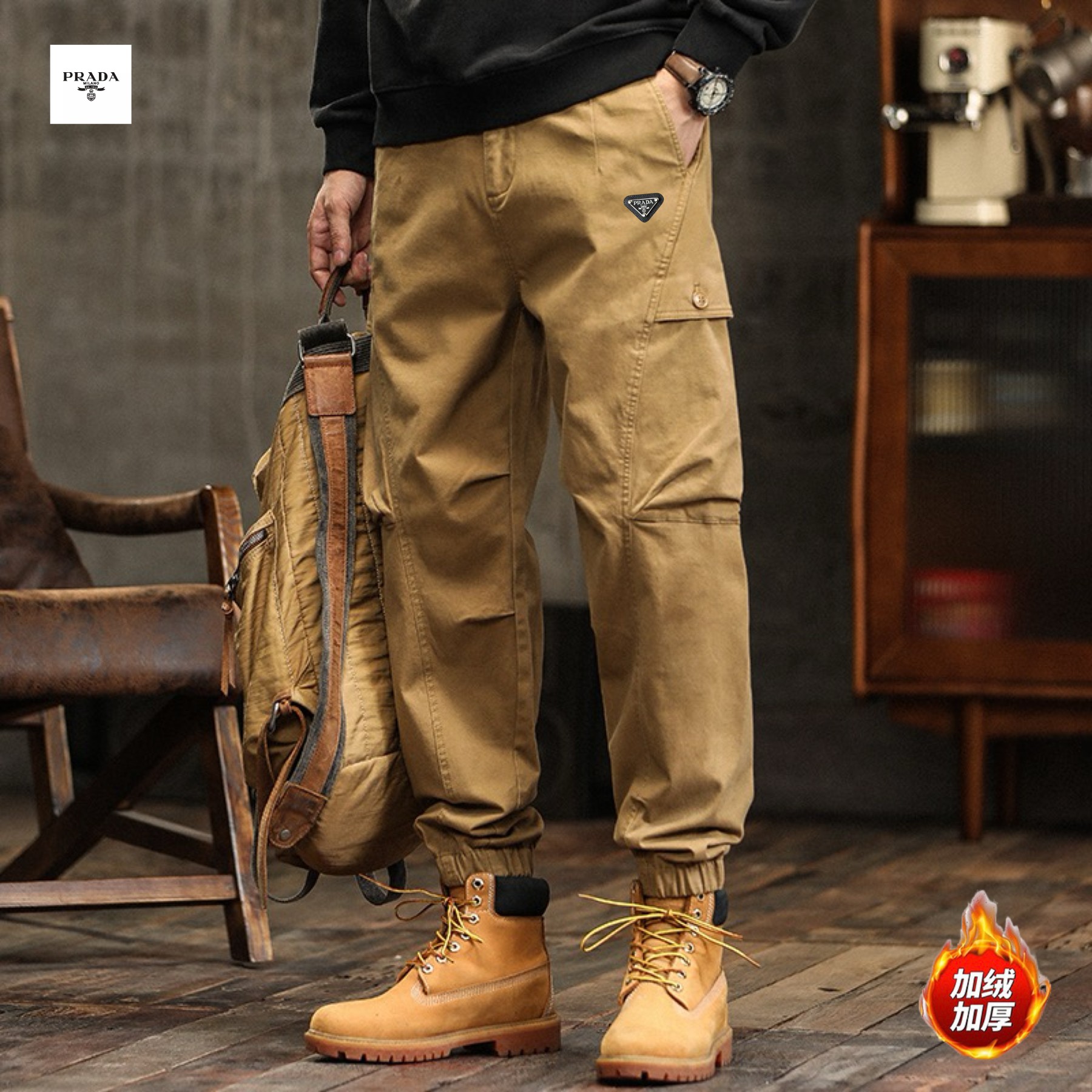 PRADA普拉达海外版25ss新款三色高品质美式ins工装机能风加绒加厚重工水洗工装冲锋束脚裤