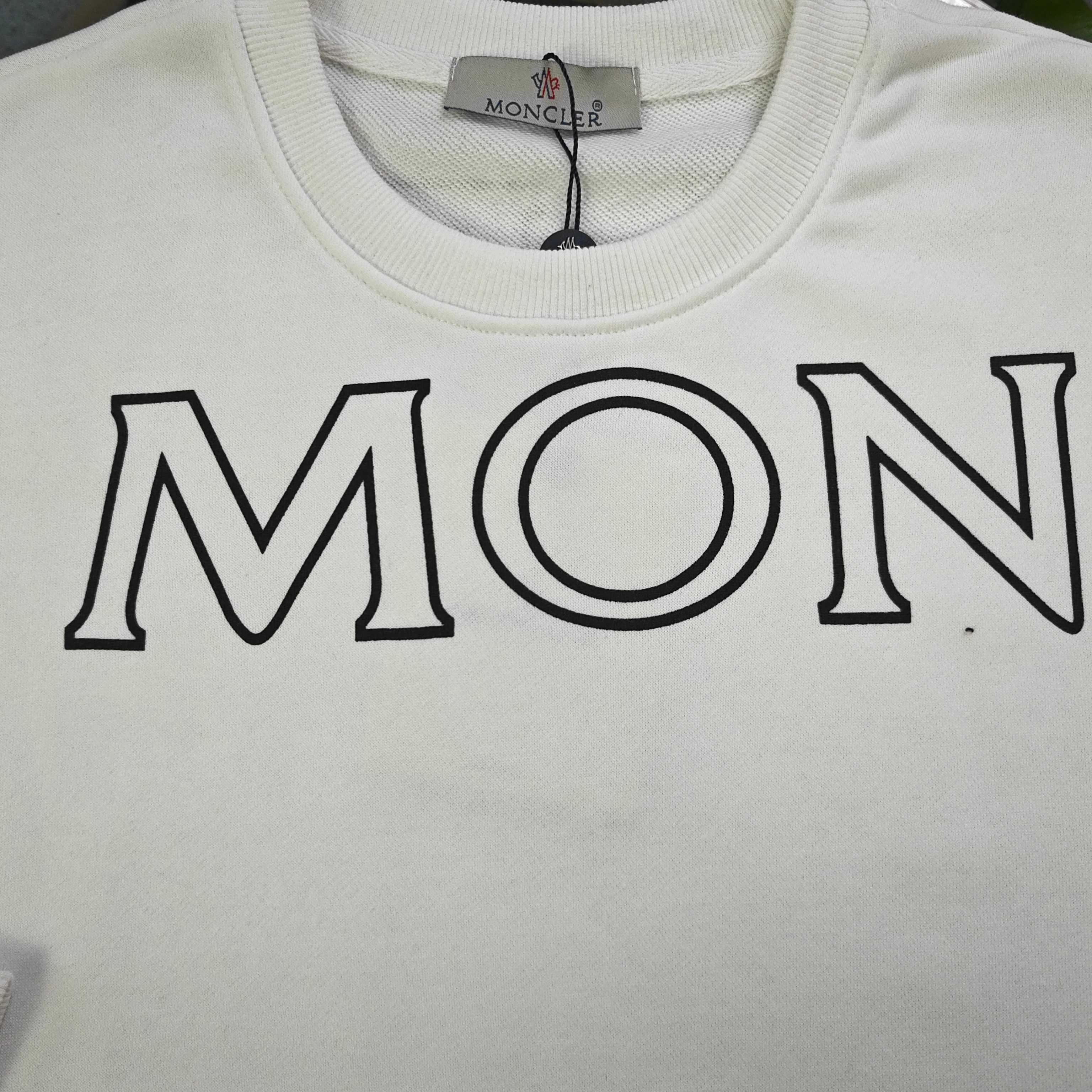 2025秋冬新款Moncler蒙口经典镂空字母图案logo印花休闲情侣圆领毛圈卫衣 340克重大毛圈面料 质感扎实挺括 上身舒适有腔调 经典白色基底搭配醒目 MON 字母印花 简约又具辨识度 袖侧品牌标志性徽章点缀 细节尽显格调