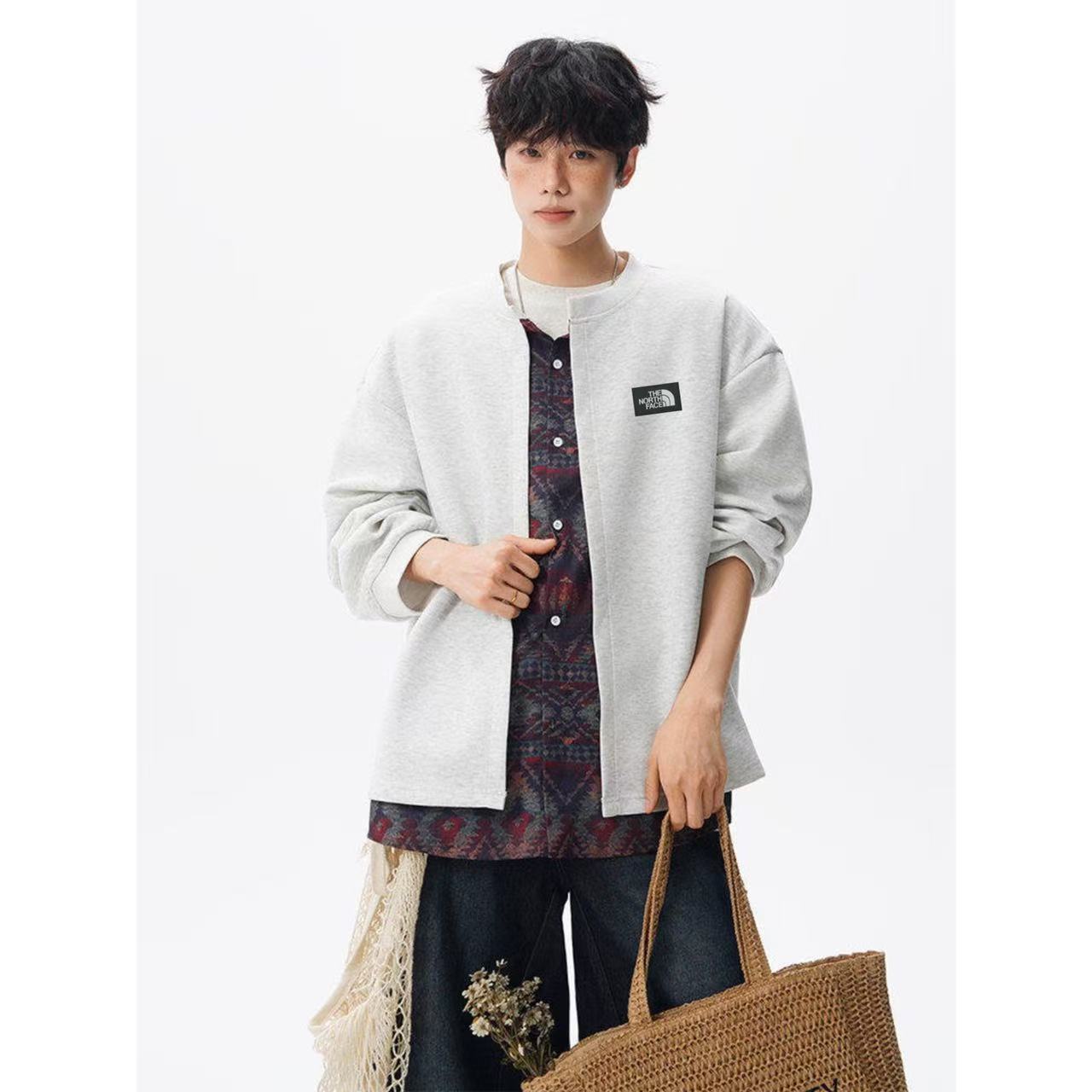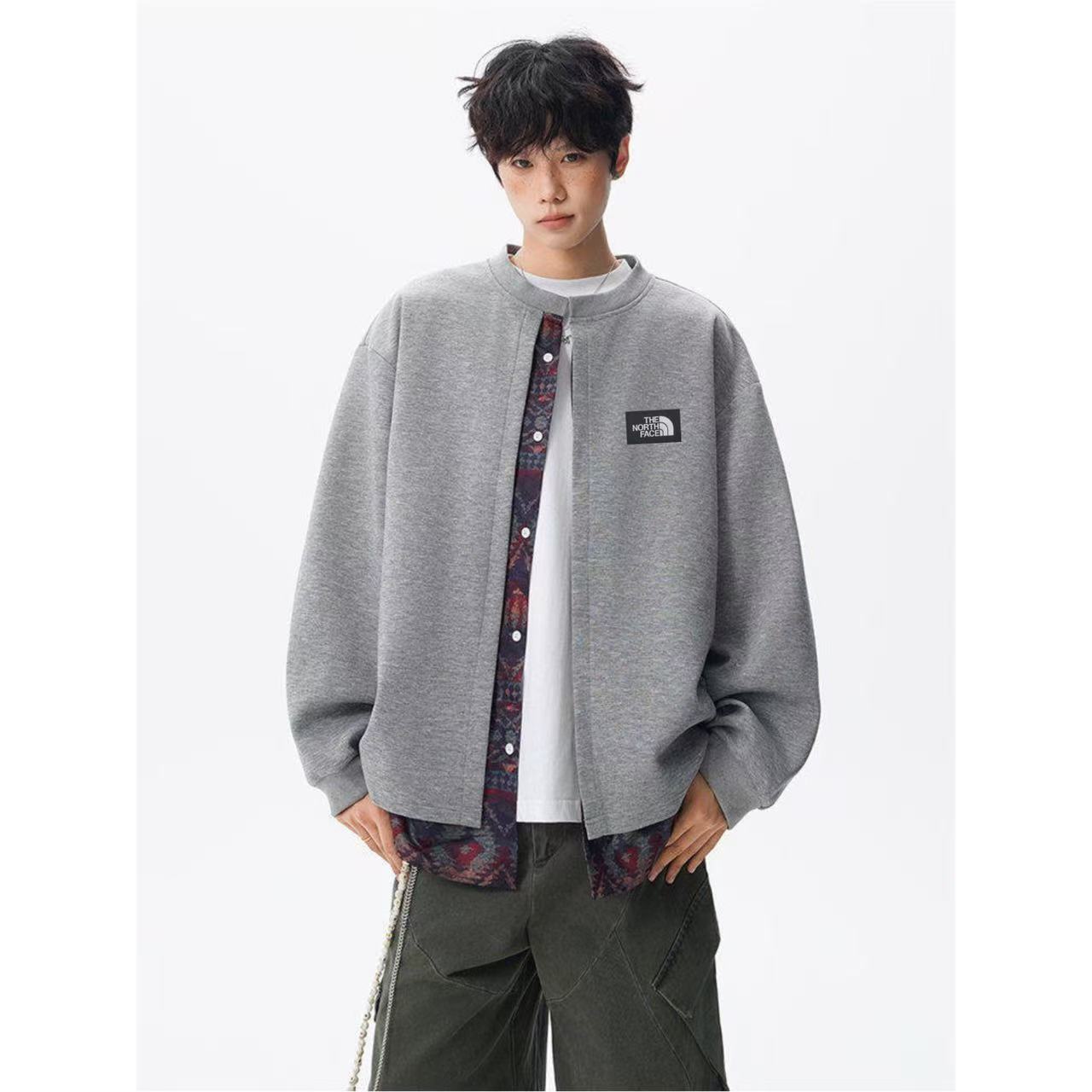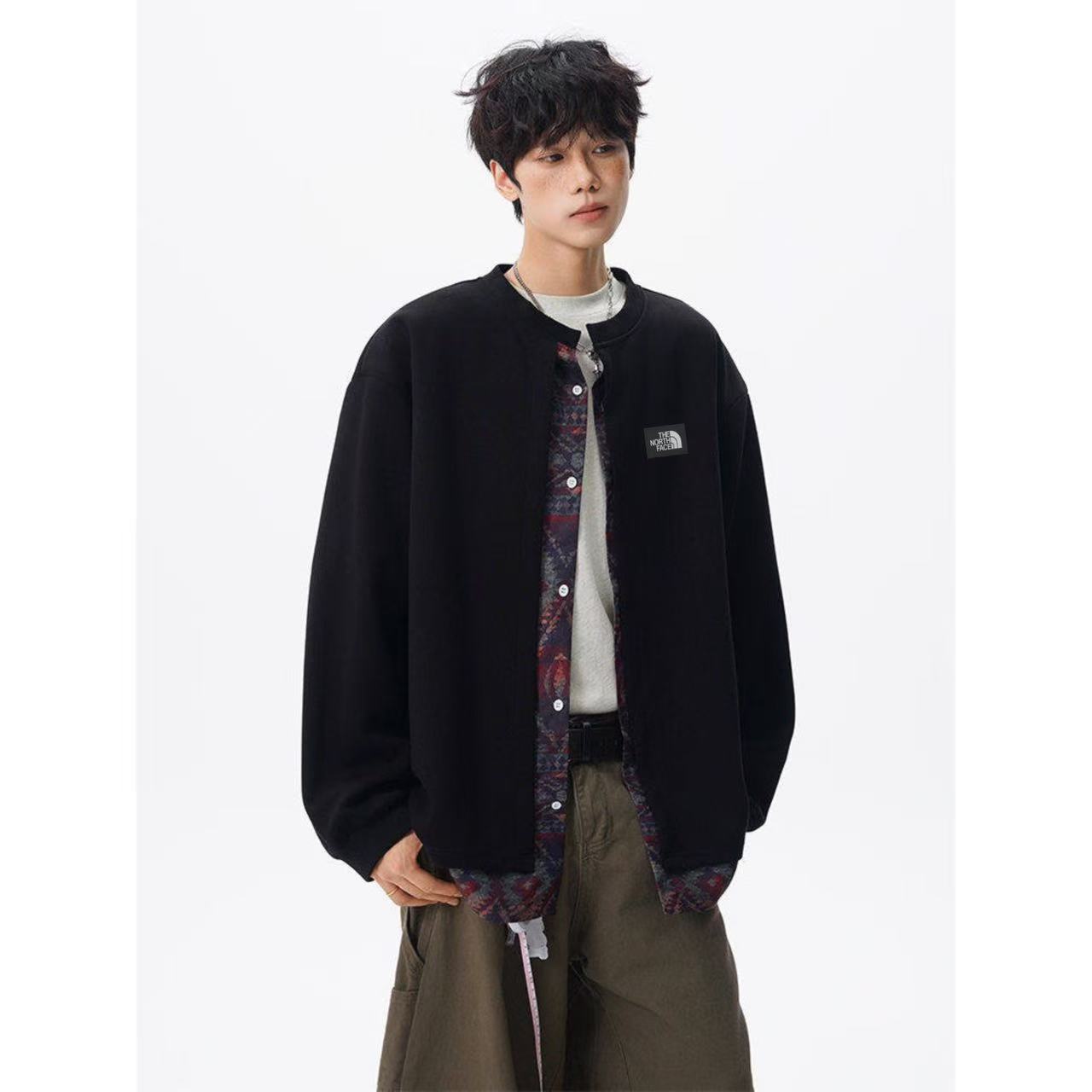 采用里外假两件设计 内里北面经典腰果花设计 外搭纯色立领衬衫 个性十足 潮人上街必备单品 中性百搭 不挑人不挑身材 男女同款