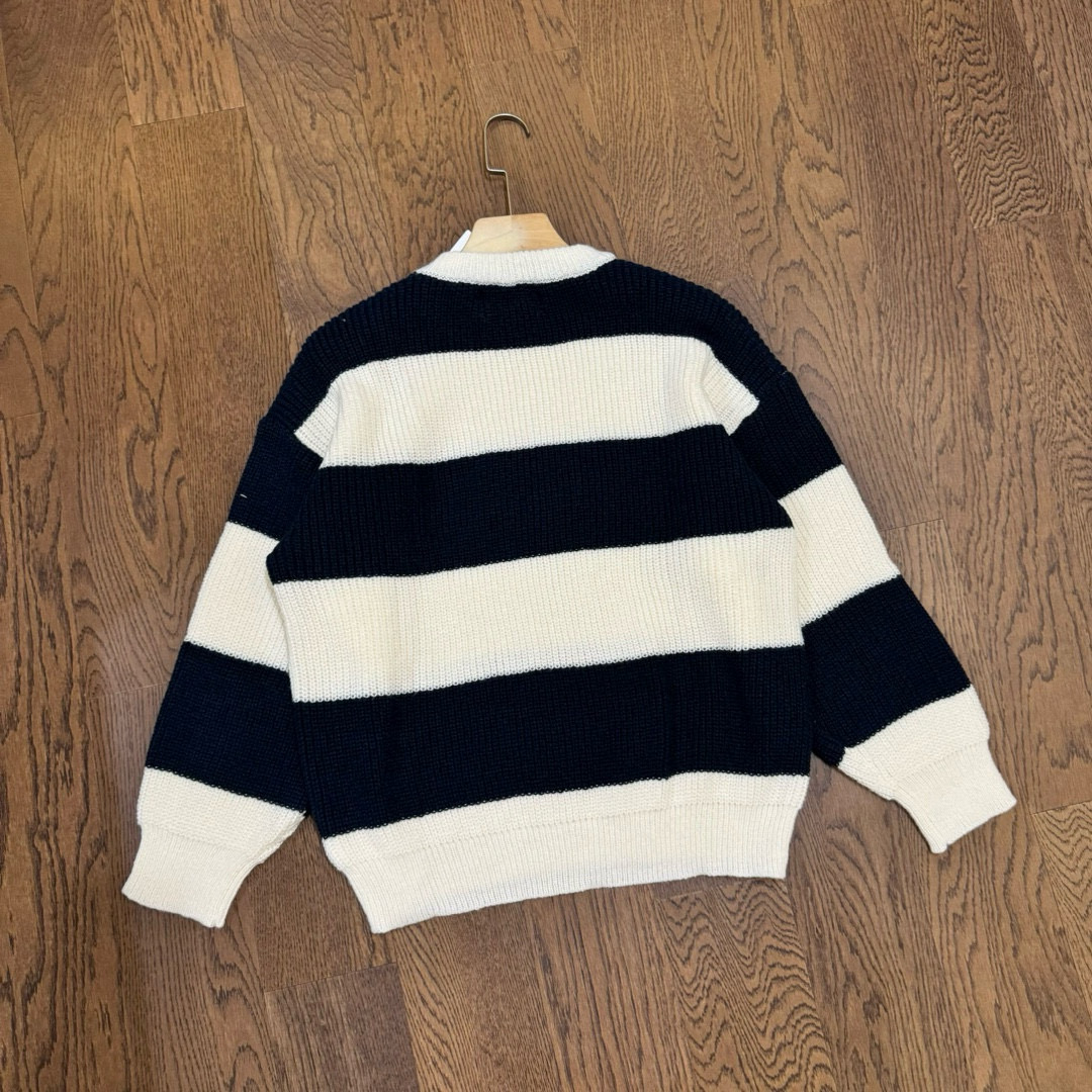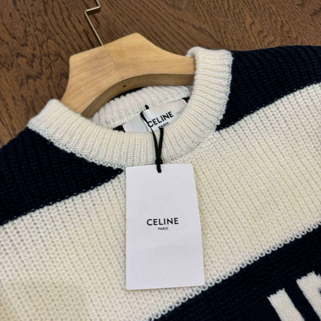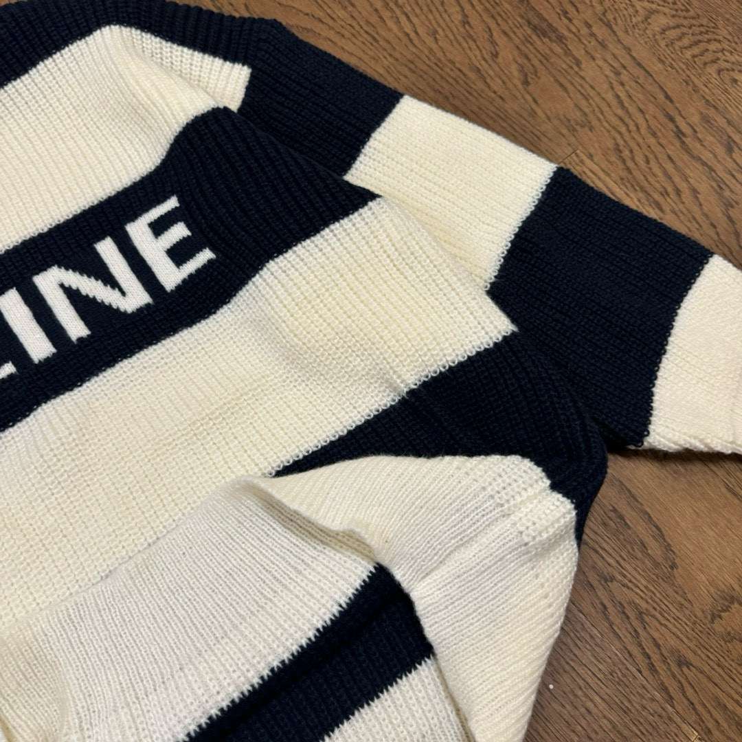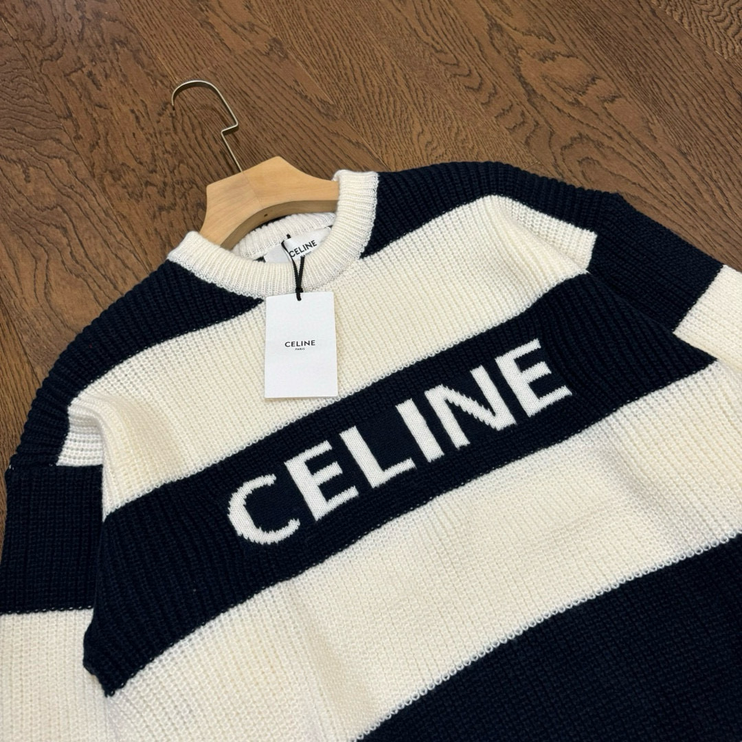 CELINE 赛琳 24ss 间色粗条纹字母 logo 提花情侣圆领针织毛衣 顶级复刻版本