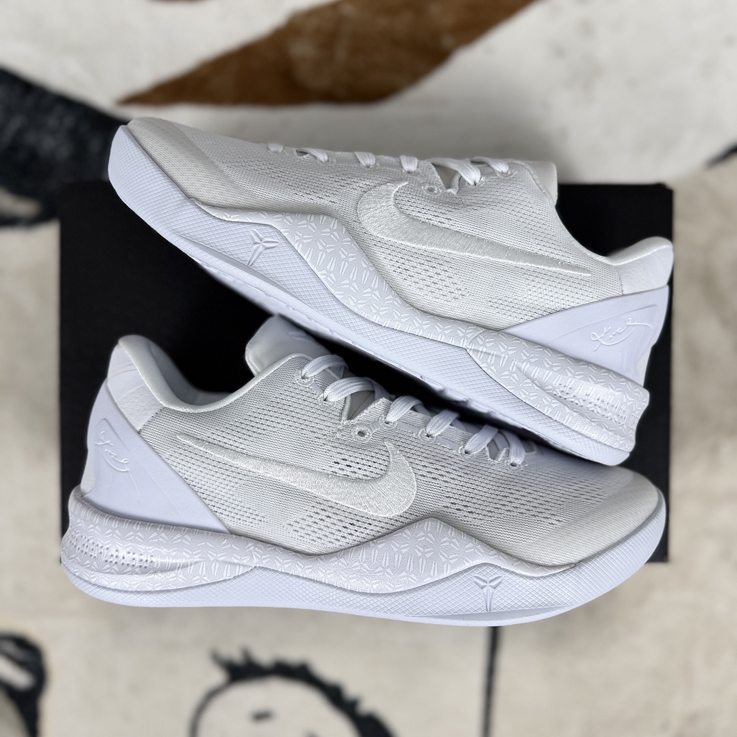 Nike Zoom Kobe 8由耐克运动鞋创意总监Eric Avar带领的设计团队与科比本人紧密合作而成 融入了科比在球场上的运动特点和习惯 该鞋款旨在打造一款低帮 轻质且能适应快速打法的篮球鞋 同时保证足够的支撑和保护性能 科比本人对于这双球鞋的期望是如同双脚的一部分 毫无负赘感 帮助他在比赛中如光速般移动 采用革新编织网眼材料 为双脚提供了卓越的贴合感 极致的轻盈以及360度全方位透气性 这种材料的使用使得鞋面在紧密包裹足部的同时 也提供了足够的柔韧性和支撑力 全掌Lunarlon中底系统结合了轻盈感 缓震性 低帮构造与稳定感四大优势 为球员提供出色的缓震性能和能量回馈 还搭载了Zoom Air气垫技术 进一步提升了鞋子的快速响应性能和场地感 采用XDR橡胶材料制成 耐磨且抓地力超群 外底刻有经典人字形骨纹与蛇鳞图腾 既美观又实用 确保了球员在比赛中的稳定性和灵活性