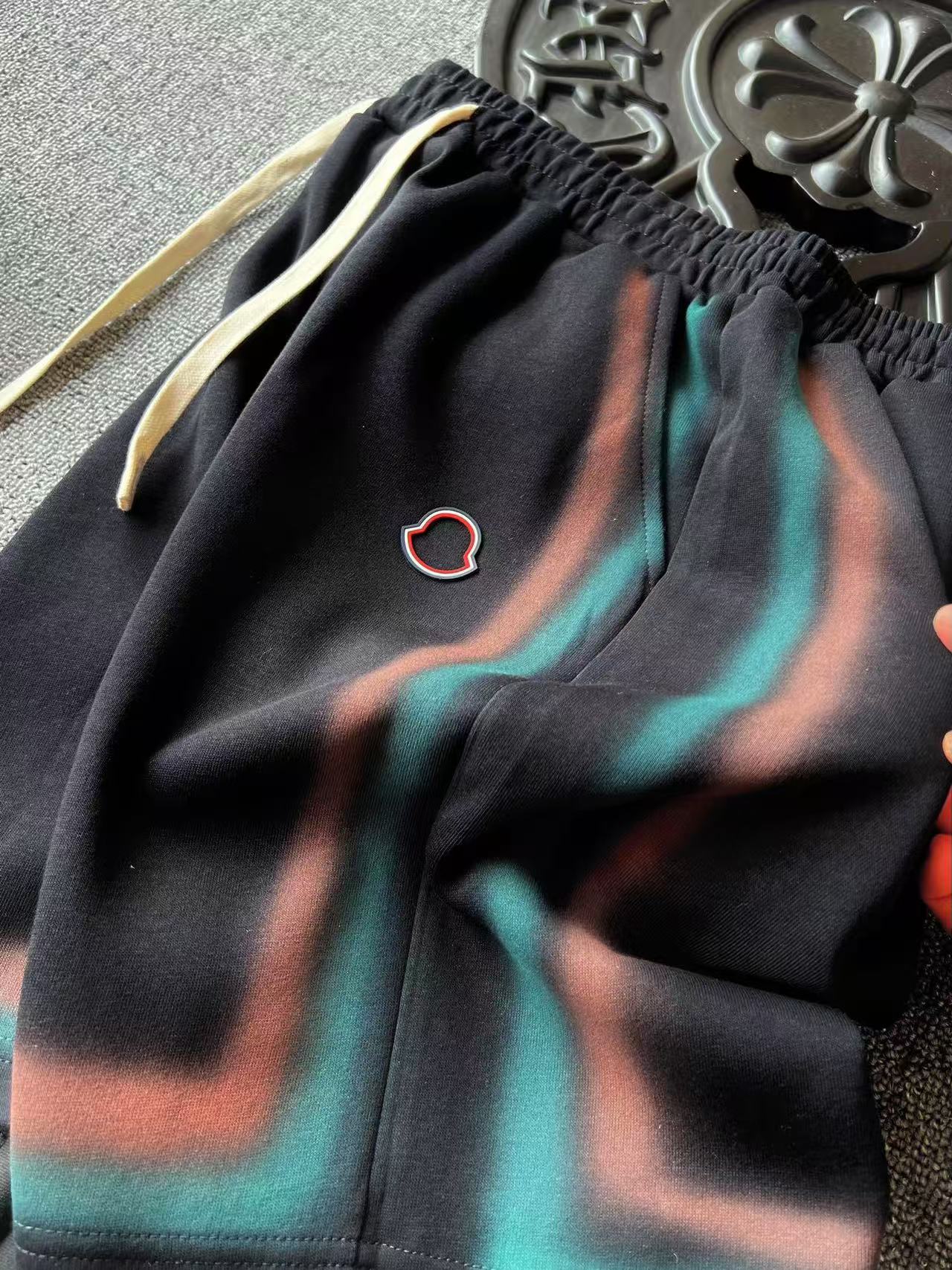 人气爆款 Moncler 蒙口专柜新品彩虹条扎染长绒棉短裤 恒隆在售万元级 款号 9997