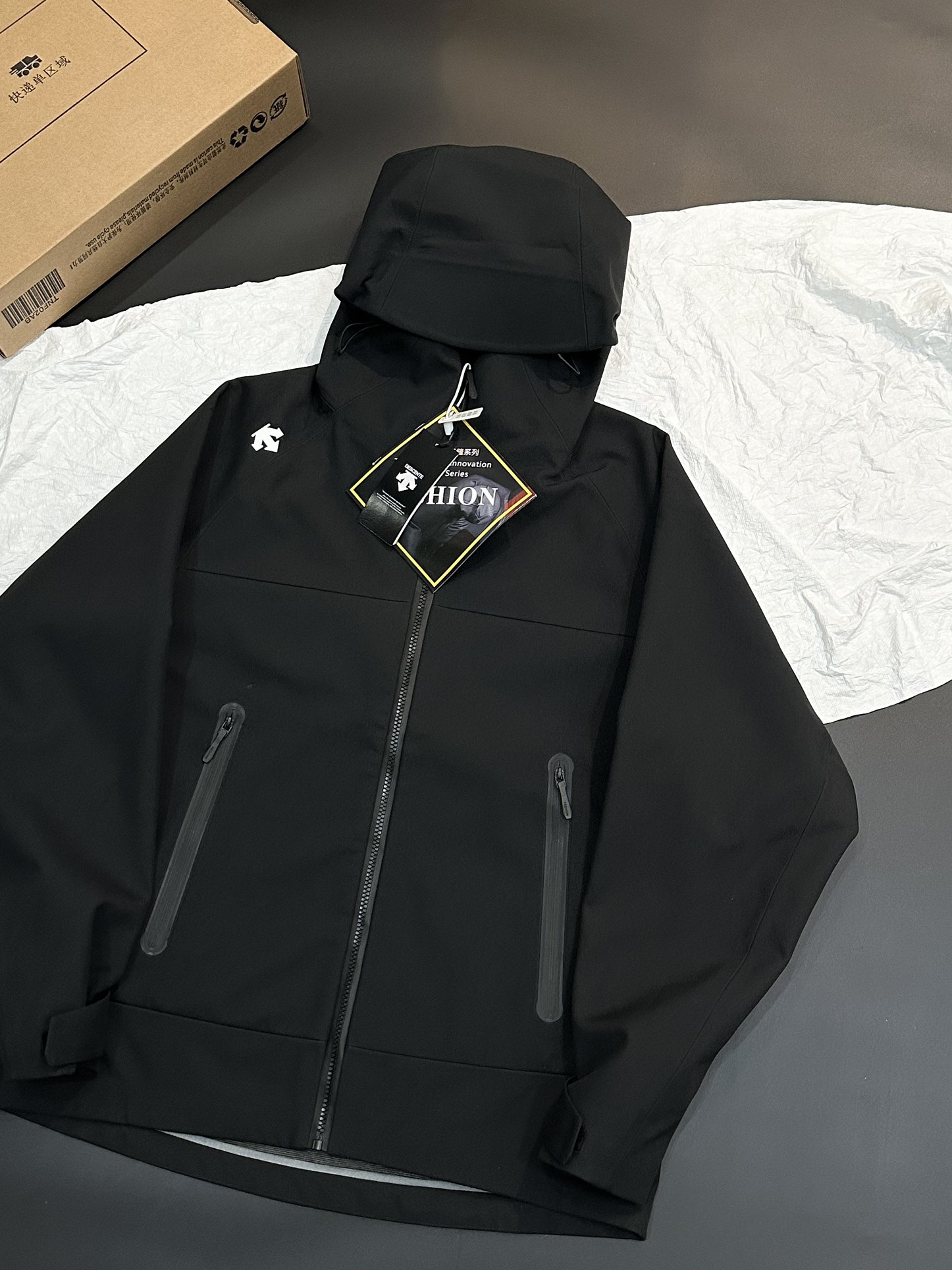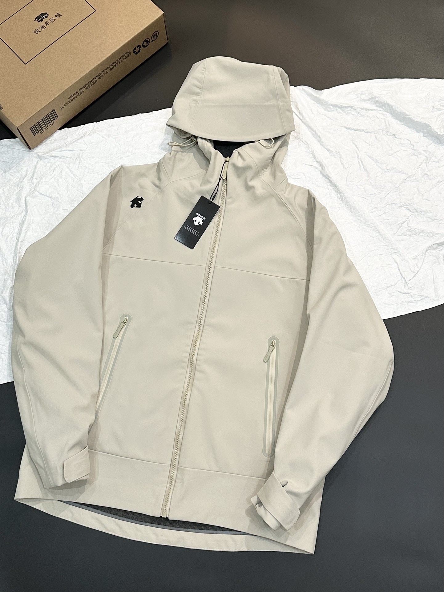 加绒款 情侣款迪桑特高品质加绒软壳冲拉链全锋衣防风防泼水夹克外套 半压胶工艺 口袋拉链全压胶
