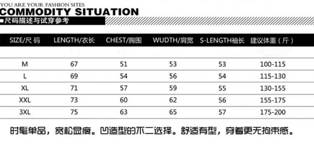 尺码 M 3XL
